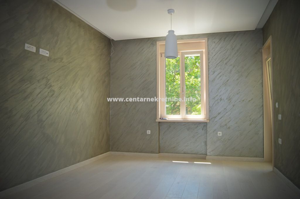 For rent, completely renovated, spacious two bedroom apartment at a great location on Karadjordjeva street, 84m2, on first floor. The apartment is ideal for office space or doctor's office. There is a fan coiler heating and cooling system, floor heating, alarm system etc.