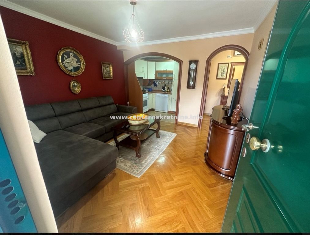 Renovated apartment 95m2 + 45m2 terrace for sale, in an excellent location in Sveti Stefan. The apartment is organized as two one-room apartments, with separate entrances. It has two living rooms, two kitchens, two bedrooms, two bathrooms with showers, two terraces. The apartment is sold fully furnished.
