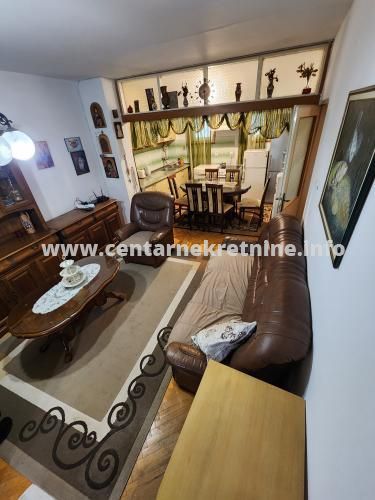 For sale, spacious two bedroom apartment at a great location in the center of Bar, on Jovana Tomasevica street. The apartment has an area of 76m2 (60m2+2 terraces of 8m2 each), it is on first floor. It is oriented to the west, towards the sea. There is also a possibility of adding another room, which many tenants of the building have already done.