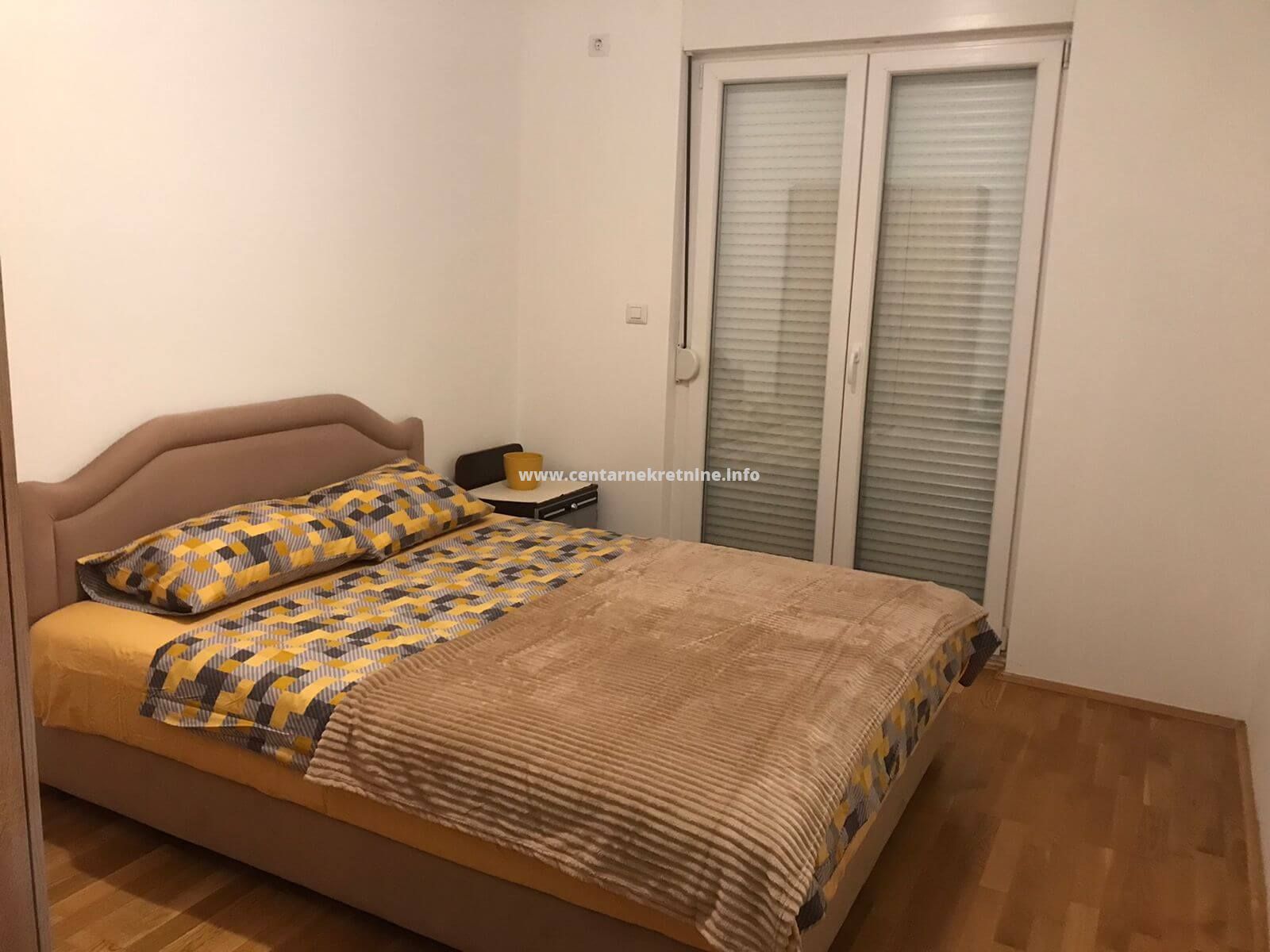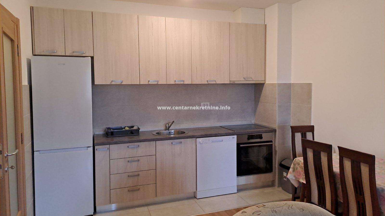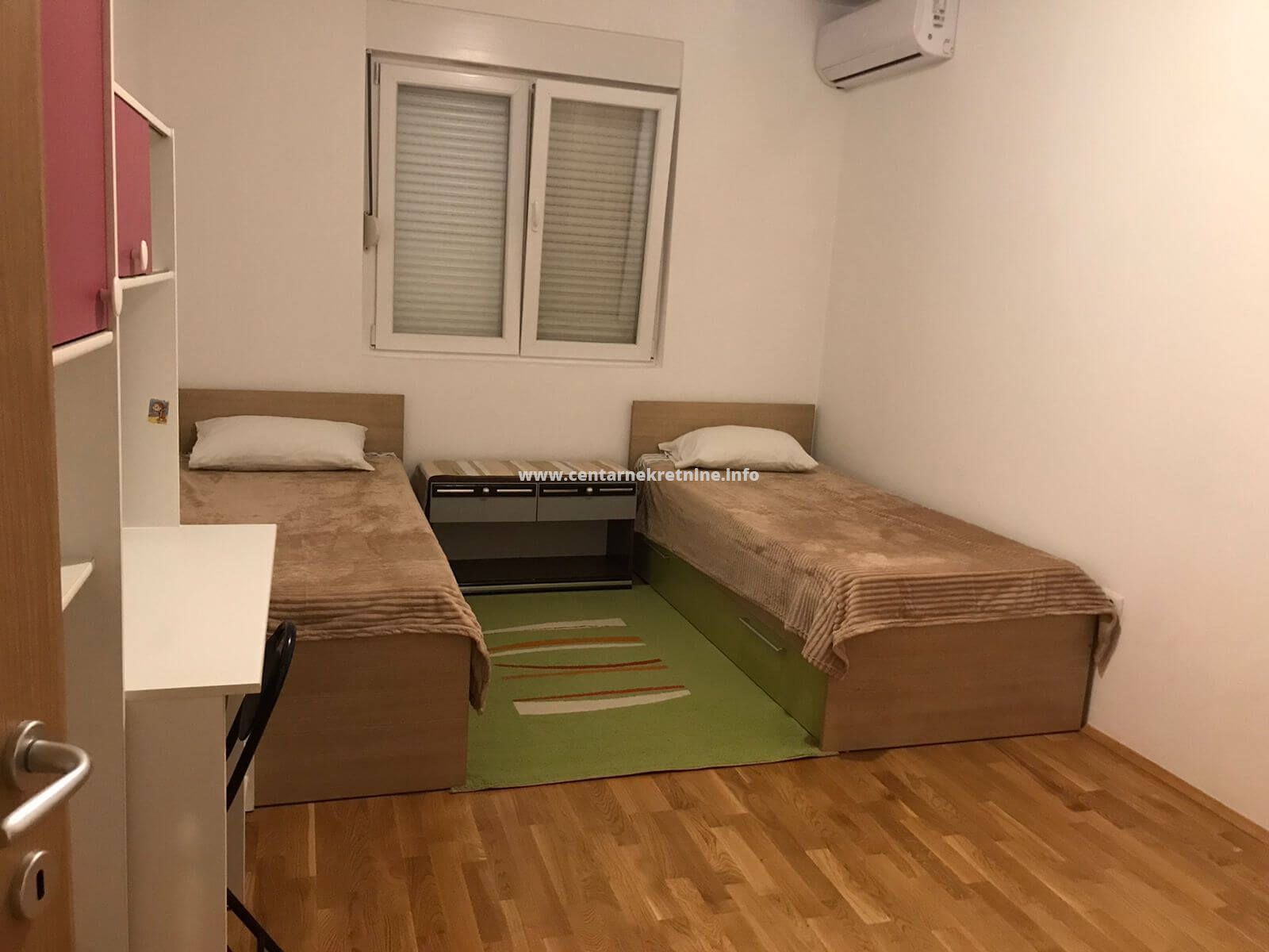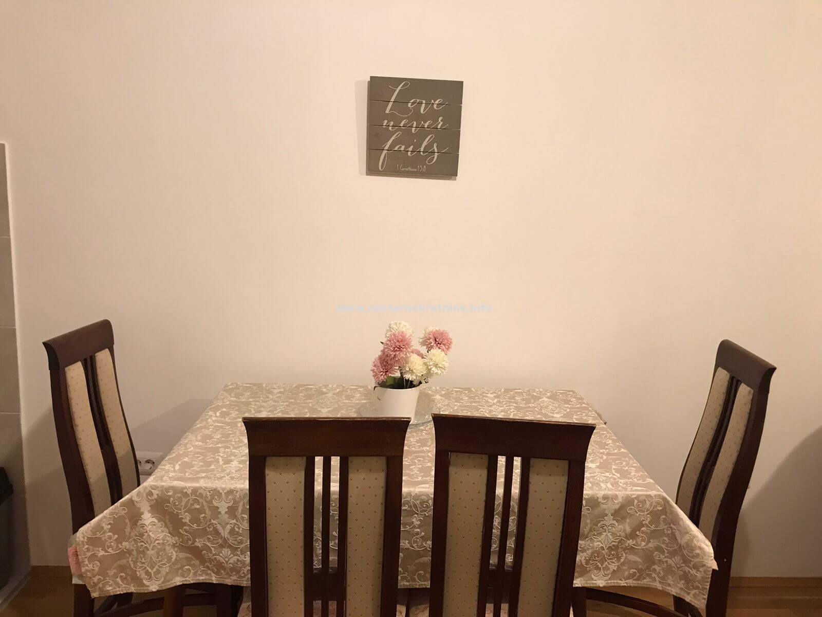 For rent, completely furnished, spacious two bedroom apartment at a great location in Stari aerodrom near elementary school Pavle Rovinski, with an area of 66m2, on second floor, oriented to the east. The apartment consists of a hallway, living room with dining area and kitchen, 2 bedrooms, bathroom, WC and a balcony with access from living room and bedroom. It is air conditioned, with inverter system, with three units - in the living room and both bedrooms.