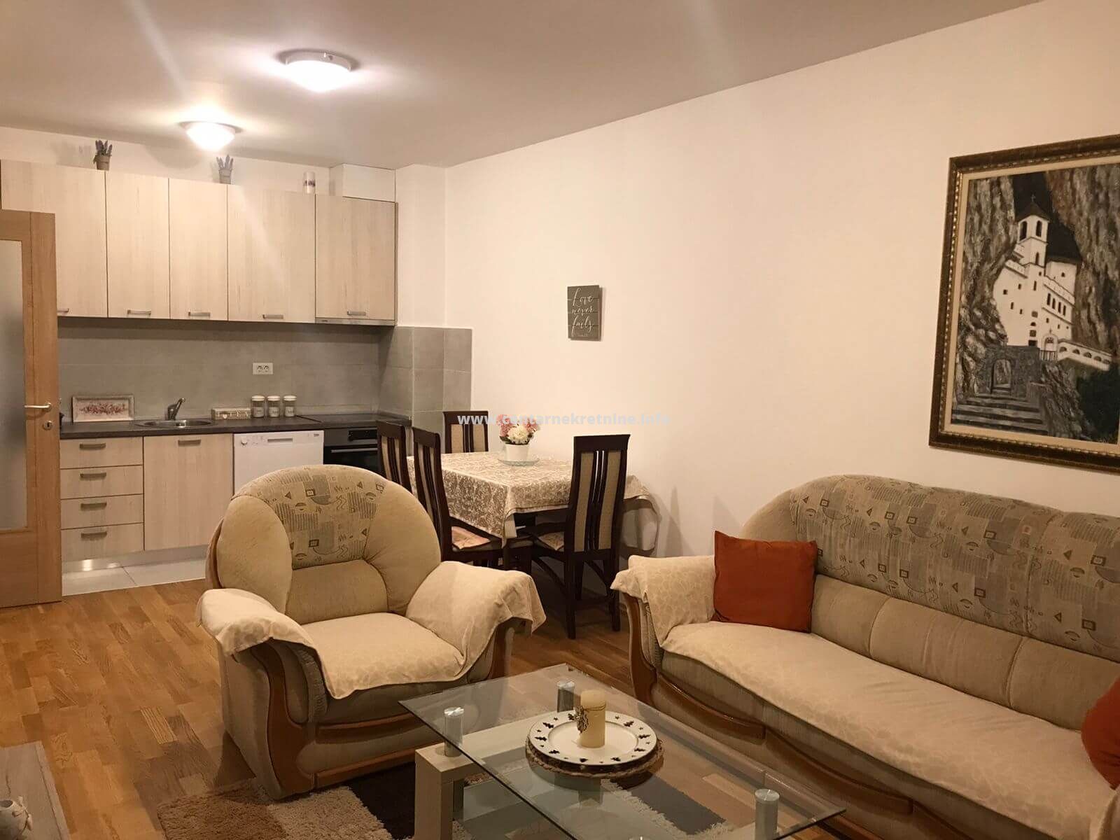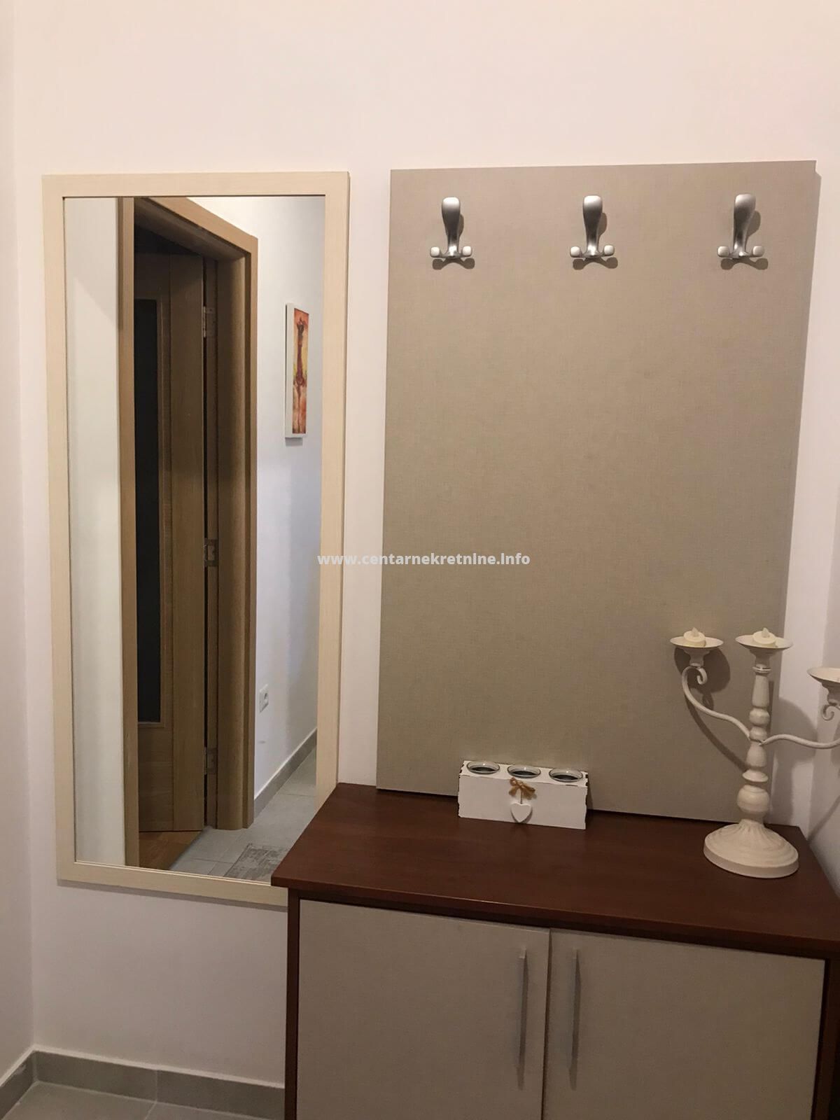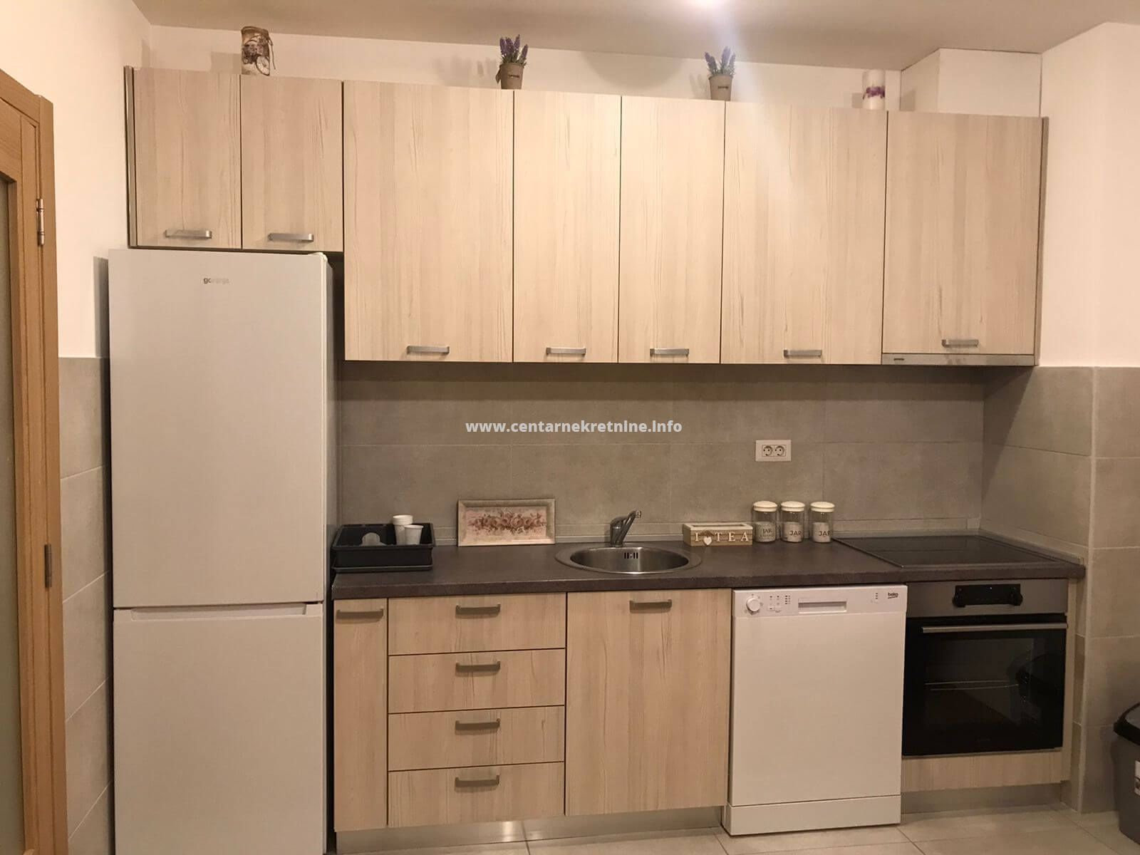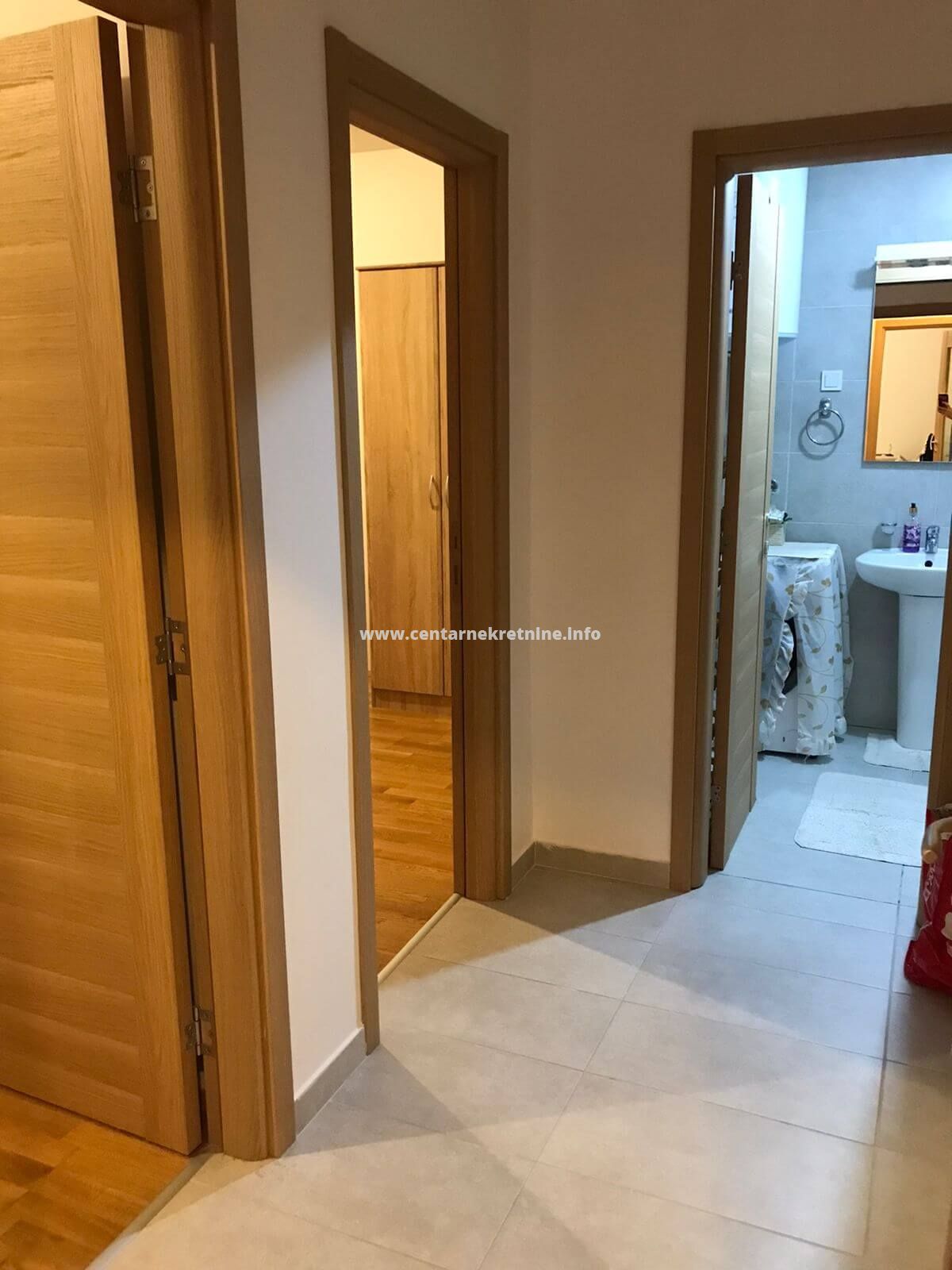 For rent, completely furnished, spacious two bedroom apartment at a great location in Stari aerodrom near elementary school Pavle Rovinski, with an area of 66m2, on second floor, oriented to the east. The apartment consists of a hallway, living room with dining area and kitchen, 2 bedrooms, bathroom, WC and a balcony with access from living room and bedroom. It is air conditioned, with inverter system, with three units - in the living room and both bedrooms.