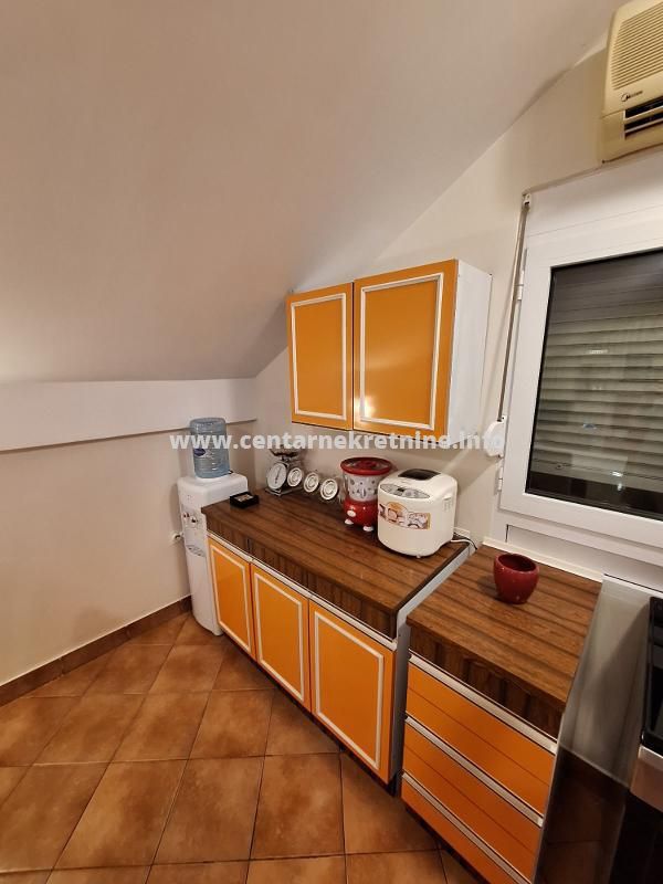 ID - 6052For rent, completely furnished two bedroom apartment on the upper floor of a house in Donja Gorica, with an area of 70m2. It has a terrace, a yard of 500m2 and parking spot.