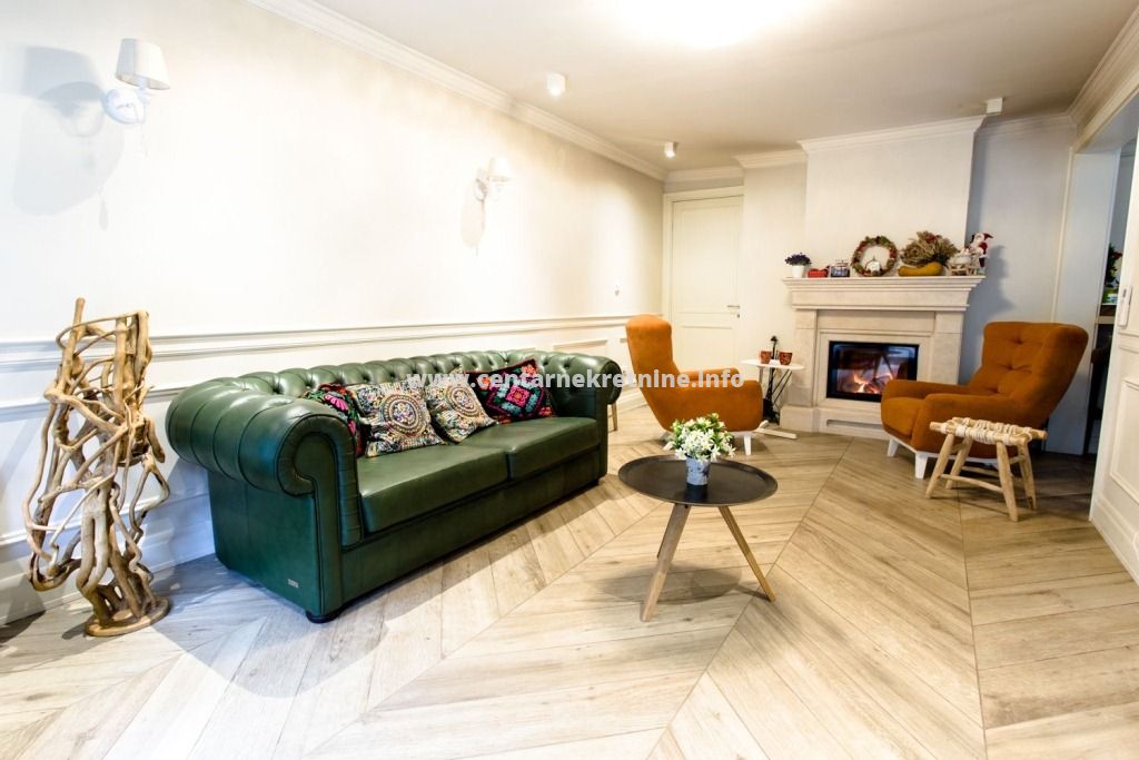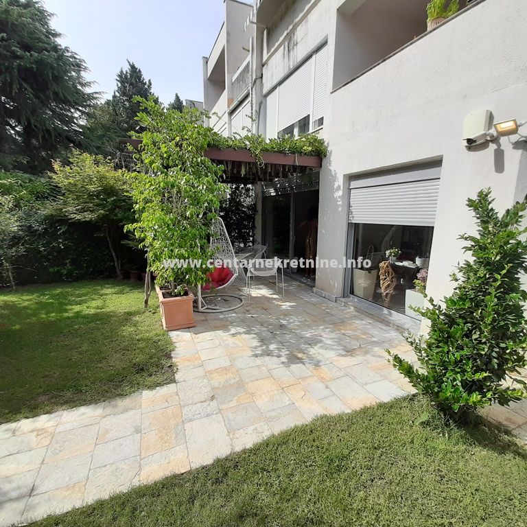 We are renting out a comfortable, modernly equipped three-room apartment of 120m2, on the ground floor of a residential building, in Beogradska Street near the Zija Hotel. The structure of the apartment is three rooms, it has a comfortable living room, kitchen, dining room, toilet, bathroom, two bedrooms and one study. The apartment has a beautifully landscaped yard, which is covered by an alarm and video surveillance.