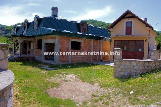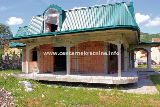Veći objekat ima oko 530 kvadrata spoljašnji dio,a betonska ploča na prvom spratu je 288m2,donji sprat je pregrađen,2 kupatila,hodnik,kuhinja sa špajizom,dnevni boravak,2 sobe,izlazak u garažu i ostava.Na gornjem spratu je ostavljen prostor izjedna.Krov je betonski,izolacija je postavljena bitumen,kondor,kamena vuna,daska,folija,letve i švedski lim.Zid kuće je zidan sa opekom po austirjskom licenci,ljeti hladi,a zimi grije.Struja je dovedena do ulaze i cijevi od vode su postavljene isto do objekta.Objektat je rađen pod stručnim nadzorom.