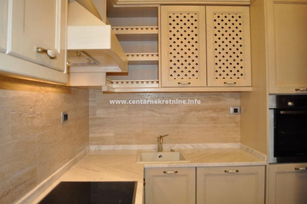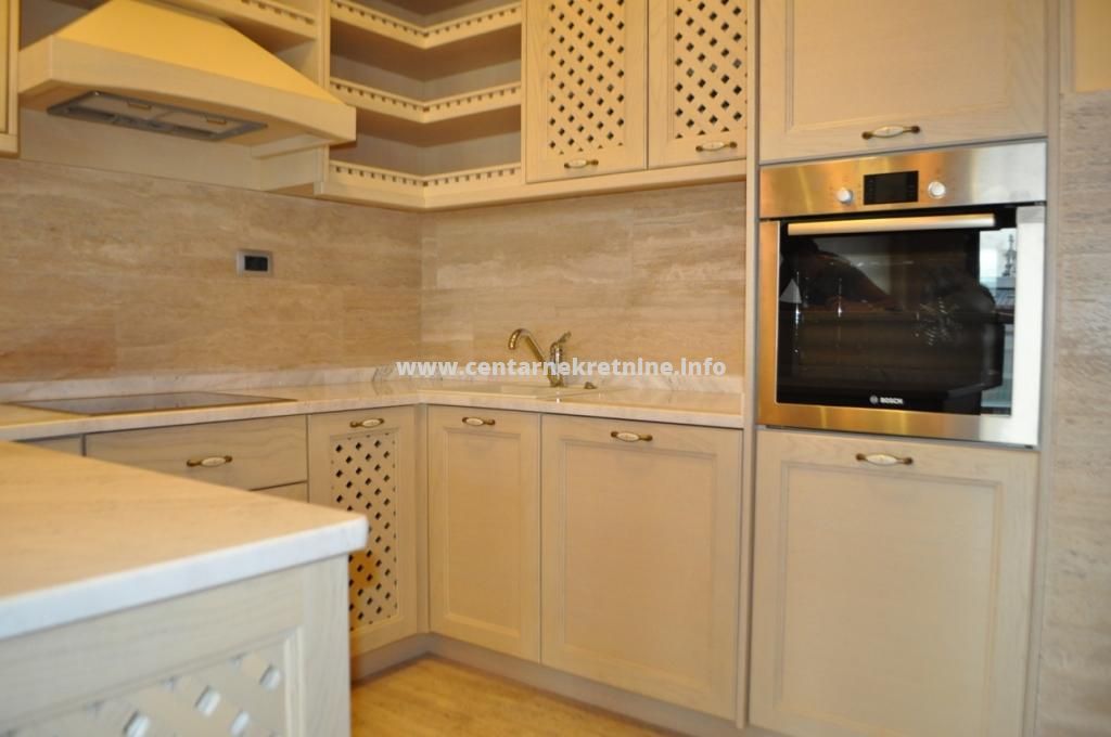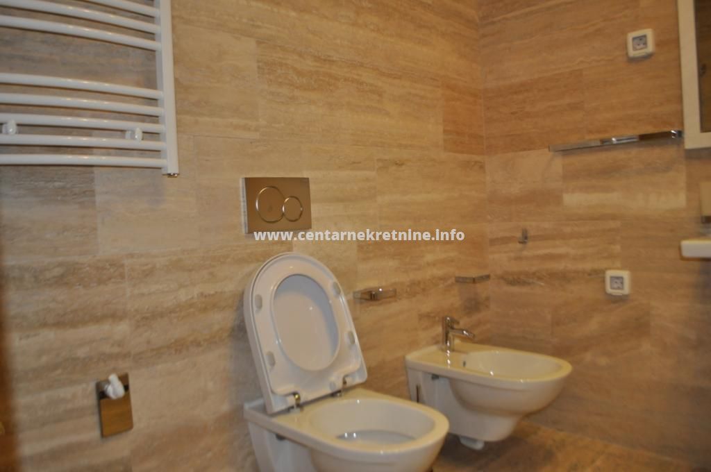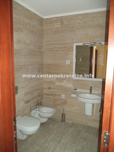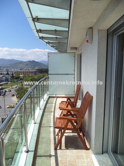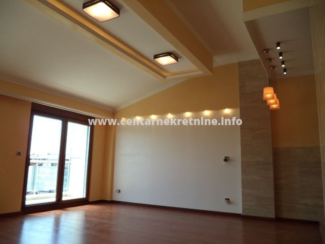 Izdaje se luksuzan penthouse, strukture trosobnog stana, u zgradi Normal Co. na Bulevaru Svetog Petra Cetinjskog. Stan je povrsine 138m2, na VI spratu, sa garaznim mjestom. Sastoji se od velikog ulaznog hola, prostranog dnevnog boravka sa velikom trpezarijom i kuhinjom, ostave, toaleta za goste, degazmana, tri spavace sobe od kojih jedna ima veliko sopstveno kupatilo, zajednicko kupatilo, veseraj i dvije terase pozicionirane sjeveroistocno i jugozapadno. Stan je trenutno nenamjesten, osim kompletne kuhinje, moze se kompletno opremiti.