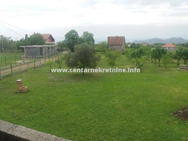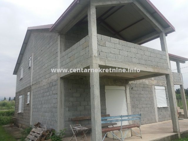 Prodaje se kuca 240m2 +50m2 podruma, na placu od 4.000m2. Kuca je na tri nivoa, podrum, prizemlje i sprat. Ozidana je, pokrivena, i ugrađeni su vrata i prozori sa roletnama. Prizemlje je pregrađeno, dok potkrovlje nije. Plac je kultivisan, zasađen vocnjakom i lozom. Kuca je na lijepom mjestu, Cijevna kod aerodroma. Moguce odvojeno kupiti samo parcelu od 1.000m2 placa.