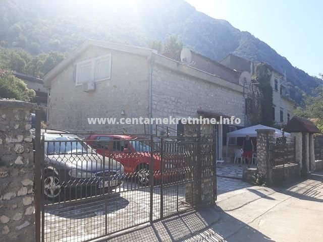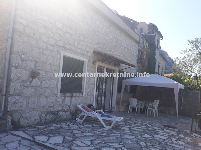 Prodaje se kuca u na odlicnoj lokaciji u Ljutoj, opstina Kotor. Kuca je kamena, ograđena, sa lijepim dvoristem i predivnim pogledom na more. Sagrađena pocetkom 19. vijeka, kuca je povrsine 90m2 (75m2 kuca+15m2 pomocni objekat) i nalazi se na placu povrsine 413m2. Na prizemlju kuce nalazi se dnevni boravak sa kuhinjom i trpezarijom, kupatilo i galerija, dok su na spratu 2 spavace sobe i kupatilo. Kuca je useljiva, djelimicno renovirana i u pristojnom stanju. S obzirom na sjajnu lokaciju i pogled na more, uz određena ulaganja u pravcu renoviranja i adaptacije, kuca predstavlja odlicnu investiciju.