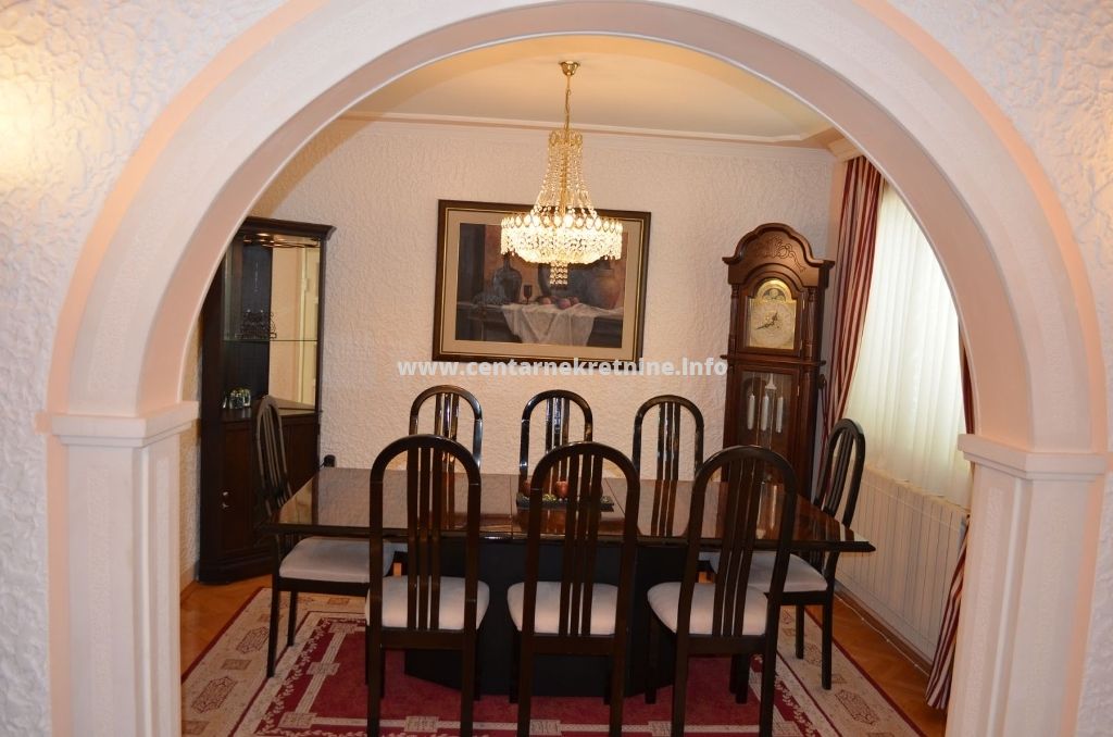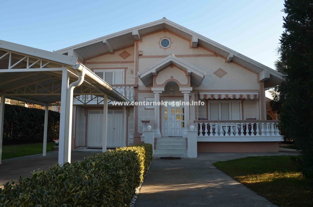 Izdaje se odlicna, prostrana, veoma lijepa kuca u Tolosima, nedaleko od marketa Lakovic u Dalmatinskoj ulici, povrsine 200m2, sa dvoristem od 1.300m2 i vocnjakom iza kuce. Kuca ima 4 spavace sobe, 2 kupatila, 4 terase i garazu. Takođe postoji agregat jacine 45kw u slucaju nestanka struje, centralno grijanje i alarm. Dvoriste je ograđeno visokom zivom ogradom.
