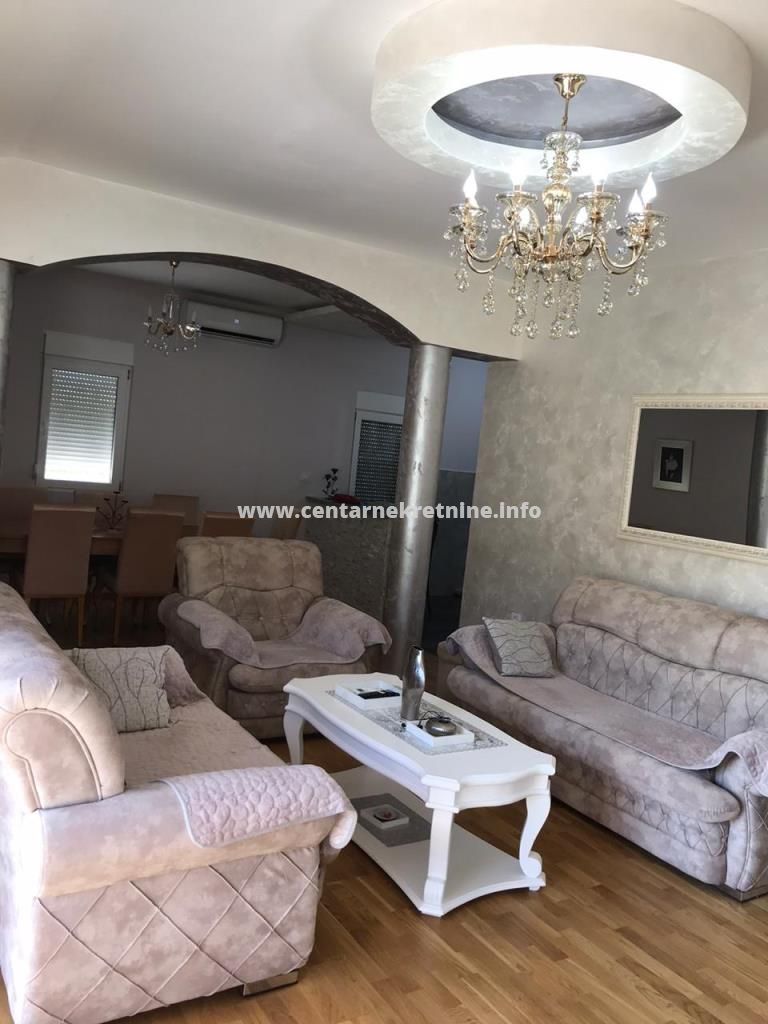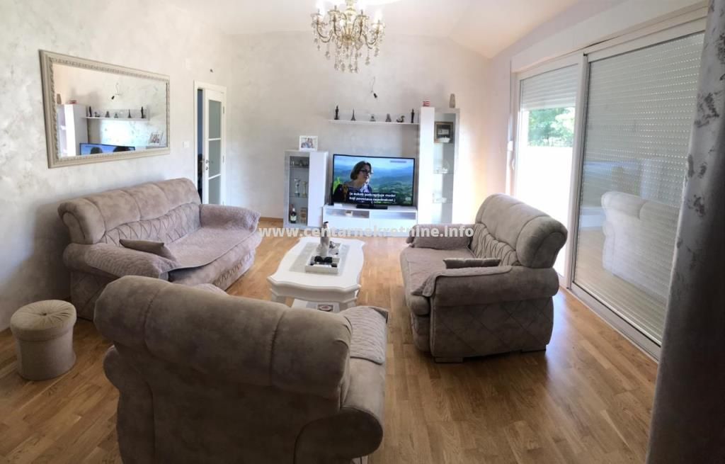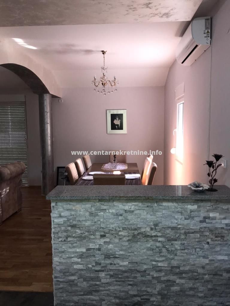 ID - 4195Izdaje se luksuzna, nova, veoma lijepo namjestena kuca u Spuzu, povrsine 152m2 na placu od 1.000m2. Plac je ograđen i kultivisan.
