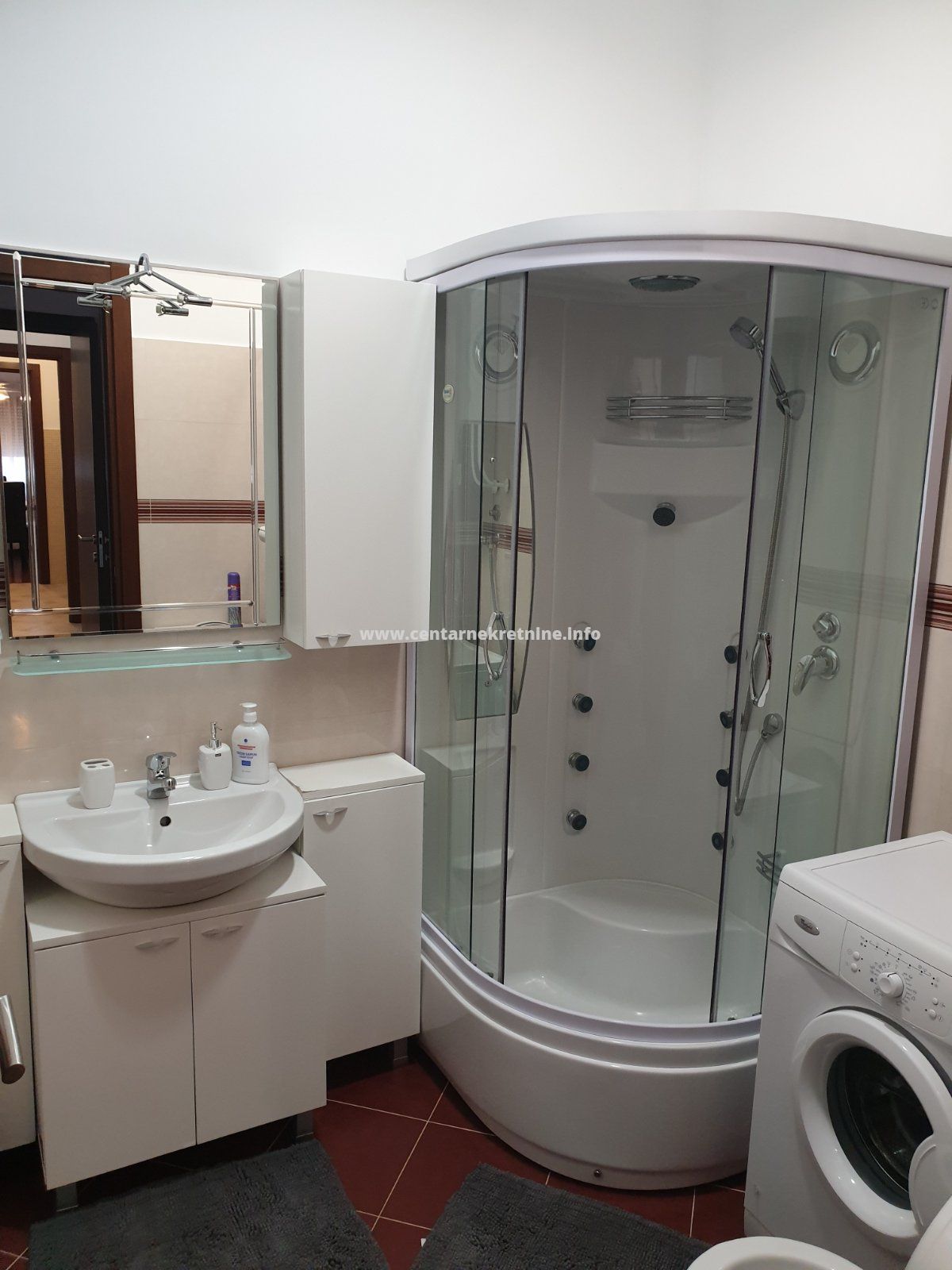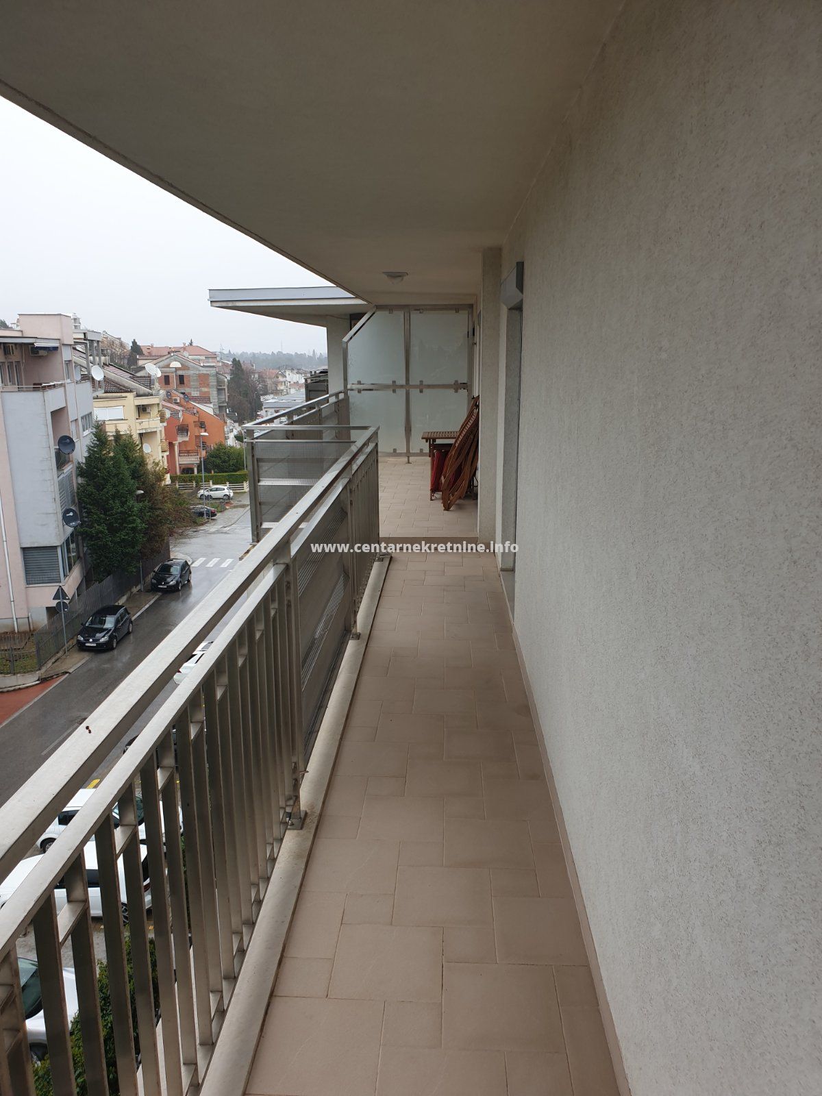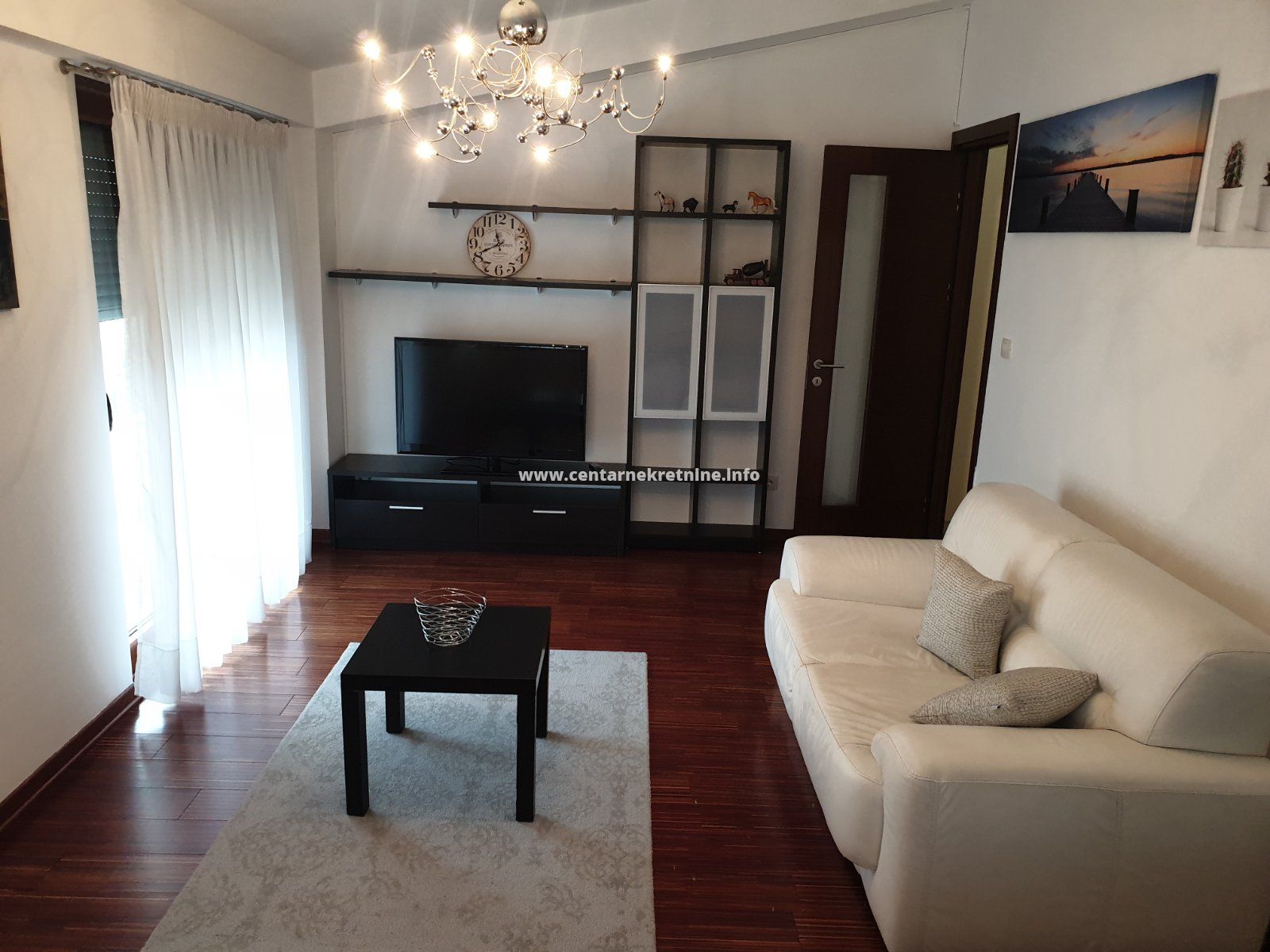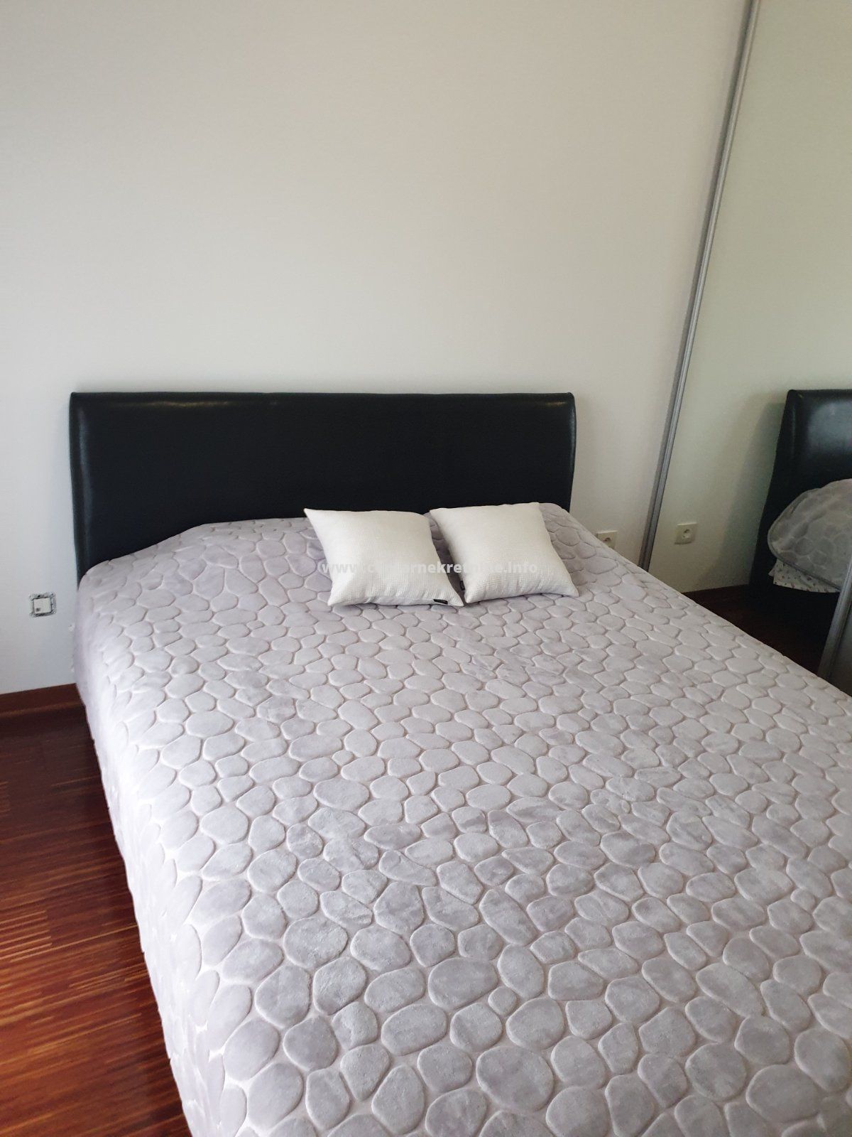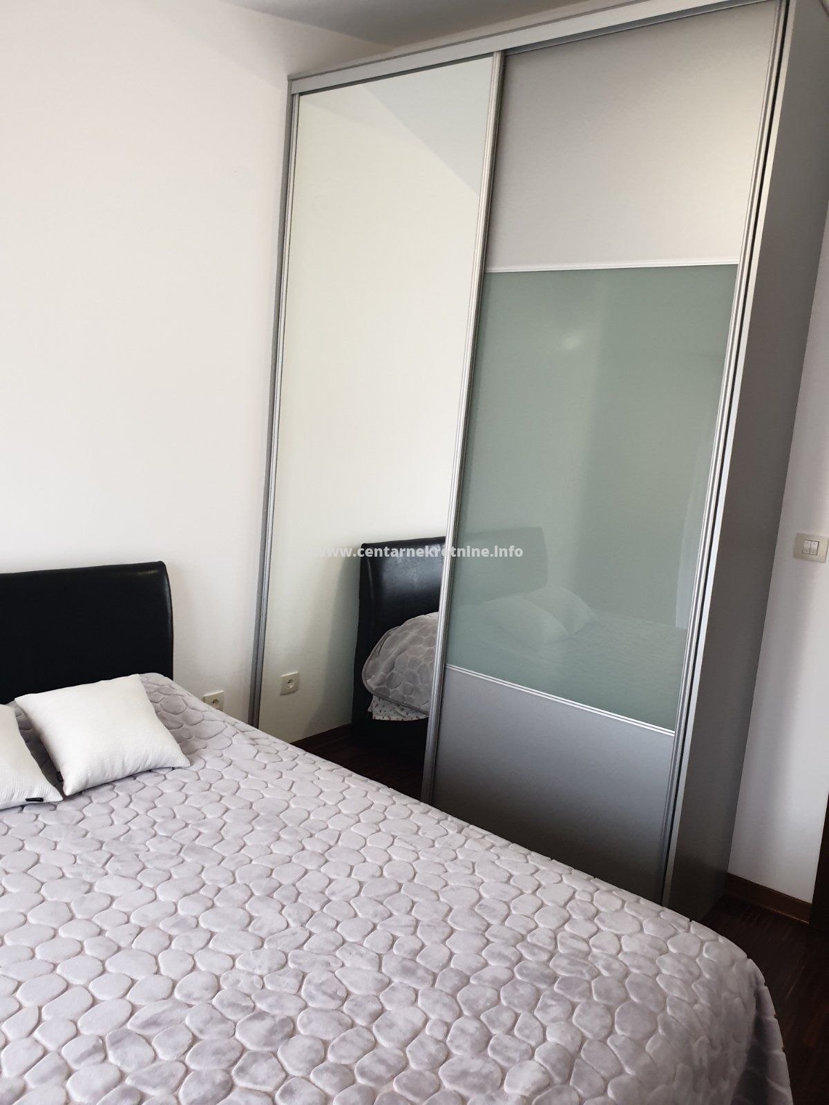 Izdaje se luksuzan, veoma lijepo namjesten, prostran dvosoban stan u novoj, kvalitetnoj zgradi u blizini ambasade Velike Britanije, povrsine 94m2, na IV, poslednjem spratu, sa garaznim mjestom.