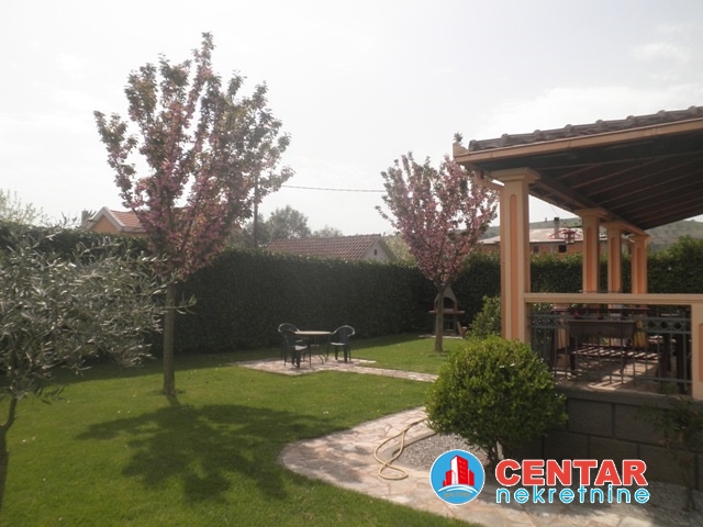 Nova, opremljena kuca 180m2 + 50m2 ljetnja kuhinja, na placu 1.300m2. Kuca je na vise nivoa, instalirano centralno grijanje i klime.