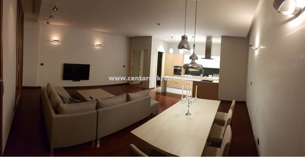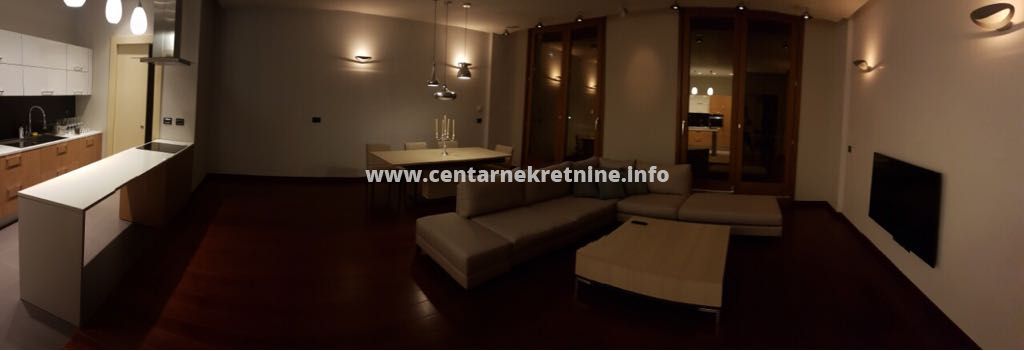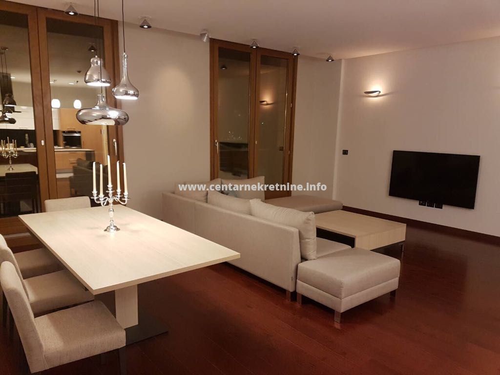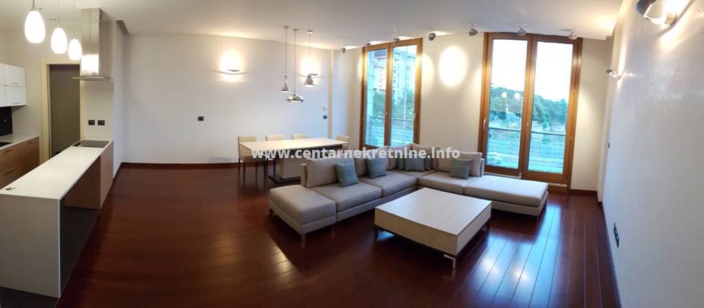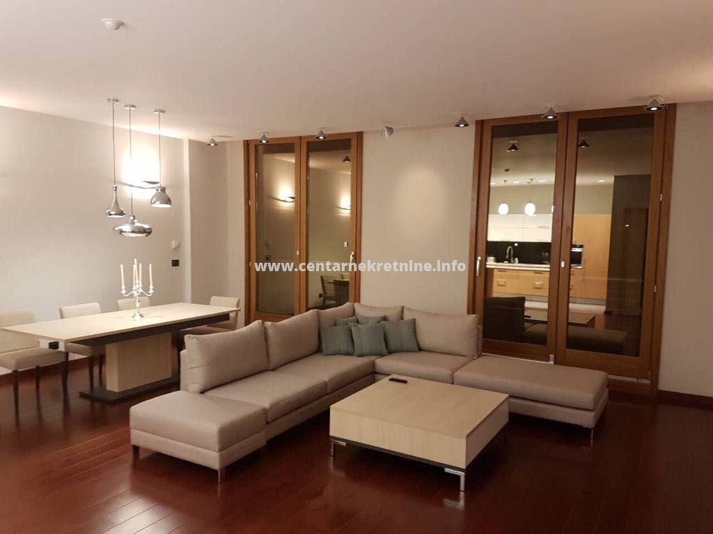 Izdaje se luksuzan, veoma lijepo namjesten, prostran dvosoban stan na ekskluzivnoj lokaciji, u Capital Plaza Centru, povrsine 116m2, na I spratu. Stan se sastoji od velikog dnevnog boravka sa kuhinjom i trpezarijom, 2 spavace sobe, 2 kupatila, toaleta i vesernice. Ima 2 garazna mjesta.