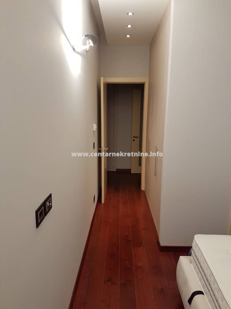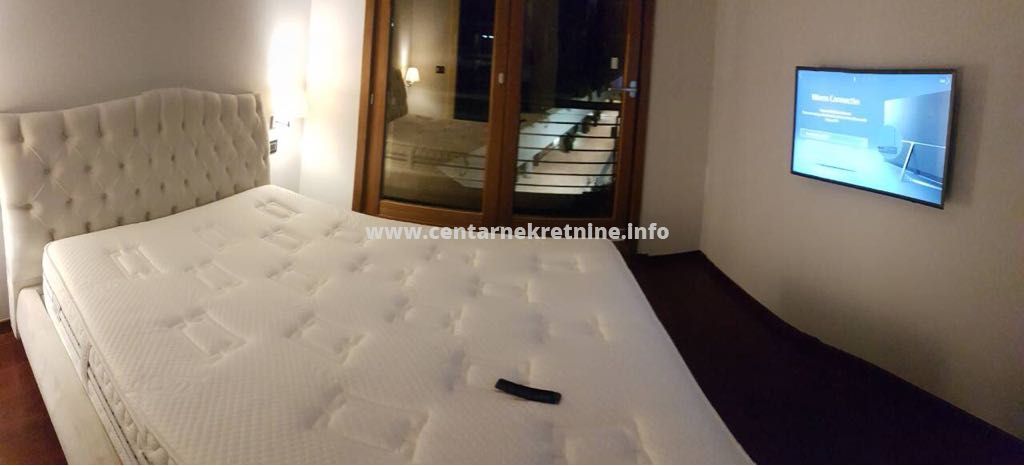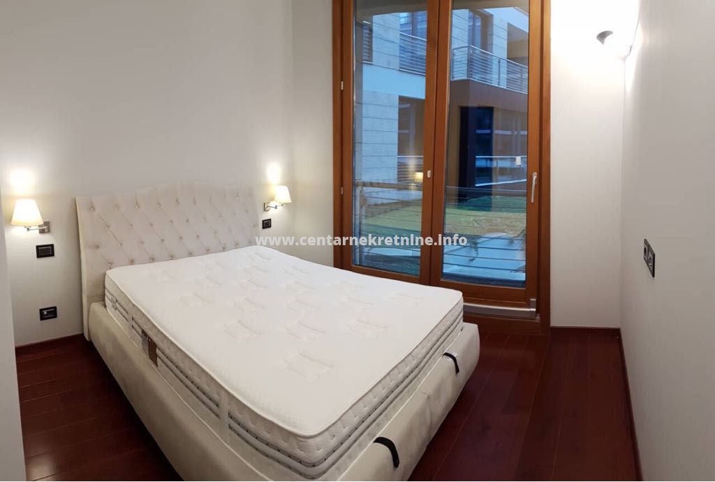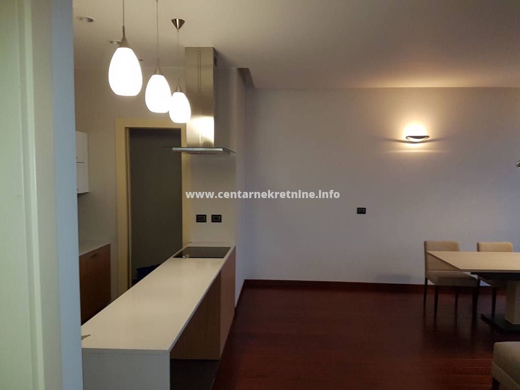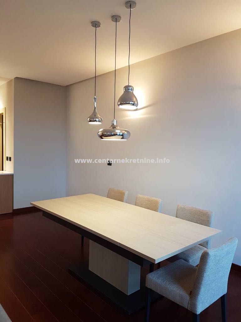 Izdaje se luksuzan, veoma lijepo namjesten, prostran dvosoban stan na ekskluzivnoj lokaciji, u Capital Plaza Centru, povrsine 116m2, na I spratu. Stan se sastoji od velikog dnevnog boravka sa kuhinjom i trpezarijom, 2 spavace sobe, 2 kupatila, toaleta i vesernice. Ima 2 garazna mjesta.
