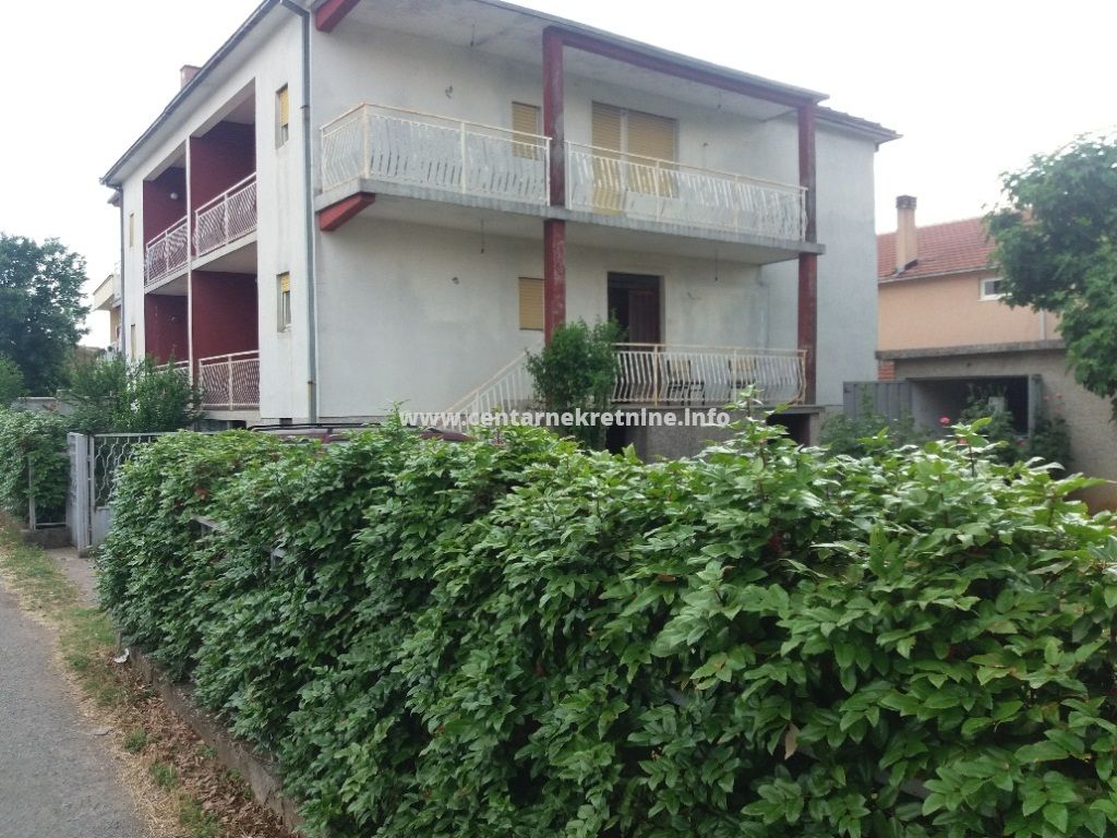 Prodaje se dvojna kuca 214m2 sa dvoristem od 515m2. Kuca se sastoji od tri stambene cjeline. Na niskom prizemlju su dva jednosobna stana, od 26m2 i 38m2. Treci stan je duplex, na prizemlju je dnevni boravak, odvojena kuhinja i trpezarija, toalet i dvije terase. Na spratu su tri spavace sobe, kupatilo, toalet i tri terase.
