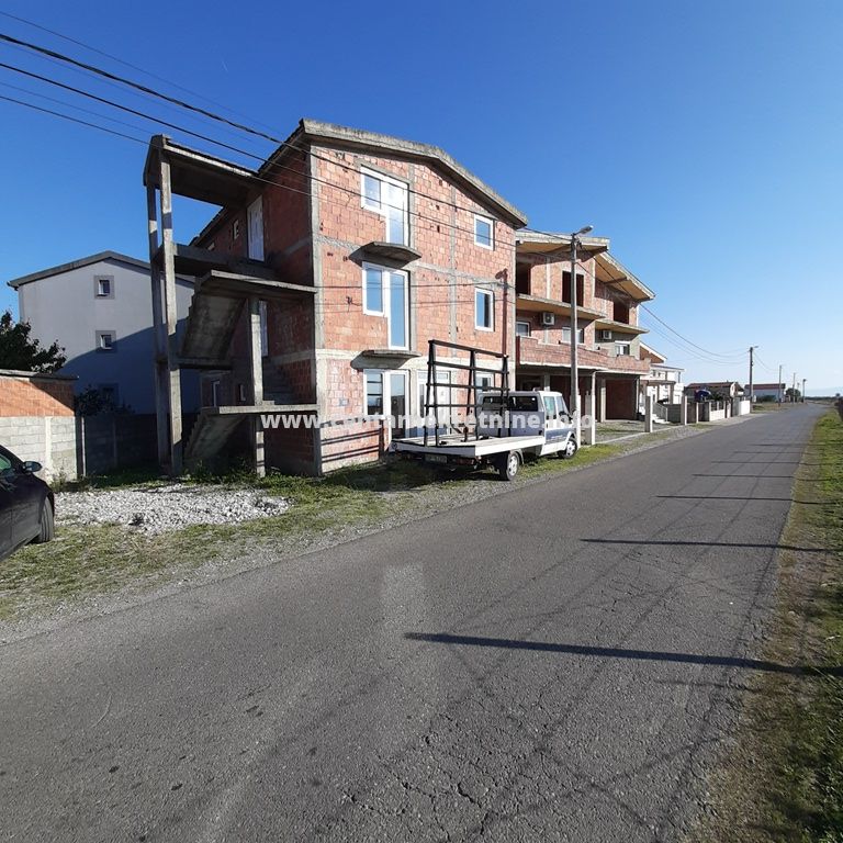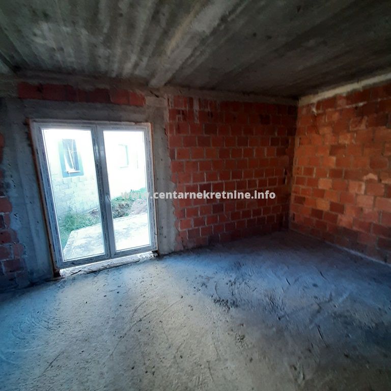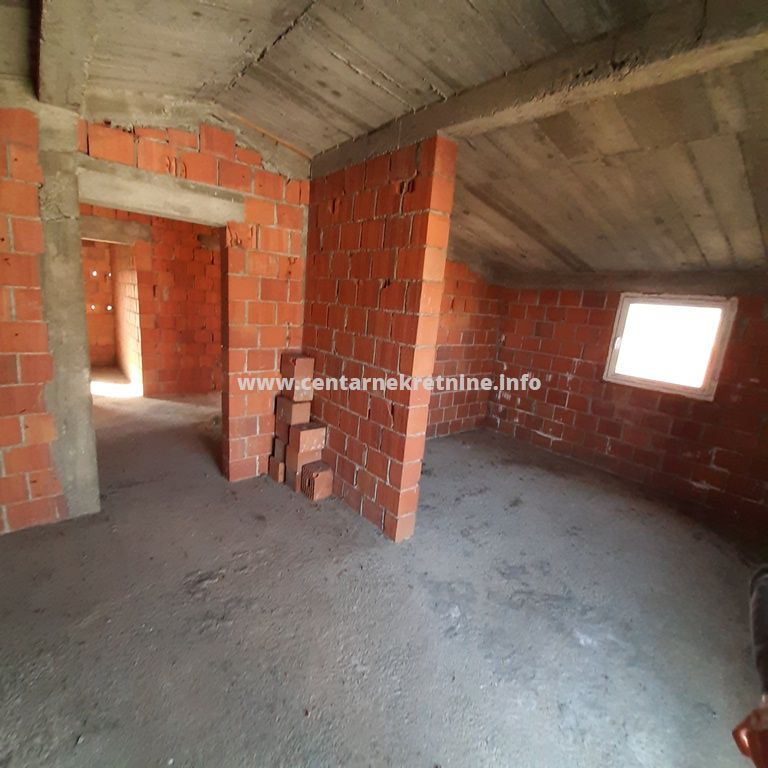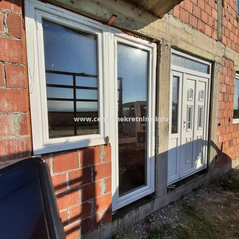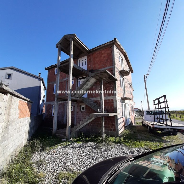 Na prodaju kuća 255m2 na placu od 284m2 na Karabuškom polju. Kuća je na tri nivoa, organizovana kao tri trosobna stana. Ozidana, pokrivena , postavljena je spoljna stolarija, i urađene su pregrade u stanovima. Ima priključak za vodu, struju, kao i septičku.