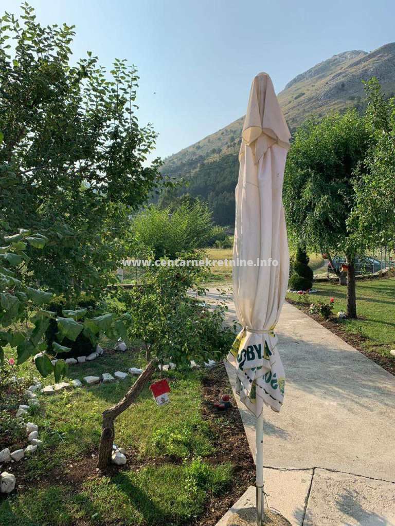 ID - 5008Prodaje se kuća 63m2 i pomoćni objekat 27m2 na placu od 1.000m2, Njeguši, 700m udaljeno od etno sela. Kuća je useljiva , dvorište je lijepo uređeno, sa puno sadnica voća.