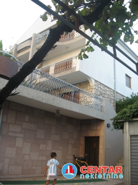 Kuca na cetiri nivoa, 880m2 sa tearsama, na 1200m2 placa. Na prizemlju je poslovni prostor od 60m2, na I spratu je trosoban stan od 130m2+100m2 balkon, na II spratu je trosoban stan od 120m2+100m2 balkona, na III nivou trosoban stan 120m2+100m2 balkona. Plac je 1.200m2, kultivisan. Dvije garaze i vise parking mjesta.