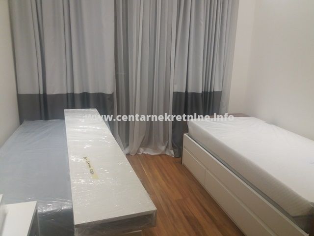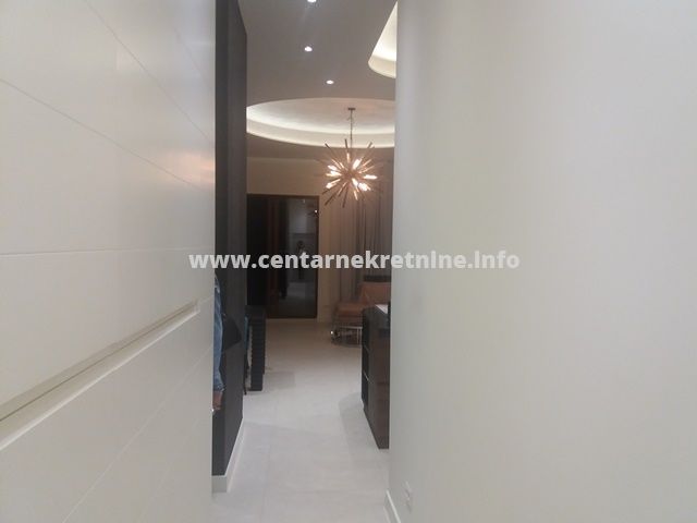 ID - 5458Izdaje se prostran, luksuzan, veoma lijepo namjesten trosoban stan u kvalitetnoj novoj zgradi u blizini Capital Plaza Centra, povrsine 118m2, na IV spratu, sa 2 garazna mjesta.