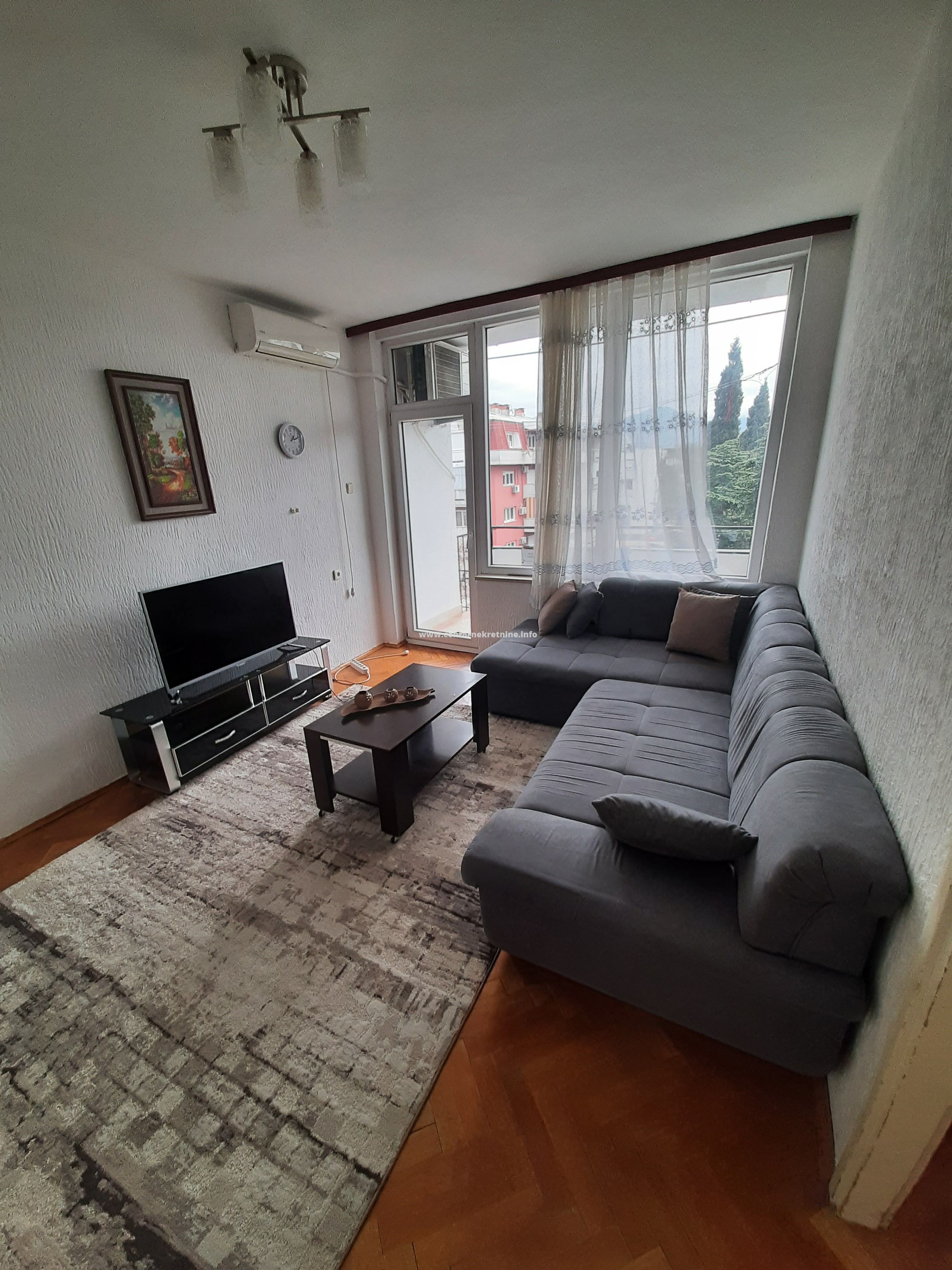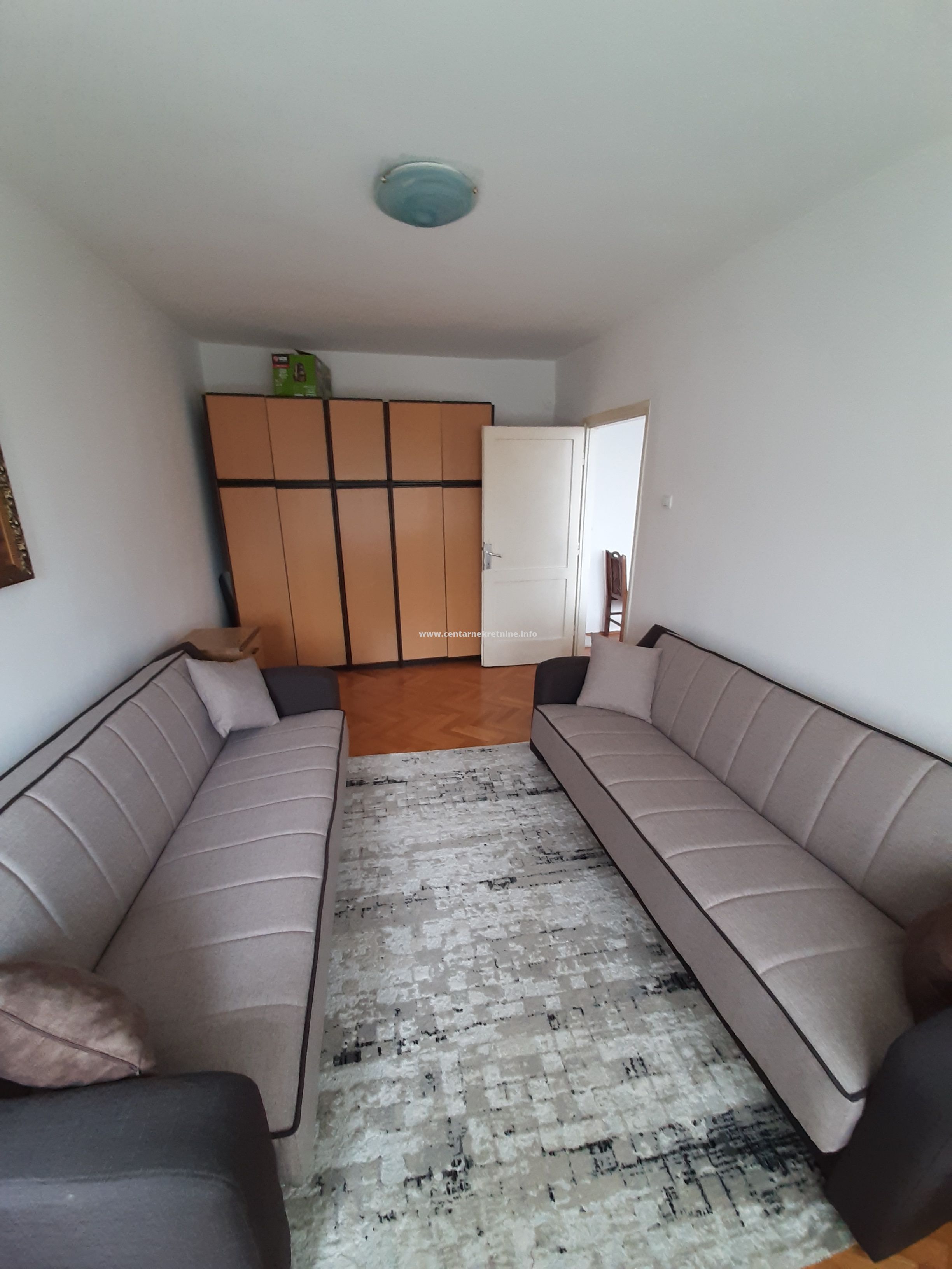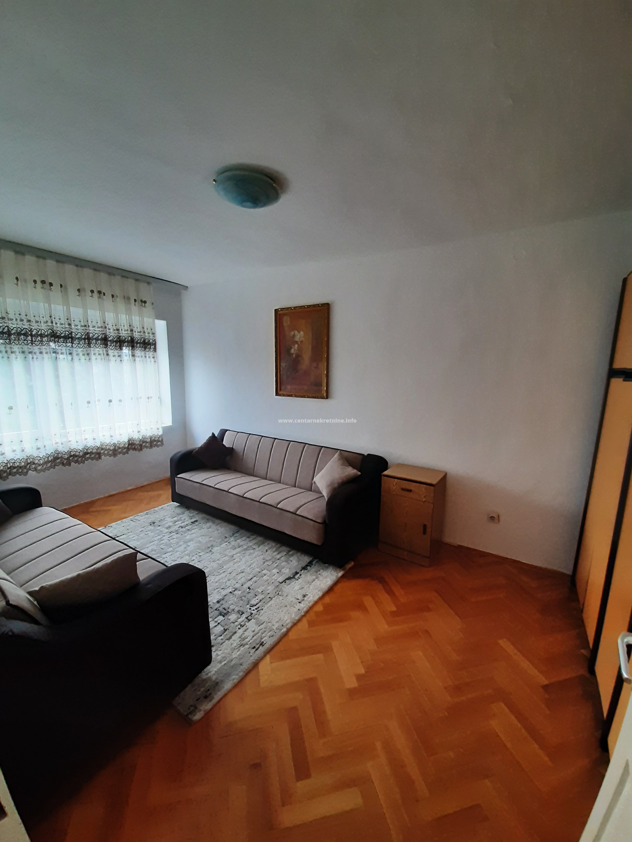 ID - 5488Izdaje se kompletno namjesten, veoma prostran jednosoban stan na odlicnoj lokaciji Preko Morace, nedaleko od Pravnog fakulteta, povrsine 65m2, na III spratu.