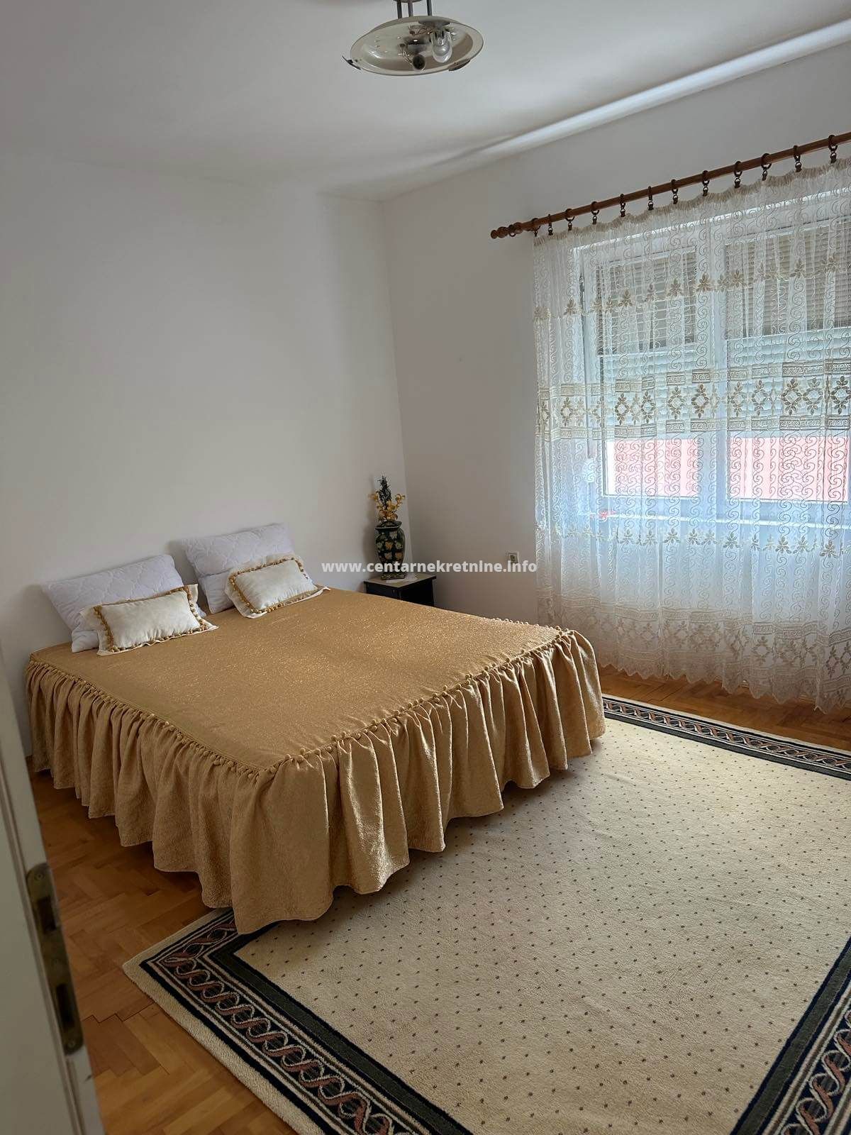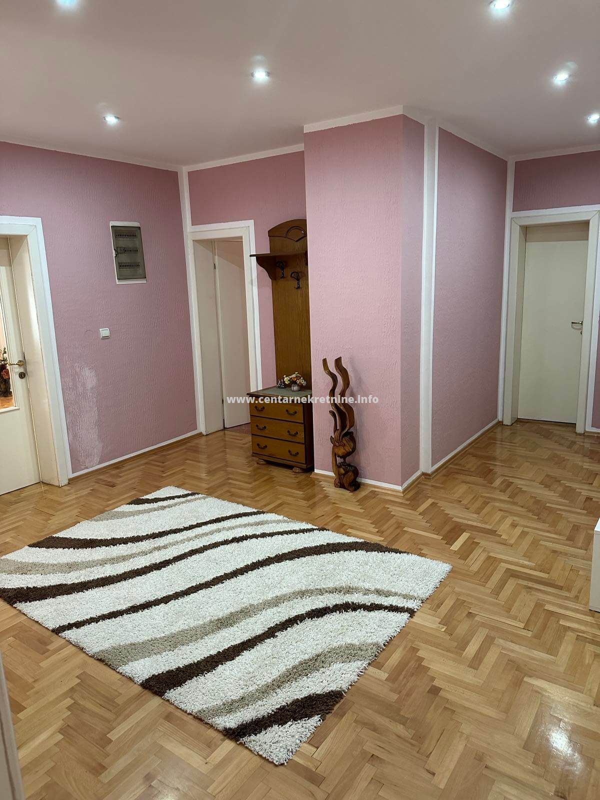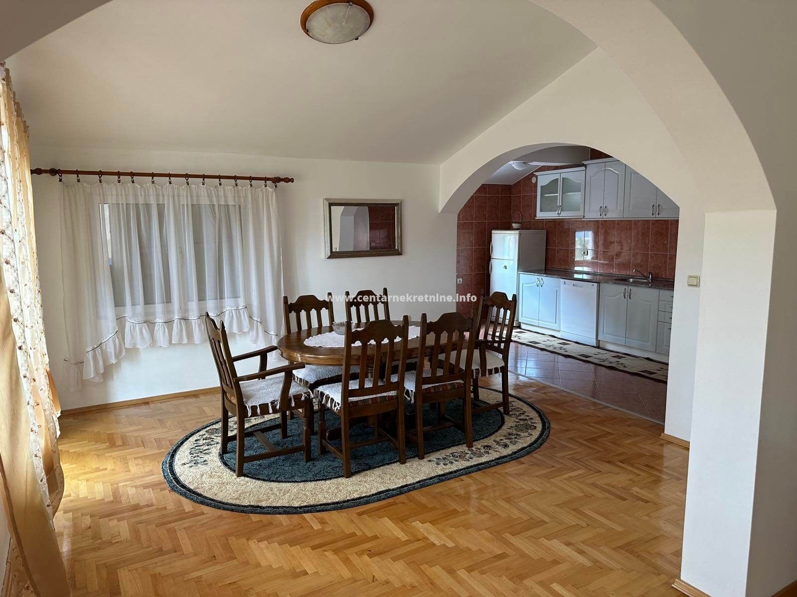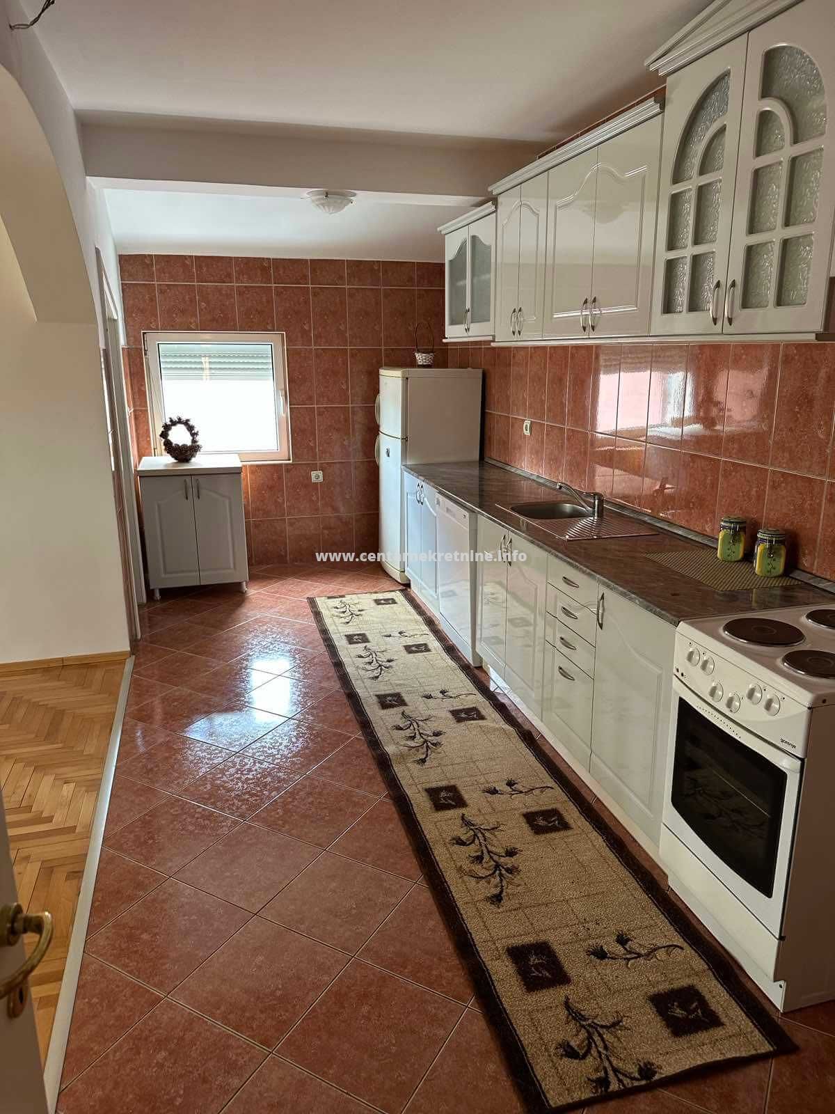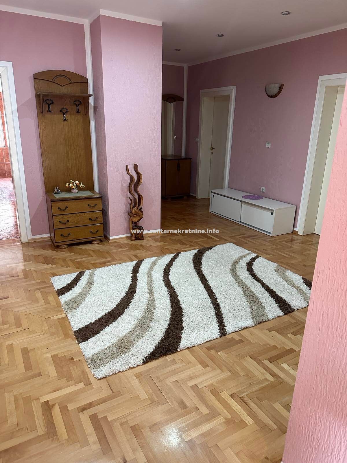 Izdaje se veoma prostran, kompletno namjesten trosoban stan na odlicnoj lokaciji na Starom aerodromu, u neposrednoj blizini osnovne skole. Stan je povrsine 150m2, nalazi se na II spratu, ima zaseban ulaz, 2 velike terase i jugoistocno je orijentisan. Ima parking mjesto u dvoristu.
