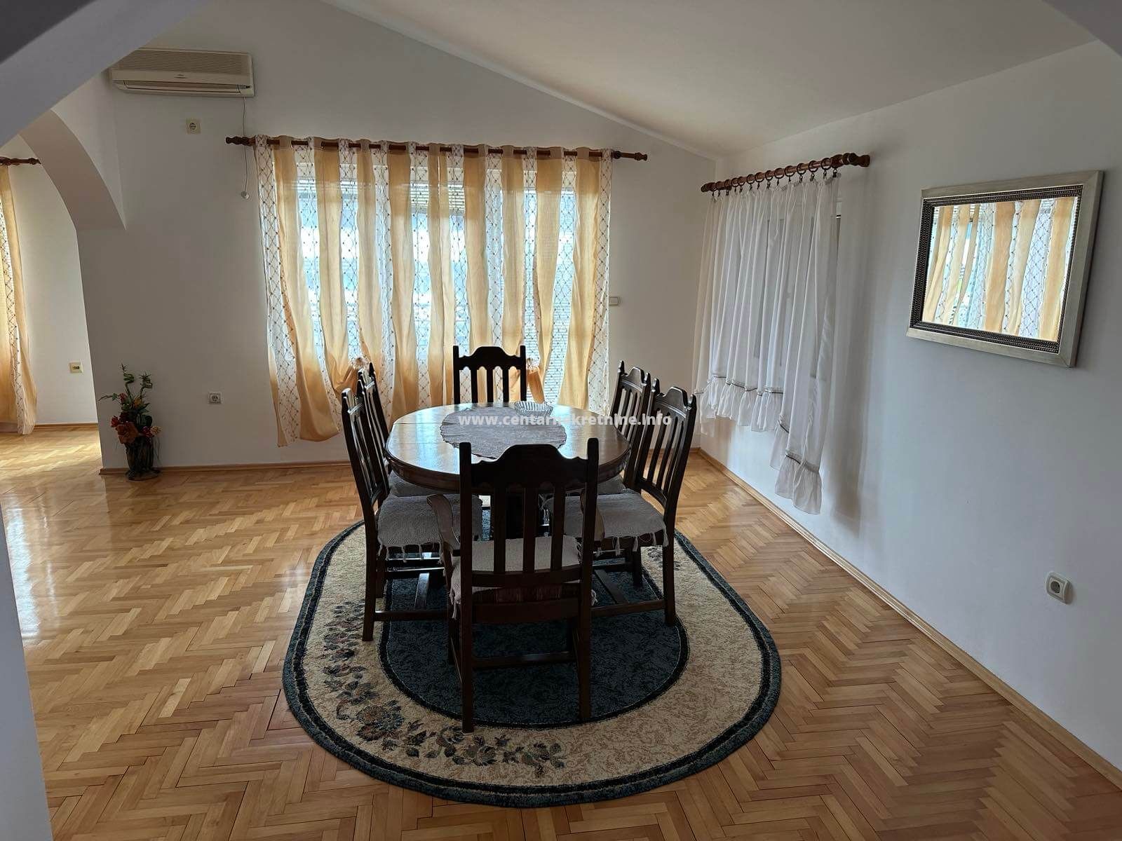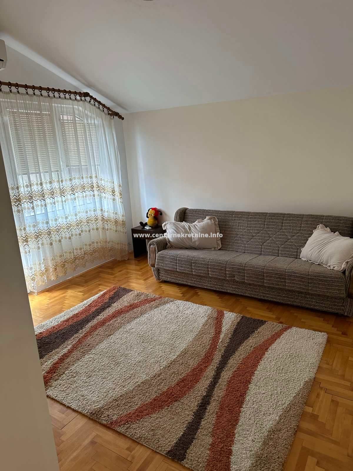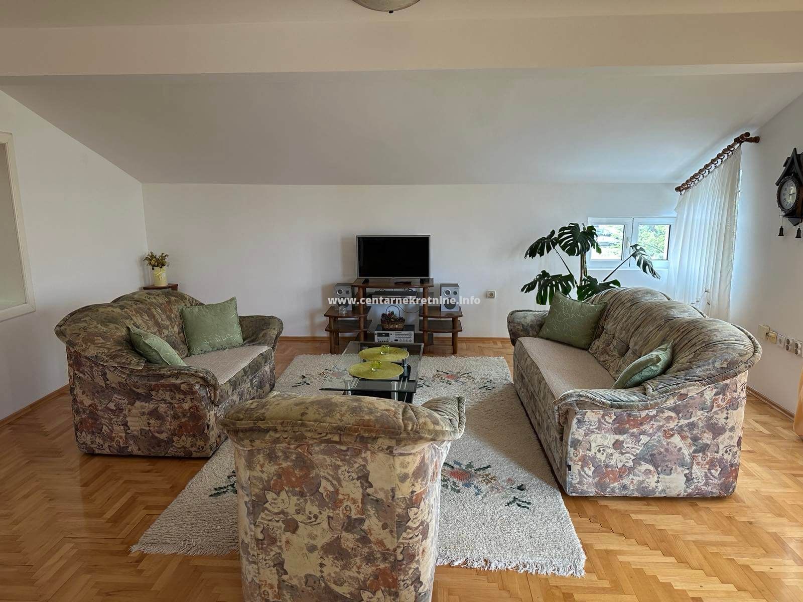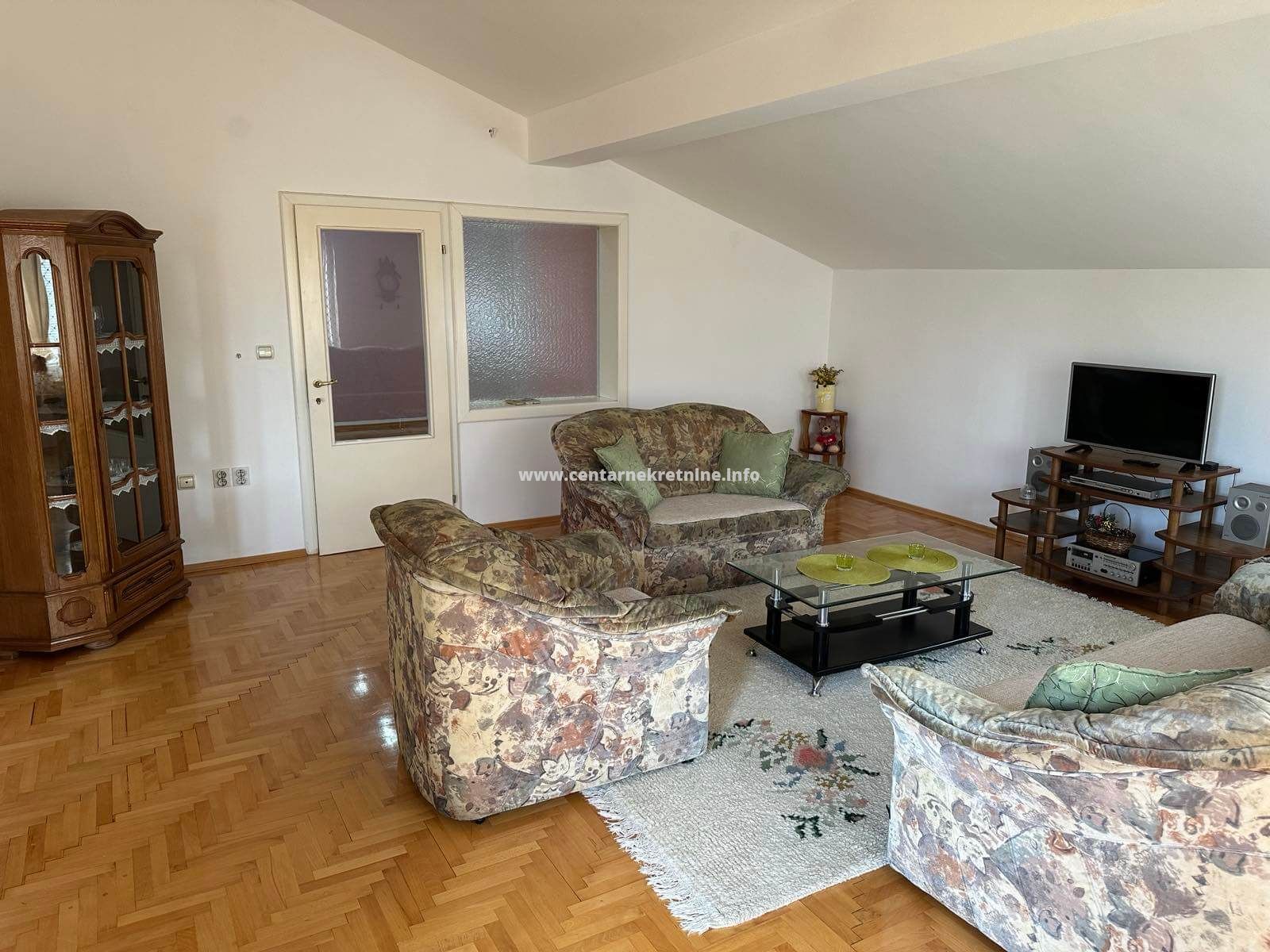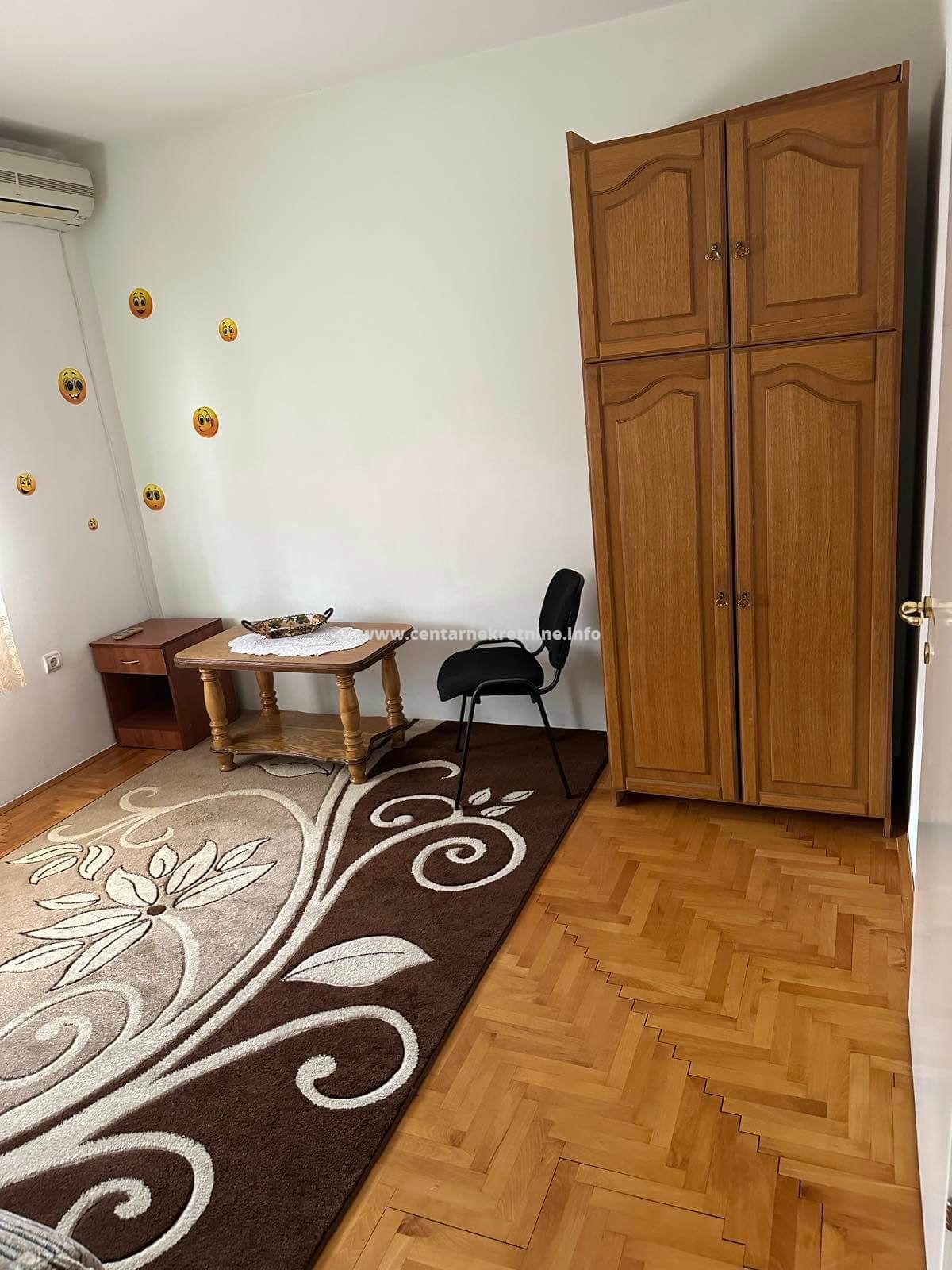 Izdaje se veoma prostran, kompletno namjesten trosoban stan na odlicnoj lokaciji na Starom aerodromu, u neposrednoj blizini osnovne skole. Stan je povrsine 150m2, nalazi se na II spratu, ima zaseban ulaz, 2 velike terase i jugoistocno je orijentisan. Ima parking mjesto u dvoristu.