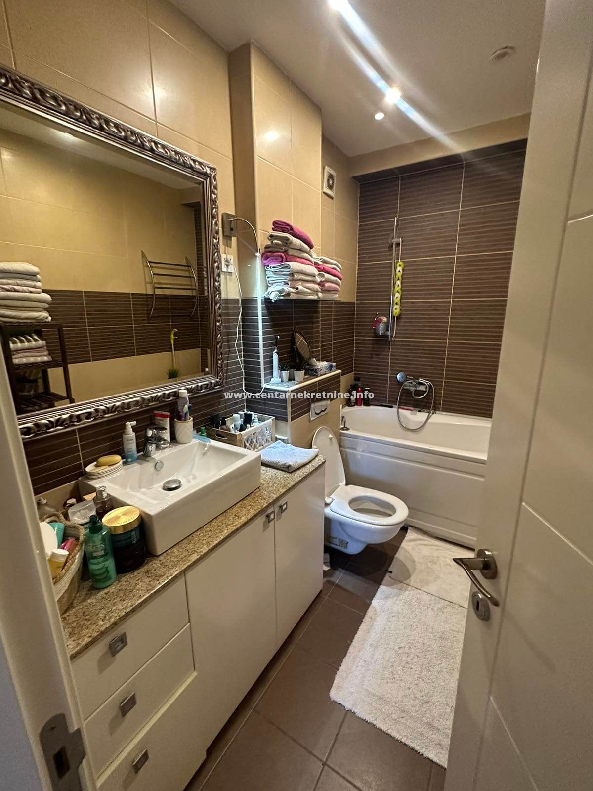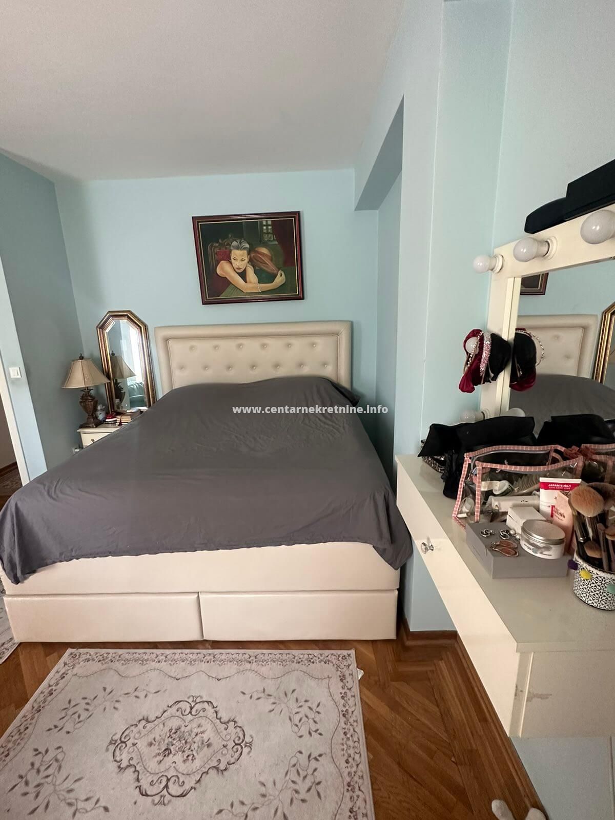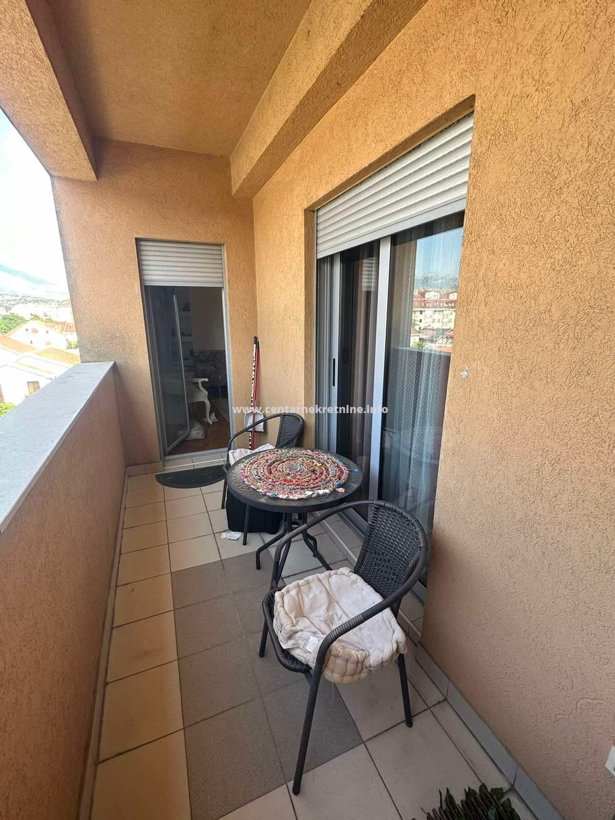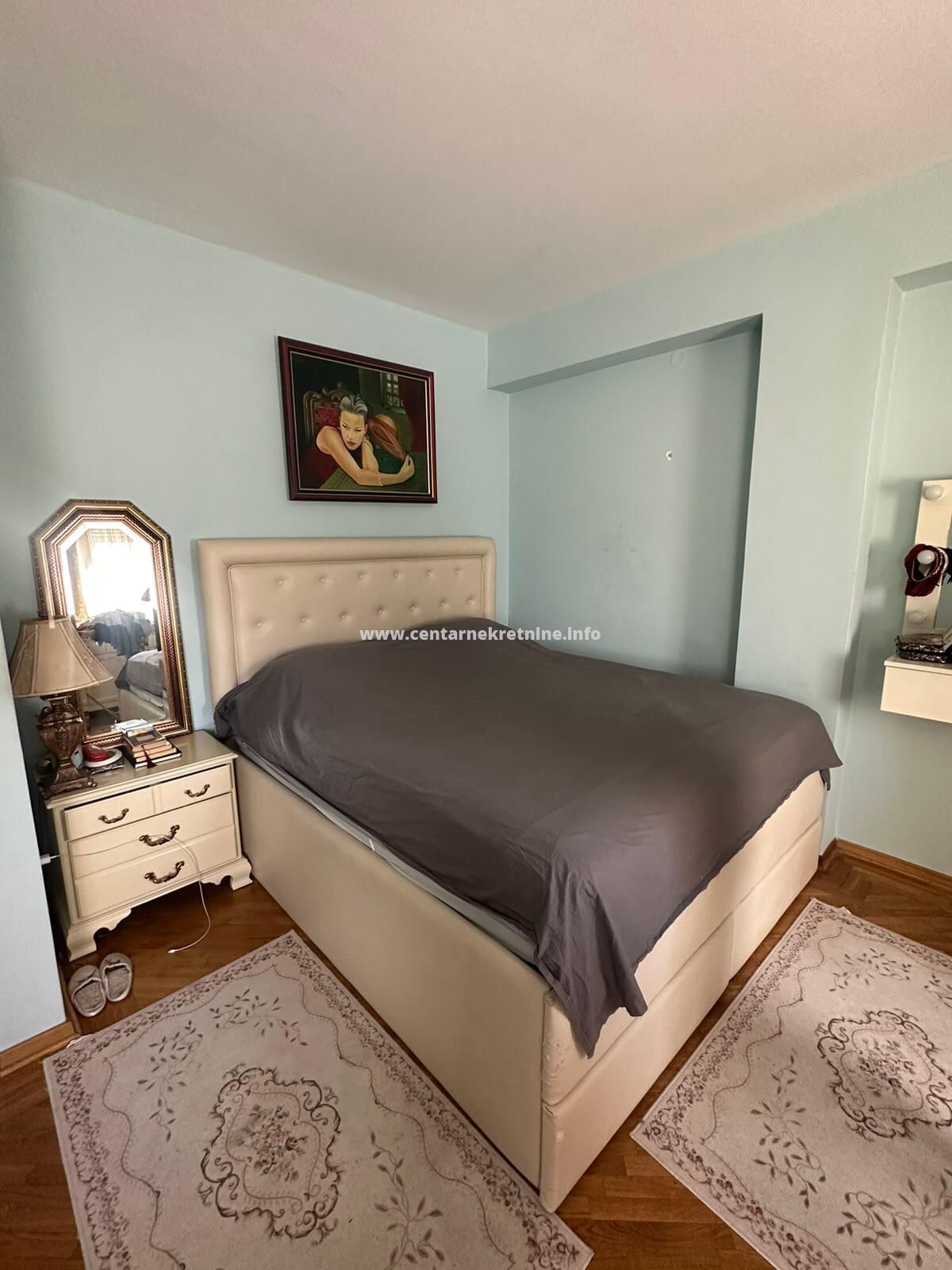 Prodaje se prostran, veoma lijepo namjesten dvosoban stan u novoj zgradi na odlicnoj lokaciji na Starom aerodromu, na Bulevaru Josipa Broza Tita, povrsine 86m2, na III spratu. Stan se sastoji od ulaznog hodnika sa velikim cipelarom, prostranog dnevnog boravka sa trpezarijom, kuhinje, vesernice, drugog hodnika u spavacem bloku, 2 spavace sobe, prostranog garderobera, kupatila i velike terase. Stan se moze pretvoriti i u trosoban.