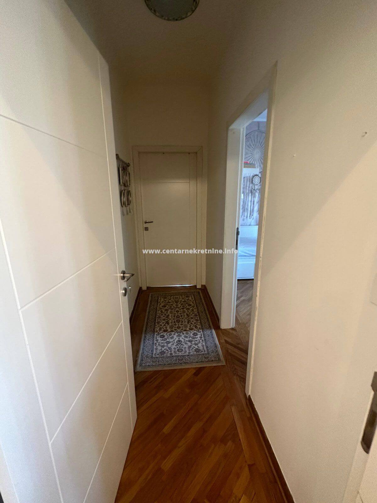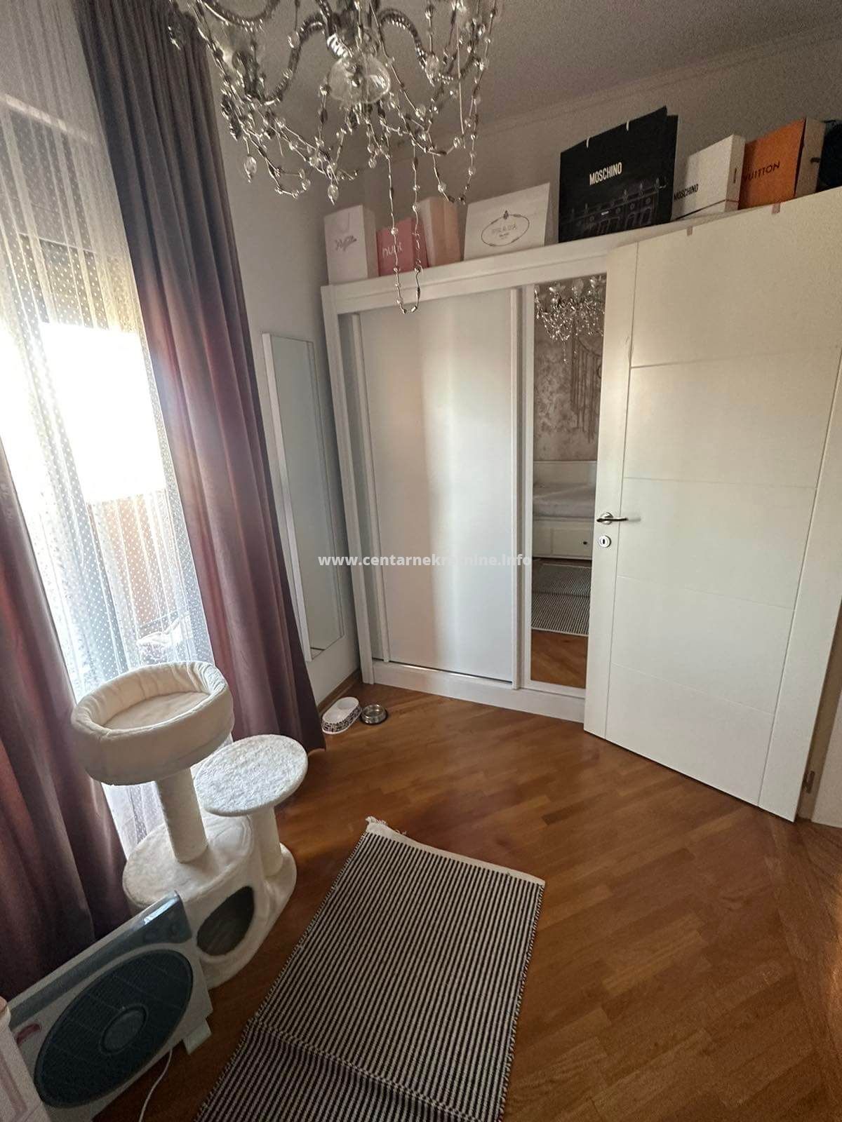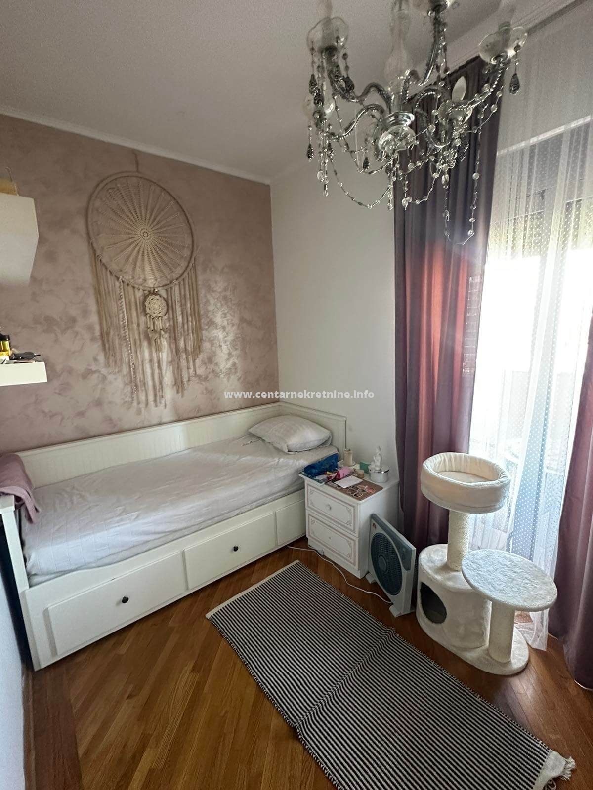 Prodaje se prostran, veoma lijepo namjesten dvosoban stan u novoj zgradi na odlicnoj lokaciji na Starom aerodromu, na Bulevaru Josipa Broza Tita, povrsine 86m2, na III spratu. Stan se sastoji od ulaznog hodnika sa velikim cipelarom, prostranog dnevnog boravka sa trpezarijom, kuhinje, vesernice, drugog hodnika u spavacem bloku, 2 spavace sobe, prostranog garderobera, kupatila i velike terase. Stan se moze pretvoriti i u trosoban.