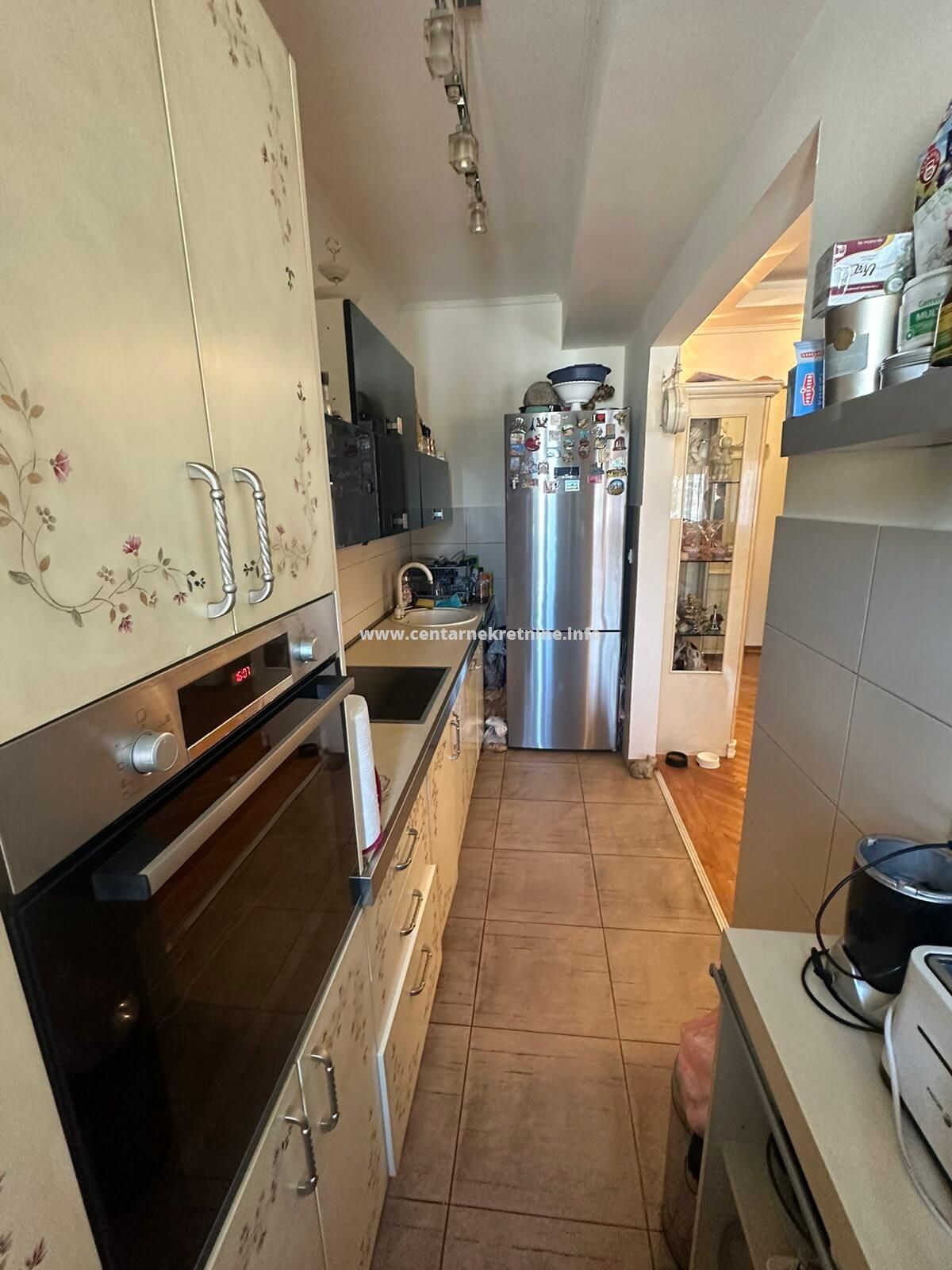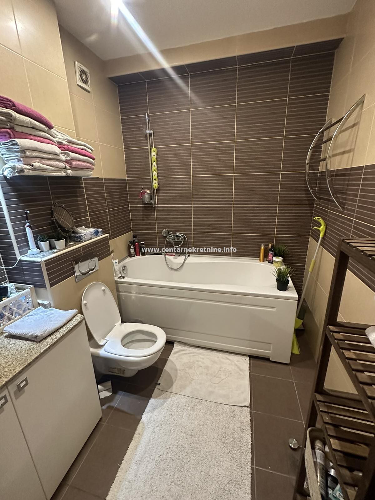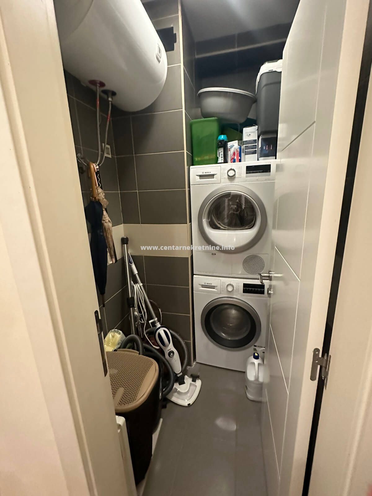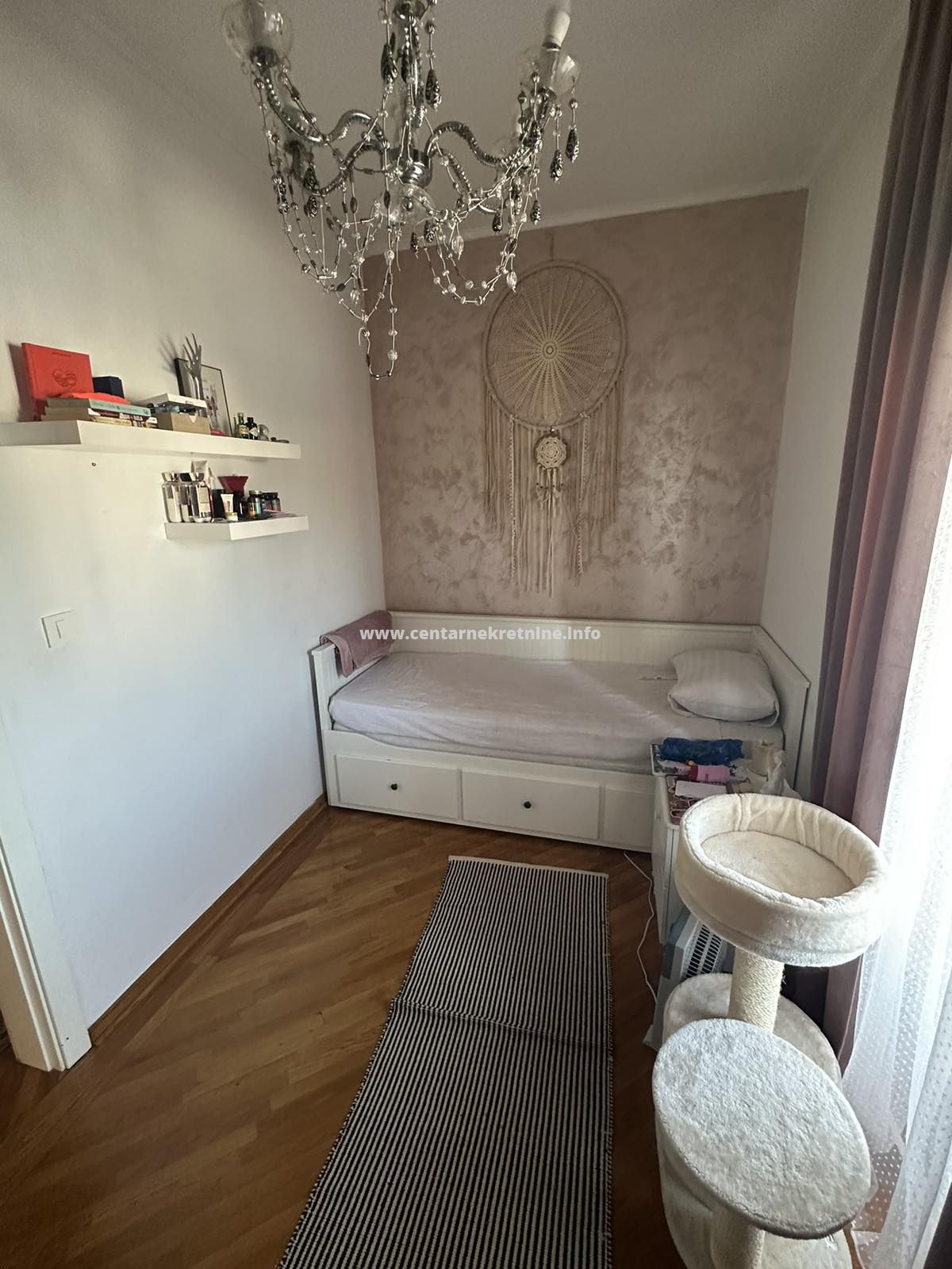 Prodaje se prostran, veoma lijepo namjesten dvosoban stan u novoj zgradi na odlicnoj lokaciji na Starom aerodromu, na Bulevaru Josipa Broza Tita, povrsine 86m2, na III spratu. Stan se sastoji od ulaznog hodnika sa velikim cipelarom, prostranog dnevnog boravka sa trpezarijom, kuhinje, vesernice, drugog hodnika u spavacem bloku, 2 spavace sobe, prostranog garderobera, kupatila i velike terase. Stan se moze pretvoriti i u trosoban.
