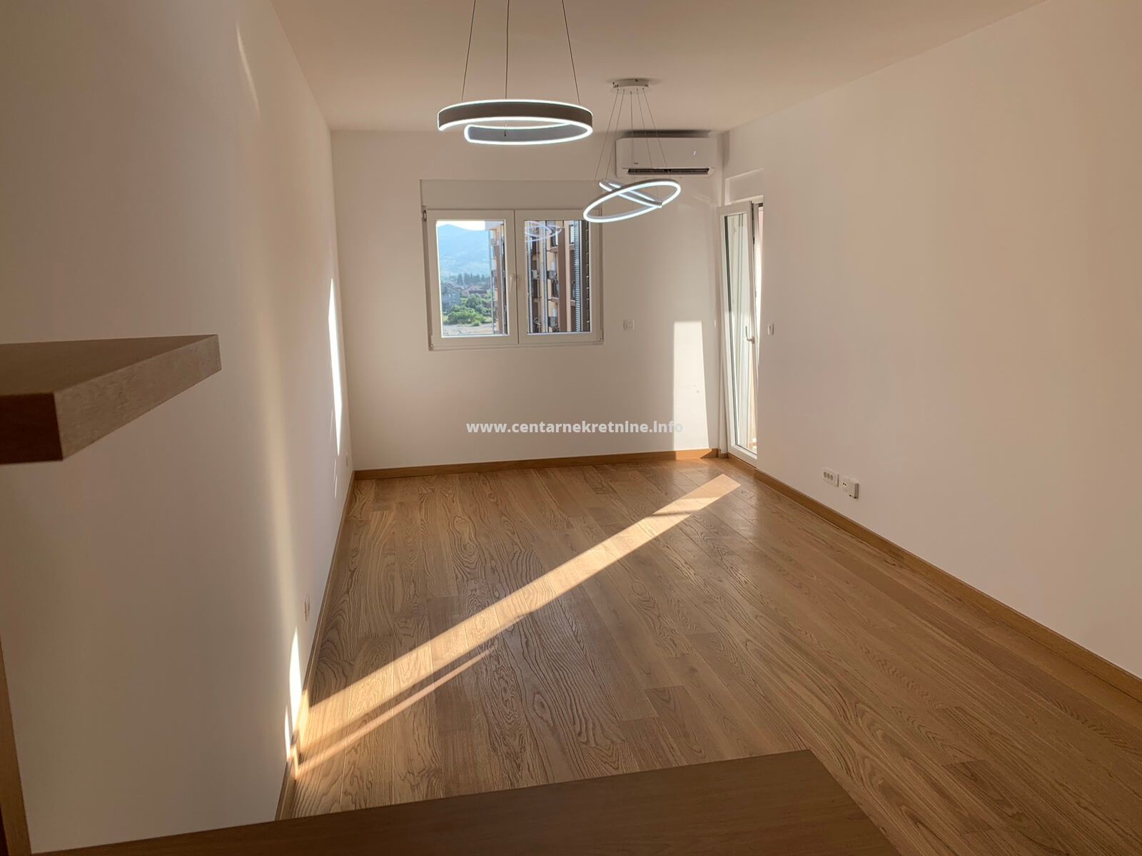 ID - 5714Izdaje se nov, neuseljavan jednosoban stan u Kips zgradi u City kvartu, povrsine 47m2, na IV spratu, sa garaznim mjestom. Stan je polunamjesten, ugrađeni su plakari i kompletna kuhinja. Pogodno i za poslovni prostor.