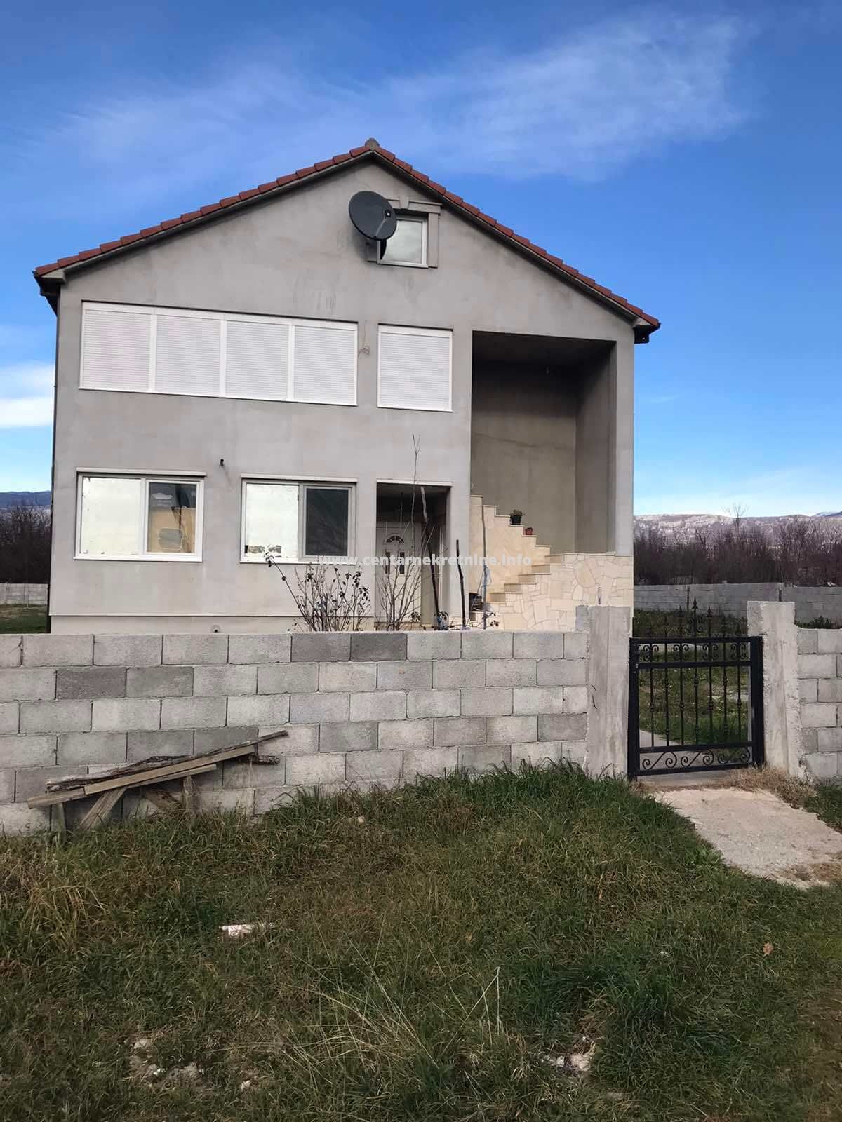Prodaje se kuca u Novom selu, Klikovace, povrsine 160m2, na placu od 900m2. Kuca je novije gradnje, rađena od Ytong blokova, sastoji se od dva kompletno namjestena stana. Plac je ograđen. Na placu postoji i pomocni objekat koji se dijelom nalazi na drzavnom zemljistu.