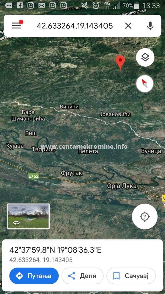 ID - 5769Na prodaju imanje 136000m2, KO Brijestovo, opština Danilovgrad. Imanje je pogodno za solarne panele, farmu, etno selo... Na imanju postoji nalazište mermera. Cijena 2€/m2
