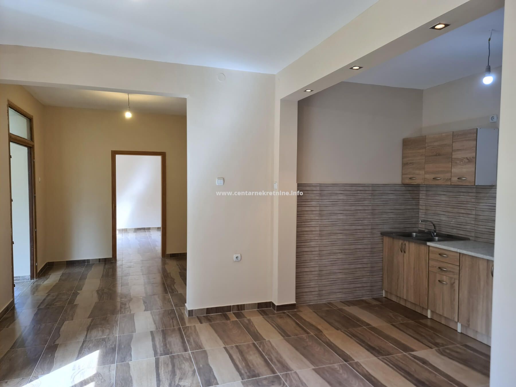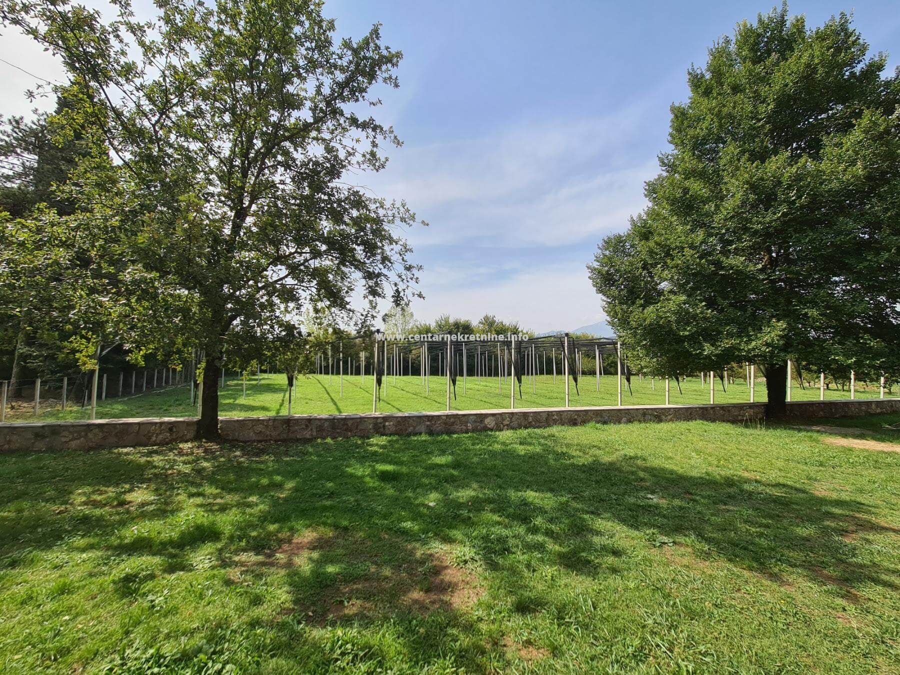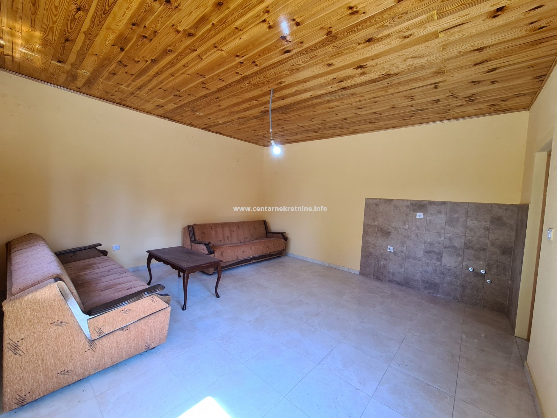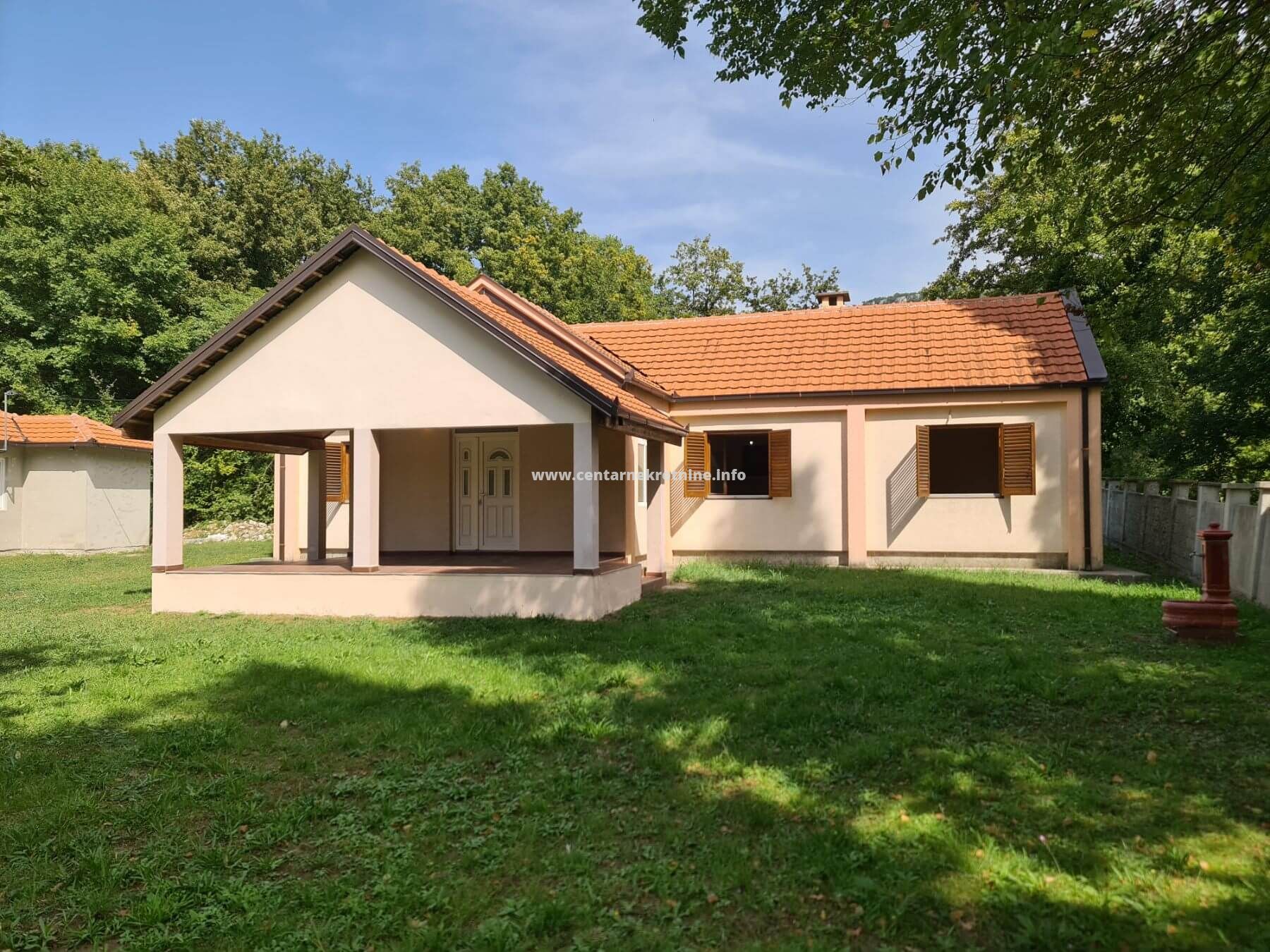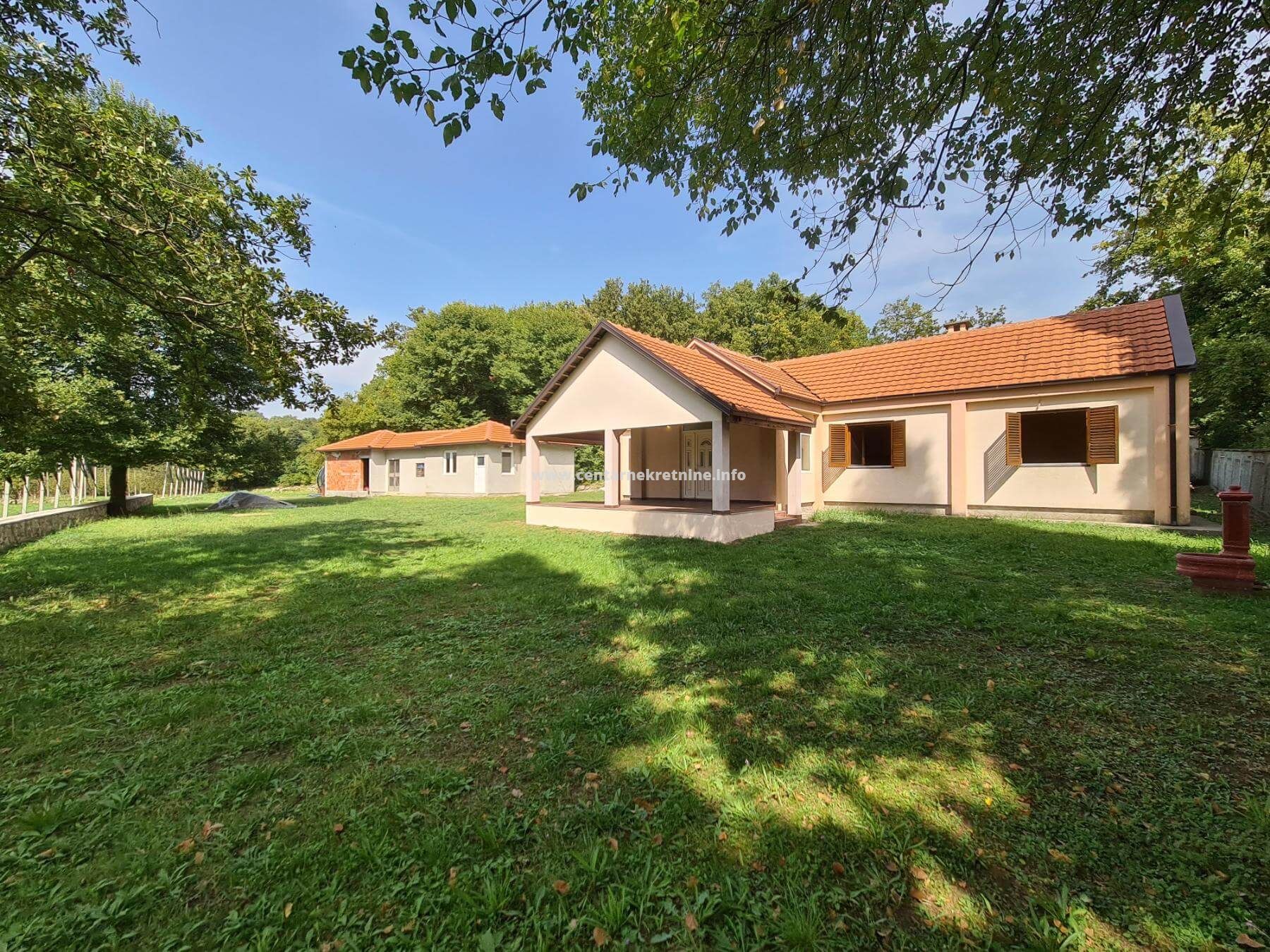Prodaje se odlicna, nova prizemna kuca povrsine 90m2, sa pomocnim objektima povrsine 80m2, na prostranom imanju od ukupno 11.000m2. Na kuci je urađena demit fasada, ima veliku terasu od 20m2 i strukture je dvosobnog stana. Jedan od pomocnih objekata sređen je kao garsonjera. Na imanju se nalazi vocnjak sa sadnicama visnje, sljive, kajsije i nektarine, kao i 2000m2 sume.