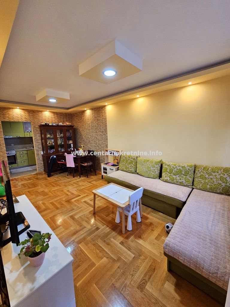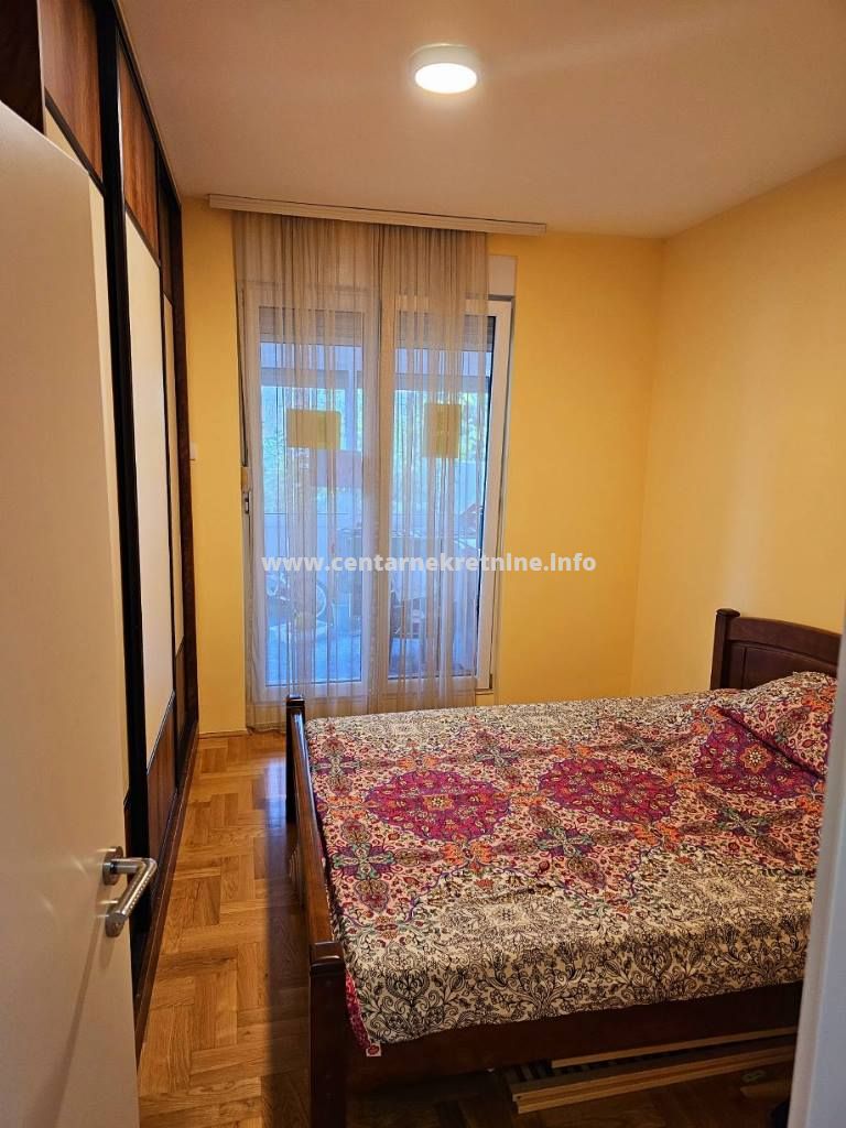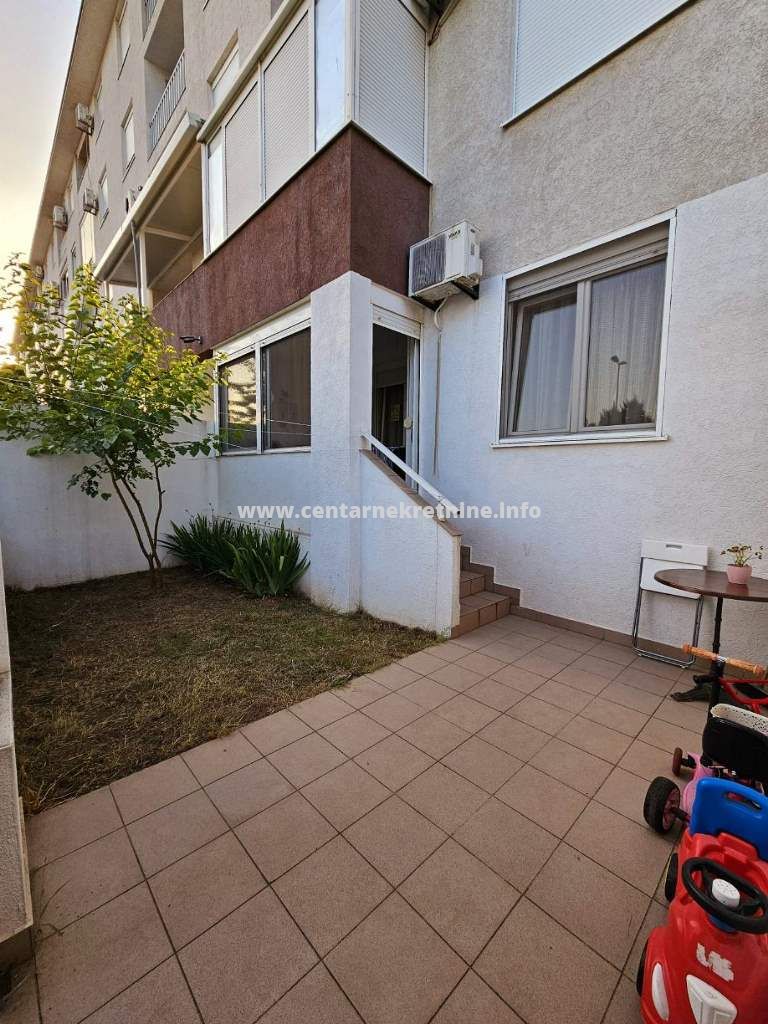 Izdaje se veoma prostran, lijepo namjesten jednosoban stan u novijoj zgradi na Tuskom putu, povrsine 58m2, na visokom prizemlju, sa ograđenim dvoristem povrsine 26m2. Stan se sastoji od ulaznog hodnika sa plakarom, dnevnog boravka sa trpezarijom, kuhinje, spavace sobe, kupatila i terase.