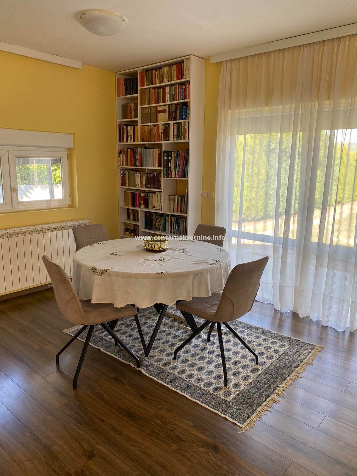ID - 5831Prodaje se lijepa, prostrana kuca u Donjim Kokotima, nedaleko od teniskih terena, povrsine 151m2, na placu od 3000m2. Kuca ima veliku terasu, garazu, ugrađeno je centralno grijanje na pelet, plac je ograđen. U dvoristu kuce je i bazen.