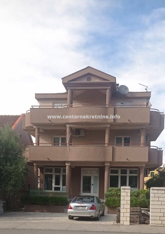 Prodaje se poslovno-stambeni objekat na odlicnoj lokaciji na Starom aerodromu, u neposrednoj blizini Osnovne skole Pavle Rovinski, ukupne povrsine 574m2, na placu od 570m2. Kuca je na 4 nivoa: suteren, visoko prizemlje, prvi i drugi sprat. Suteren povrsine 133m2 i prizemlje od 152m2 su registrovani poslovni prostori. Na prvom spratu je prostrani cetvorosoban stan povrsine 153m2 sa 2 terase, a na drugom spratu je takođe cetvorosoban stan povrsine 136m2 sa velikom terasom. Svi papiri uredni.