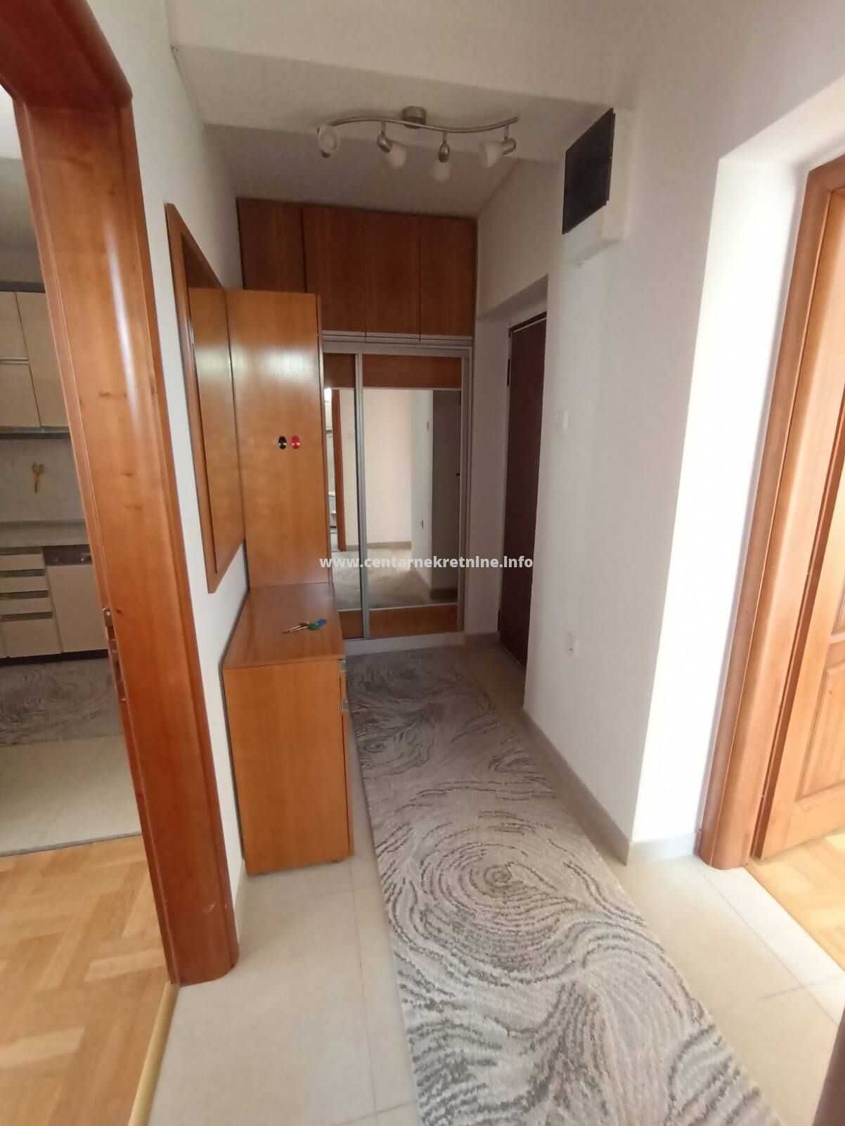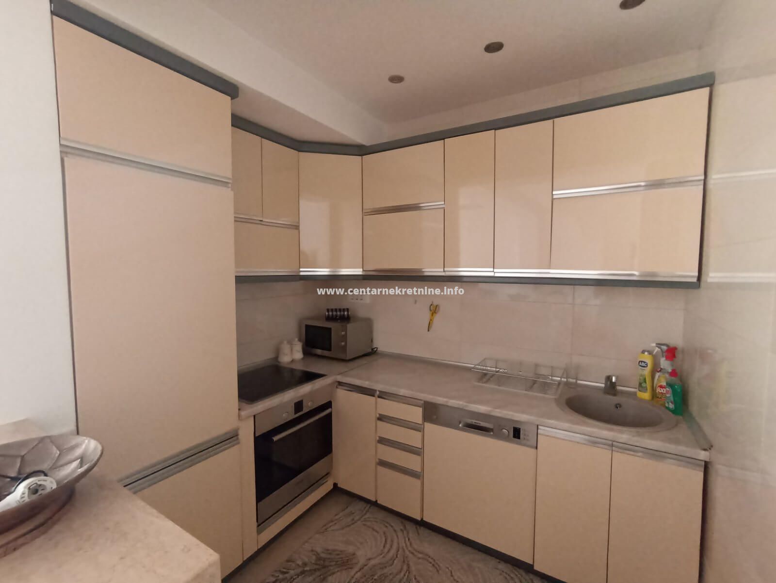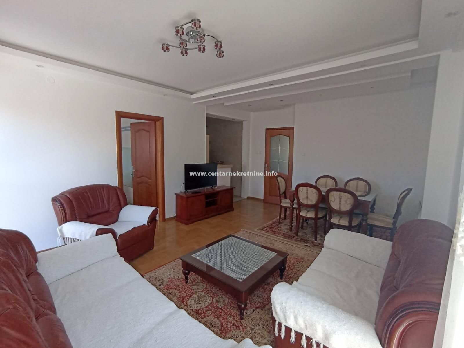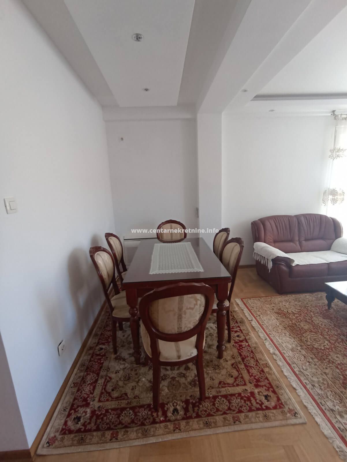 Izdaje se kompletno renoviran, lijepo namjesten dvosoban stan na odlicnoj lokaciji u strogom centru, ulica Miljana Vukova, povrsine 58m2, na II spratu. Stan se sastoji od ulaznog hodnika, prostrane dnevne sobe sa trpezarijom, kuhinje, 2 spavace sobe i kupatila. Orijentacija jugozapad.