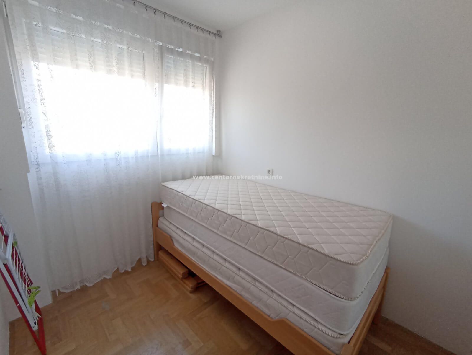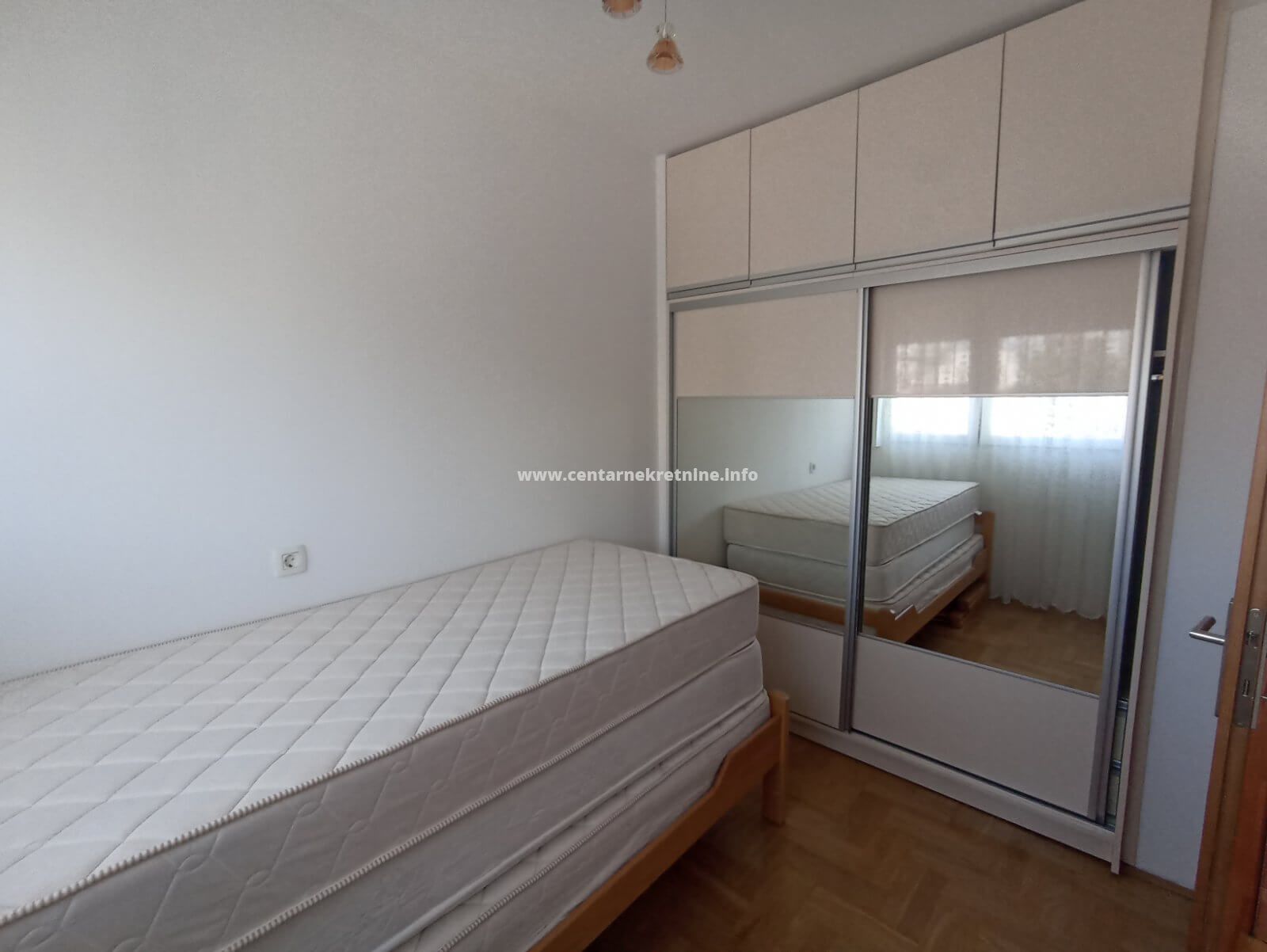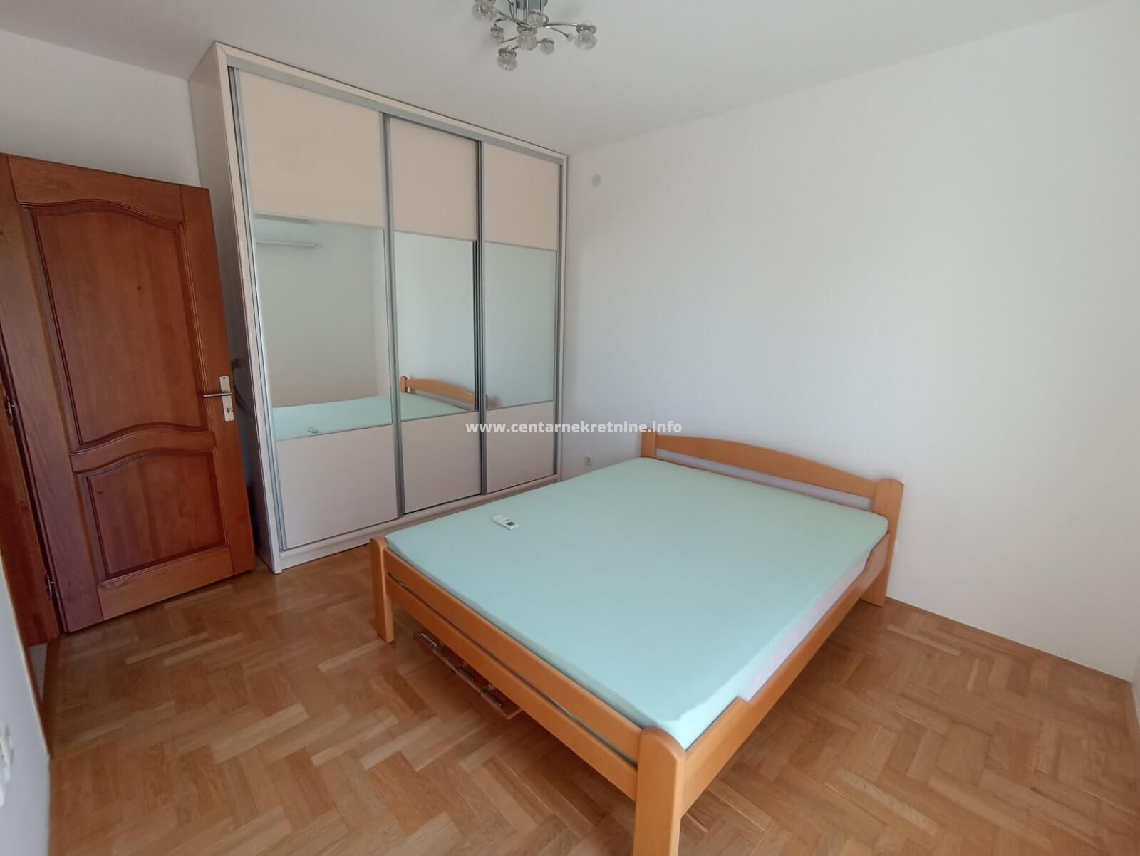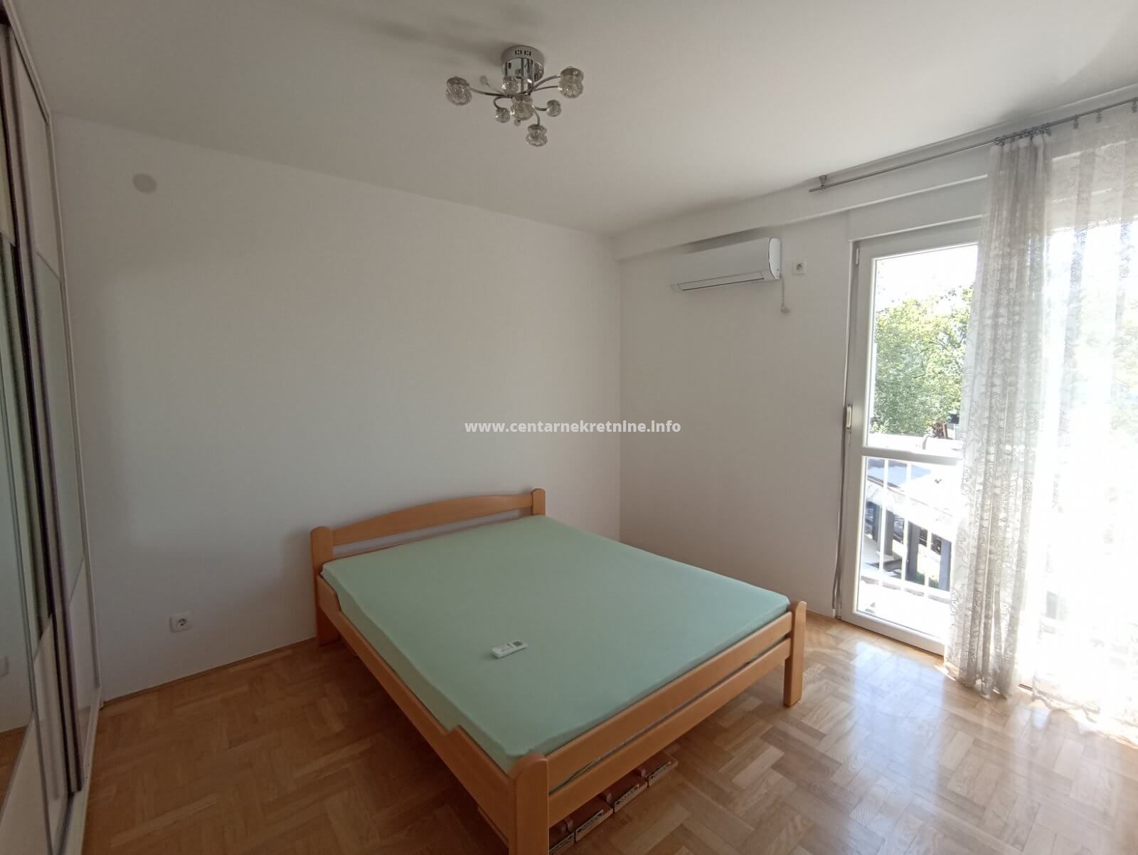 Izdaje se kompletno renoviran, lijepo namjesten dvosoban stan na odlicnoj lokaciji u strogom centru, ulica Miljana Vukova, povrsine 58m2, na II spratu. Stan se sastoji od ulaznog hodnika, prostrane dnevne sobe sa trpezarijom, kuhinje, 2 spavace sobe i kupatila. Orijentacija jugozapad.