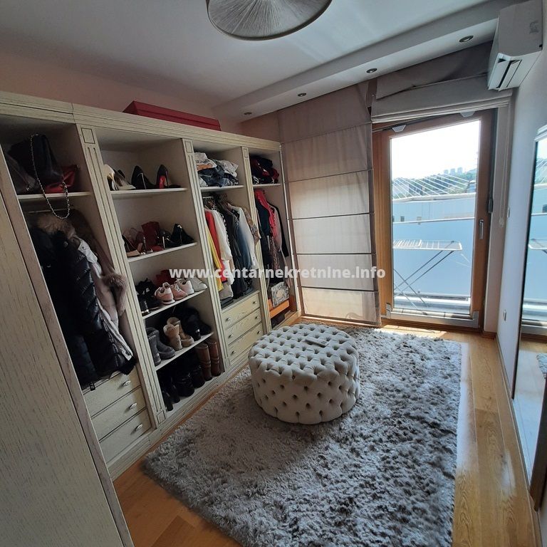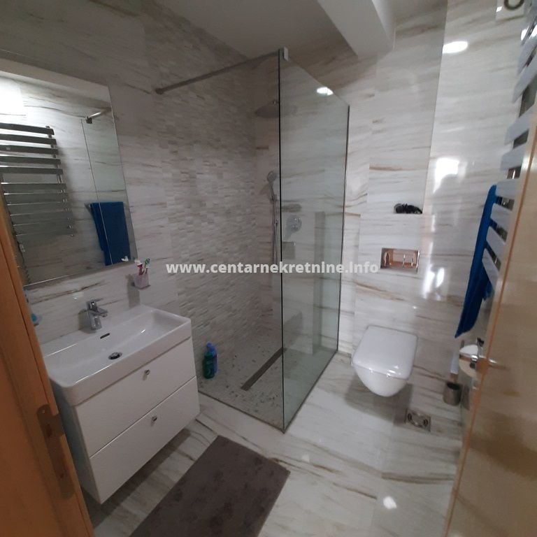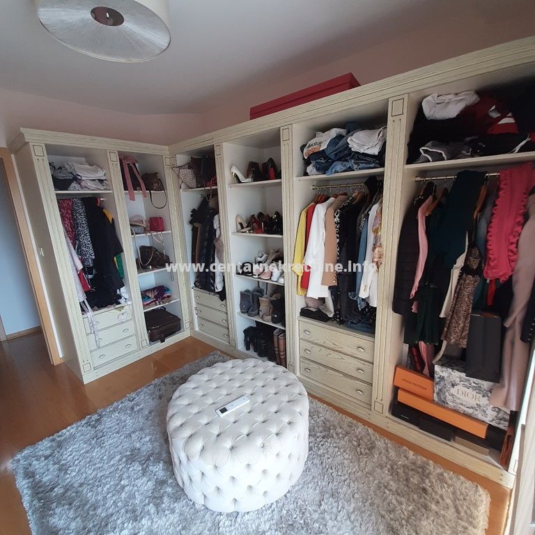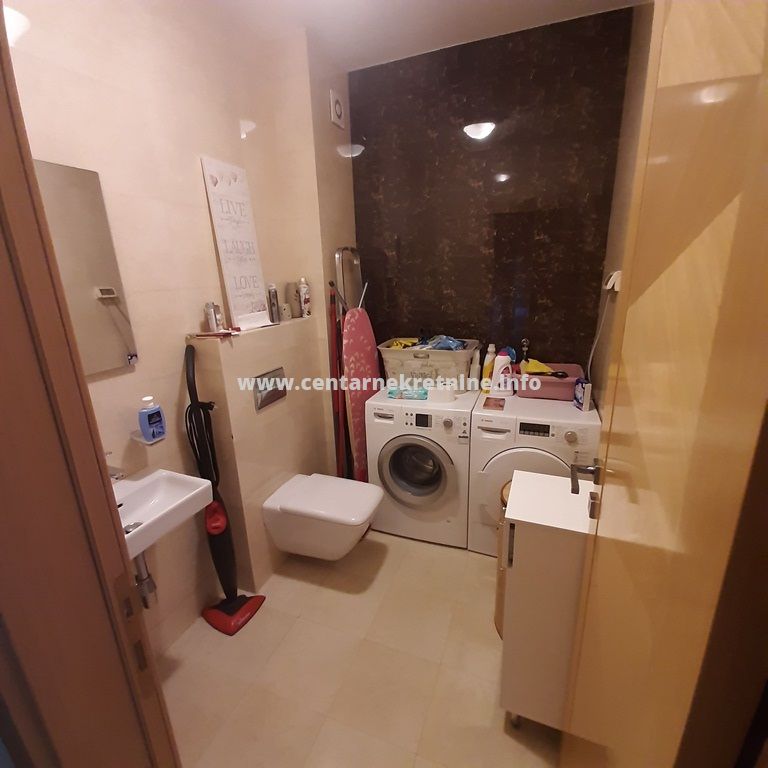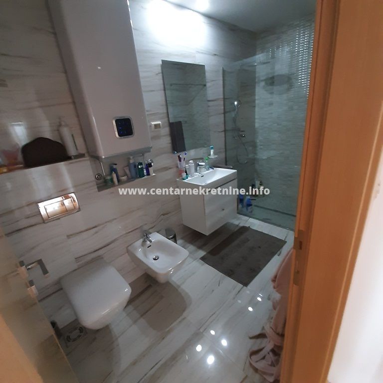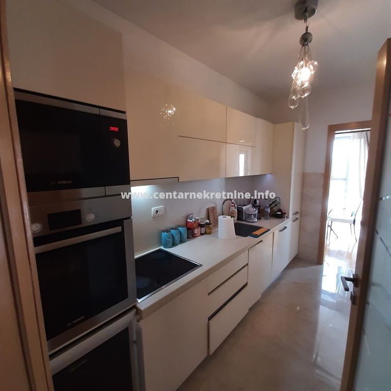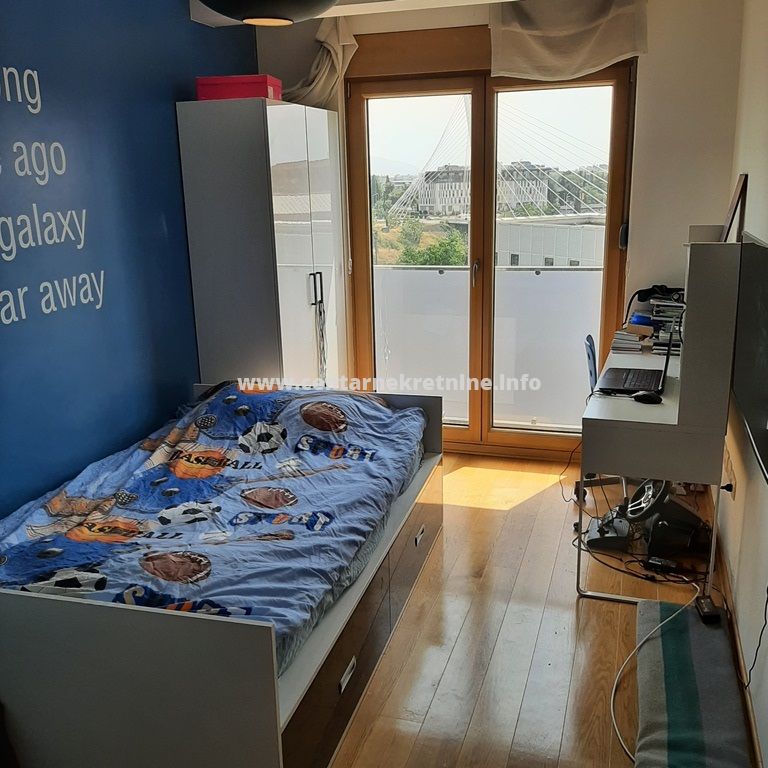 Izdaje se luksuzan, veoma lijepo namjesten trosoban stan na jednoj od najboljih lokacija, u zgradi Zetagradnje kod PC PC Palada. Stan je povrsine 103m2, nalazi se na IV spratu i ima garazno mjesto. Orijentisan je istocno. Stan se sastoji od prostrane dnevne sobe koja ima izlaz na veliku terasu sa lijepim pogledom, trpezarije, kuhinje, velikog hodnika sa plakarima, 3 spavace sobe, 2 manje terase, 2 kupatila i toaleta.