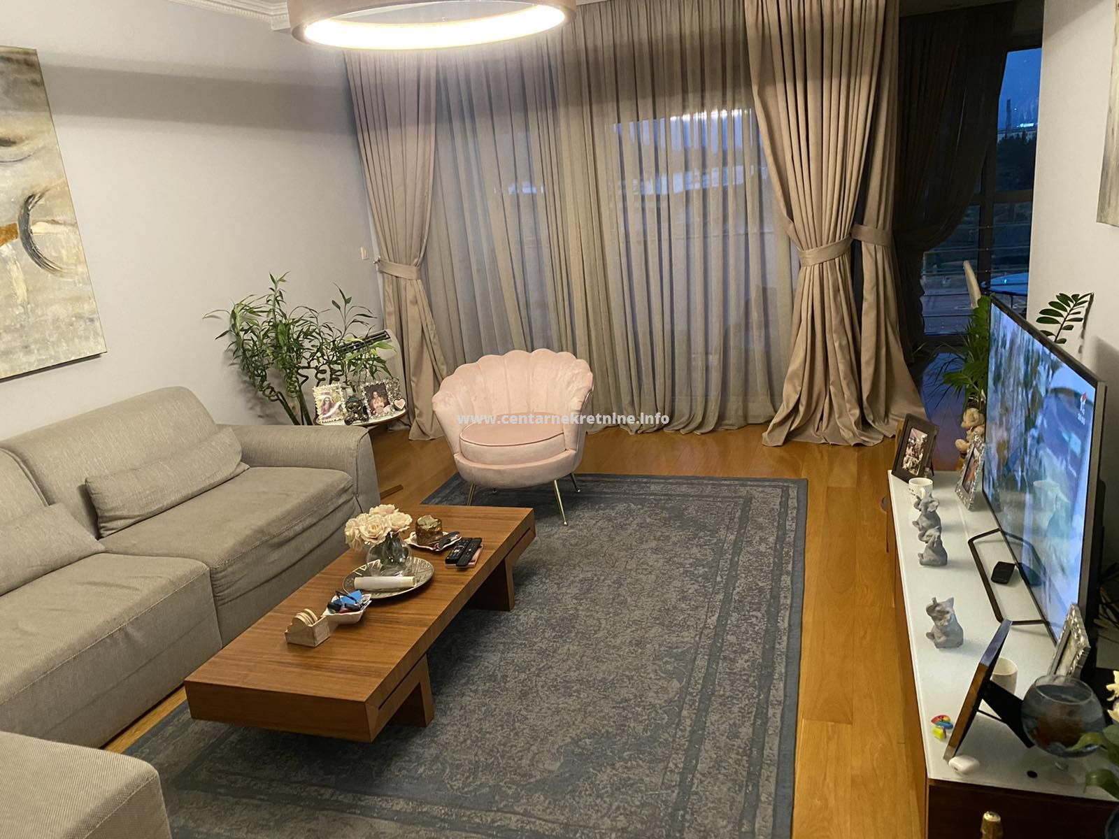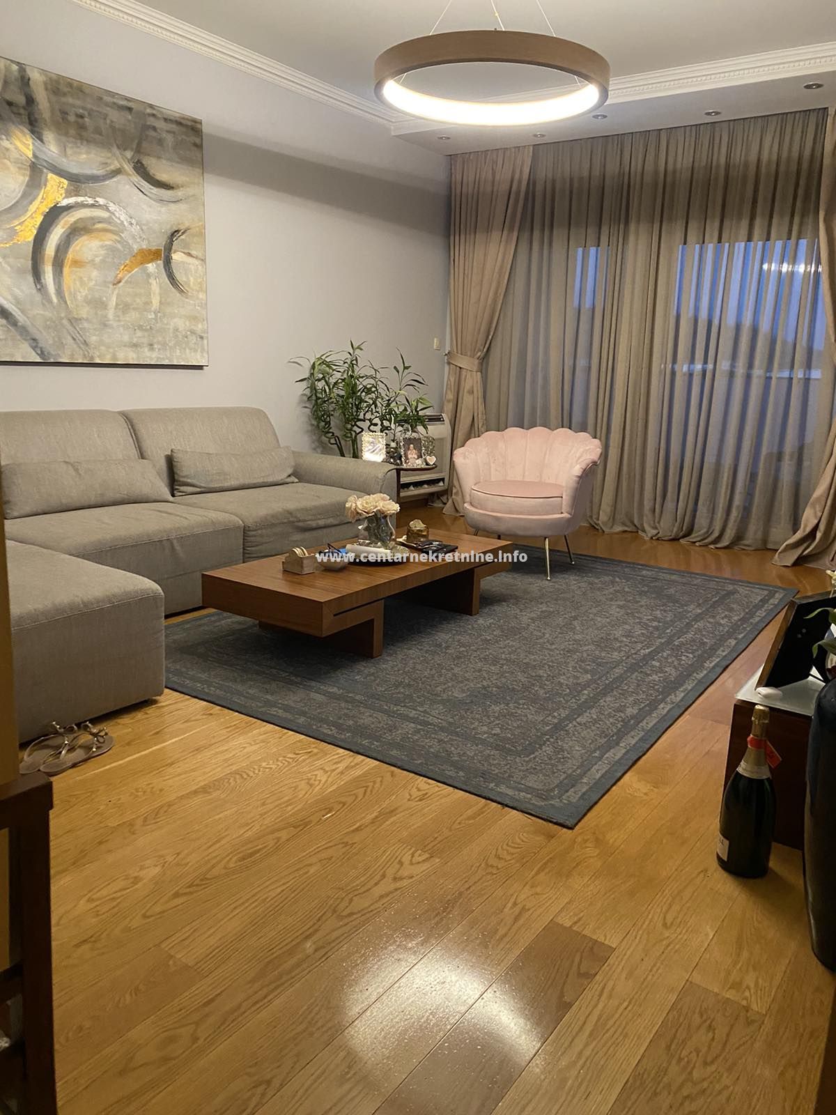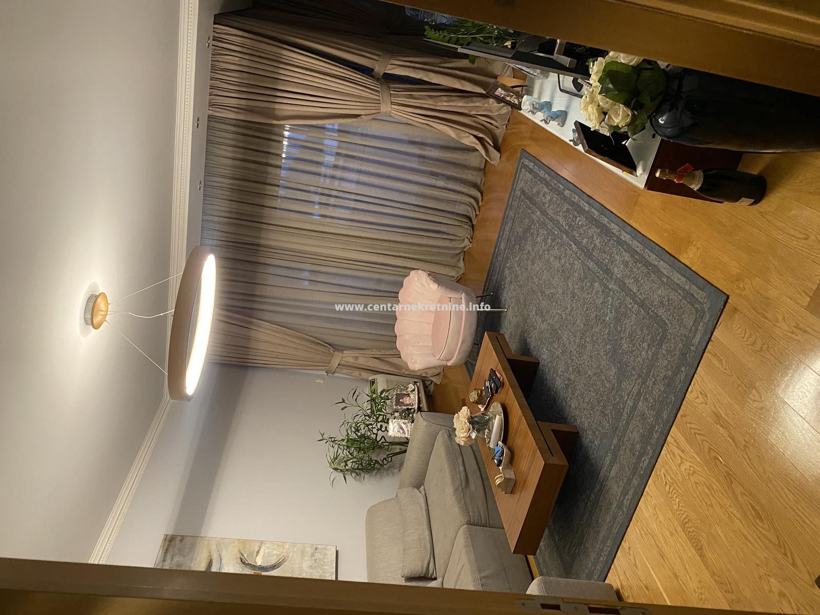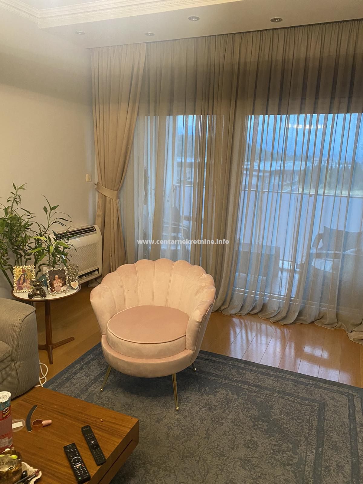 Izdaje se luksuzan, veoma lijepo namjesten trosoban stan na jednoj od najboljih lokacija, u zgradi Zetagradnje kod PC PC Palada. Stan je povrsine 103m2, nalazi se na IV spratu i ima garazno mjesto. Orijentisan je istocno. Stan se sastoji od prostrane dnevne sobe koja ima izlaz na veliku terasu sa lijepim pogledom, trpezarije, kuhinje, velikog hodnika sa plakarima, 3 spavace sobe, 2 manje terase, 2 kupatila i toaleta.