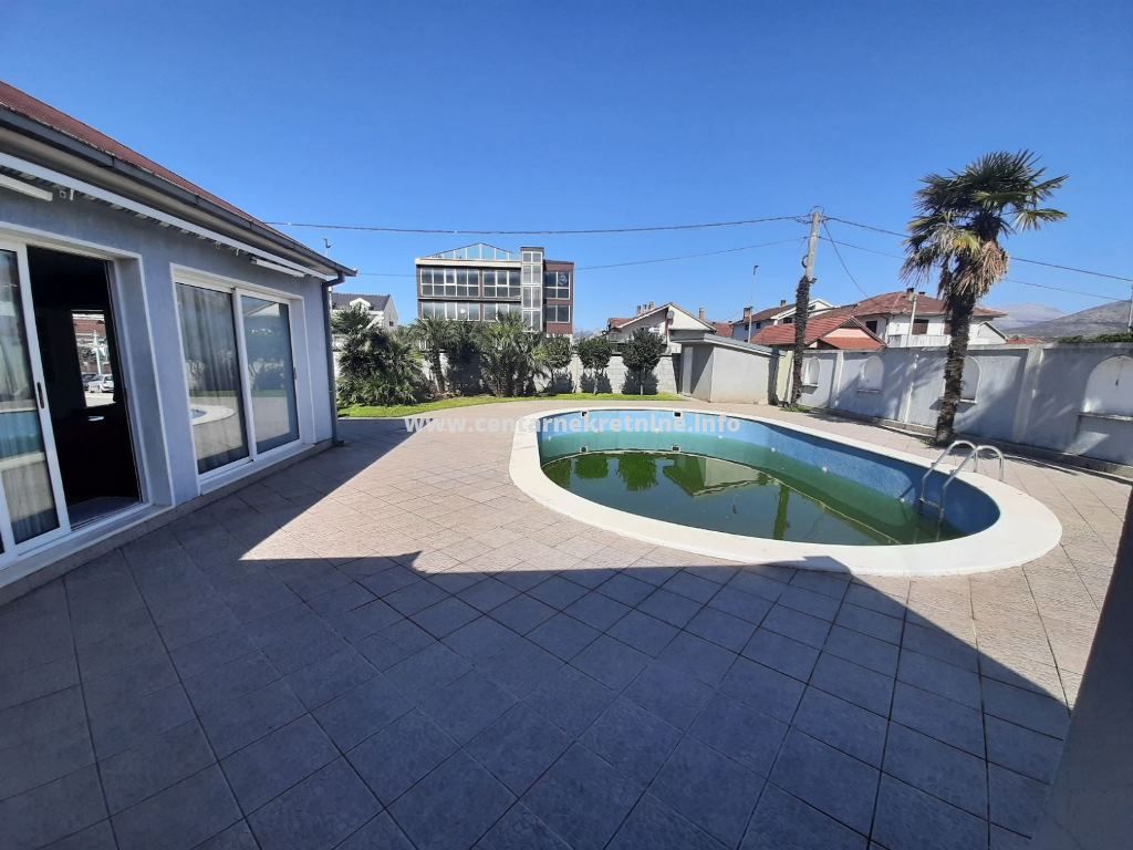 Izdaje se lijepa kuća 150m2, na placu od 800m, na odličnoj lokaciji u Zagoriču. Kuća posjeduje šest soba, tri kuhinje, tri kupatila. Može se organizovati kao jedan stan ili kao tri odvojena. Dvorište je kultivisano, posjeduje veliki lijepi bazen. Izdaje se potpuno namještena.