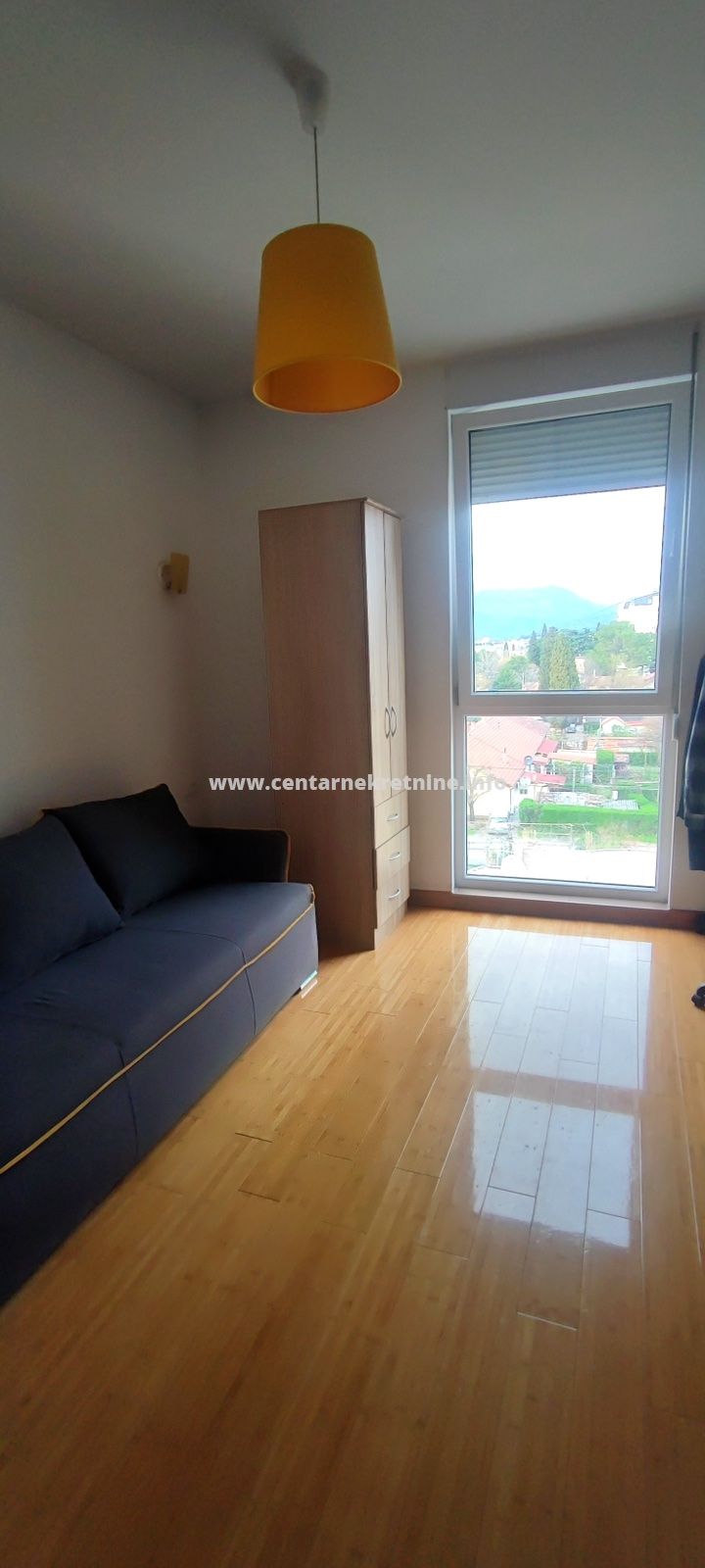 Izdaje se kompletno namjesten dvosoban stan na lijepoj lokaciji u ulici Kralja Nikole, nedaleko od Trgovinske skole, povrsine 64m2, na IV spratu. Stan se sastoji od ulaznog hodnika, dnevne sobe sa trpezarijom i kuhinjom, 2 spavace sobe, kupatila, toaleta i terase.