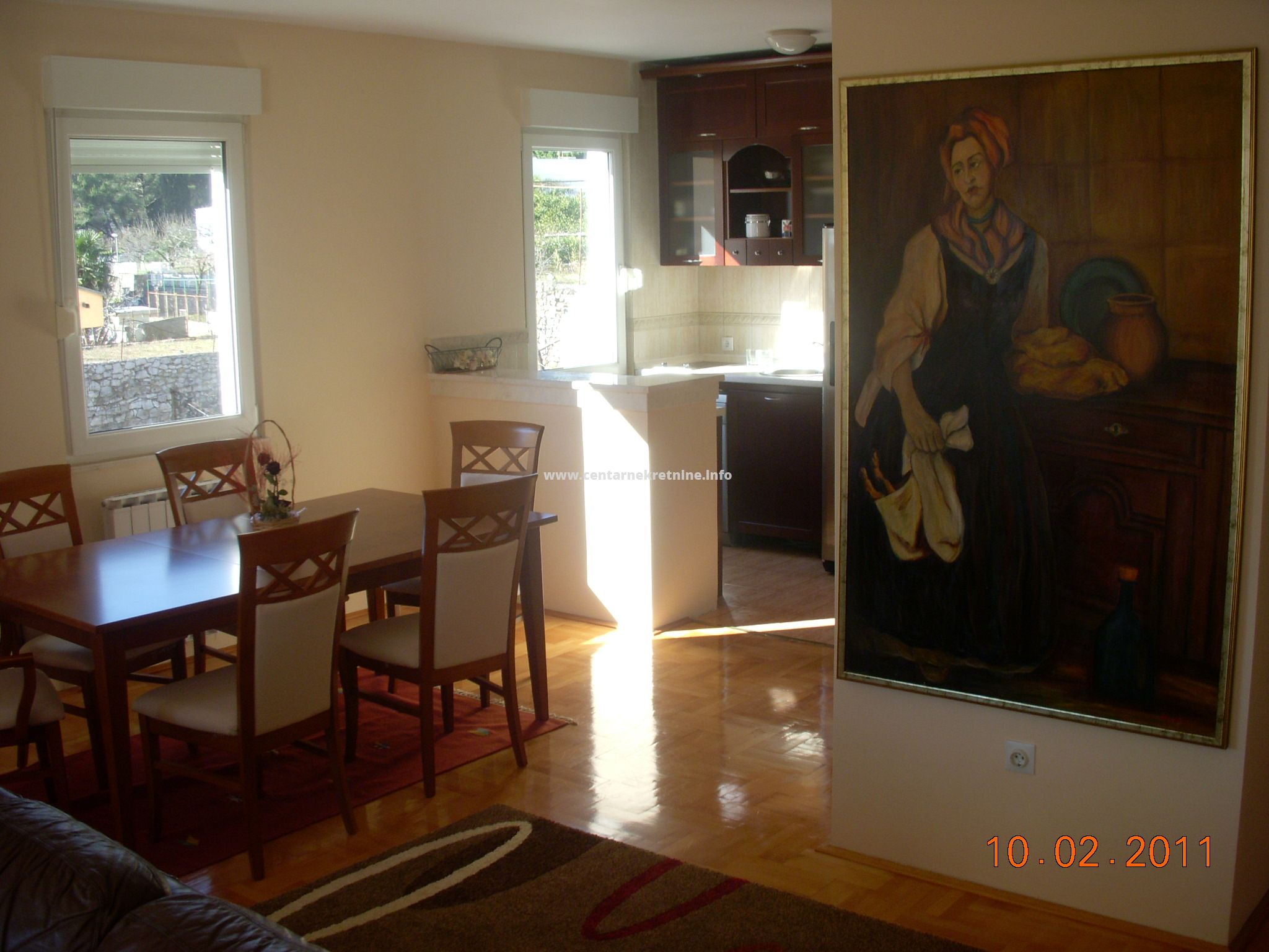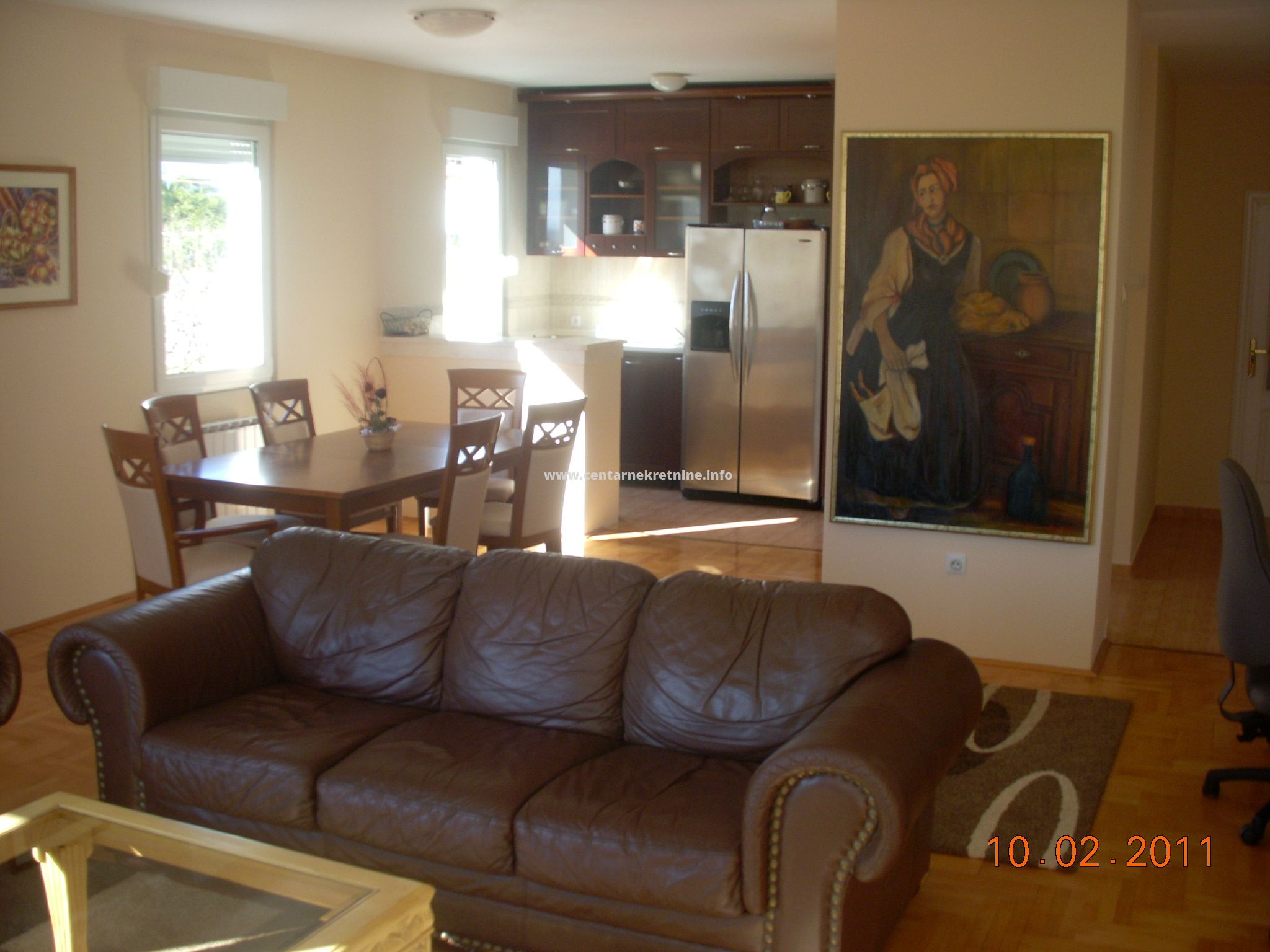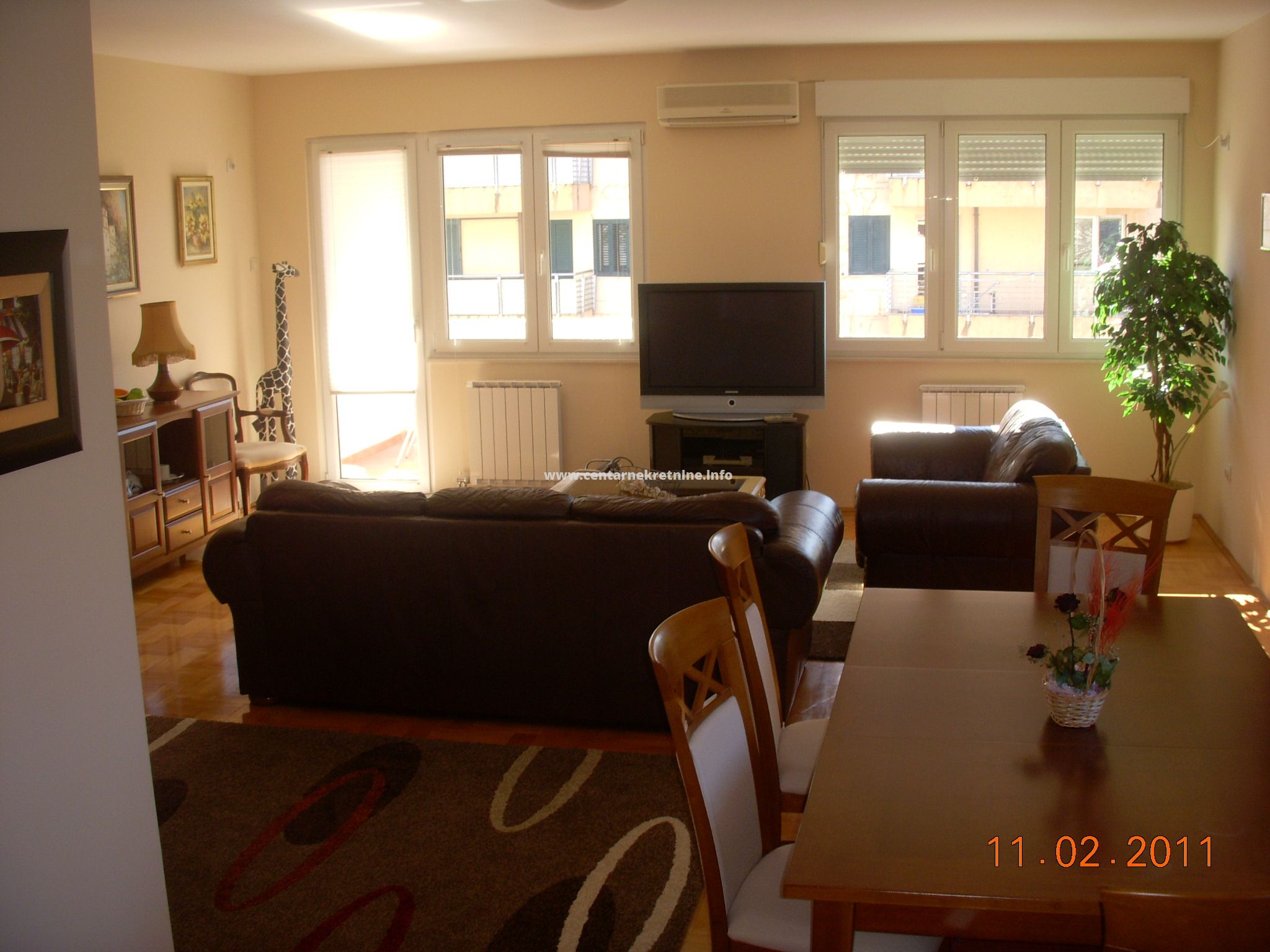 Izdaje se komforan, veoma lijepo namjesten trosoban stan povrsine 115m2, na II spratu. Nalazi se na lijepoj, mirnoj lokaciji u naselju Gorica C, u Ulcinjskoj ulici u neposrednoj blizini ambasade Velike Britanije. Stan se sastoji od dnevnog boravka, trpezarije, kuhinje, 3 spavace sobe, 2 kupatila i 2 terase. Orjentisan na tri strane.