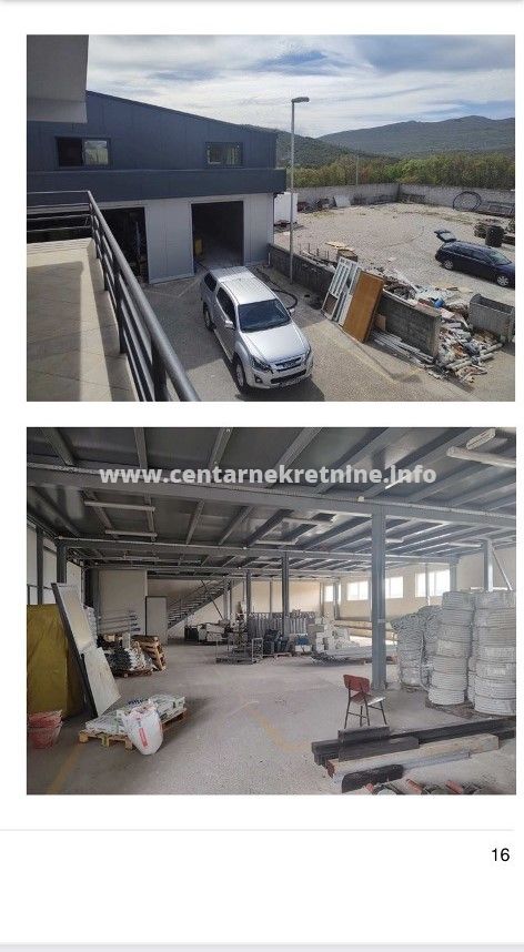 Izdaje se magacinski prostor neto korisne povrsine 984m2, na dva nivoa po 492m2, na 1500m2 placa. Objekat je nedavno potpuno rekonstruisan i podijeljen je na dvije etaze - prizemlje i sprat, koje su povezane unutrasnjim stepenicama i teretnim liftom. Visina objekta na prizemlju je 3m, dok je na spratu visina 2m. Prizemlje ima dva ulaza sa visokim rolo vratima. Objekat je metalne konstrukcije sistema skela od metalnih stubova i greda. Međuspratna konstrukcija, kao i krovna konstrukcija su metalne. Fasada objekta je u termoizolacionim panelima-sendvic lim. Krov je oblozen termoizolacionim panelima. Podovi na prizemlju su u feribetonu, a na spratu su metalni. Spoljasnja bravarija je PVC. Objekat je opremljen svim potrebnim instalacijama, vodovodne, kanalizacione, elektro i TK mreze.
