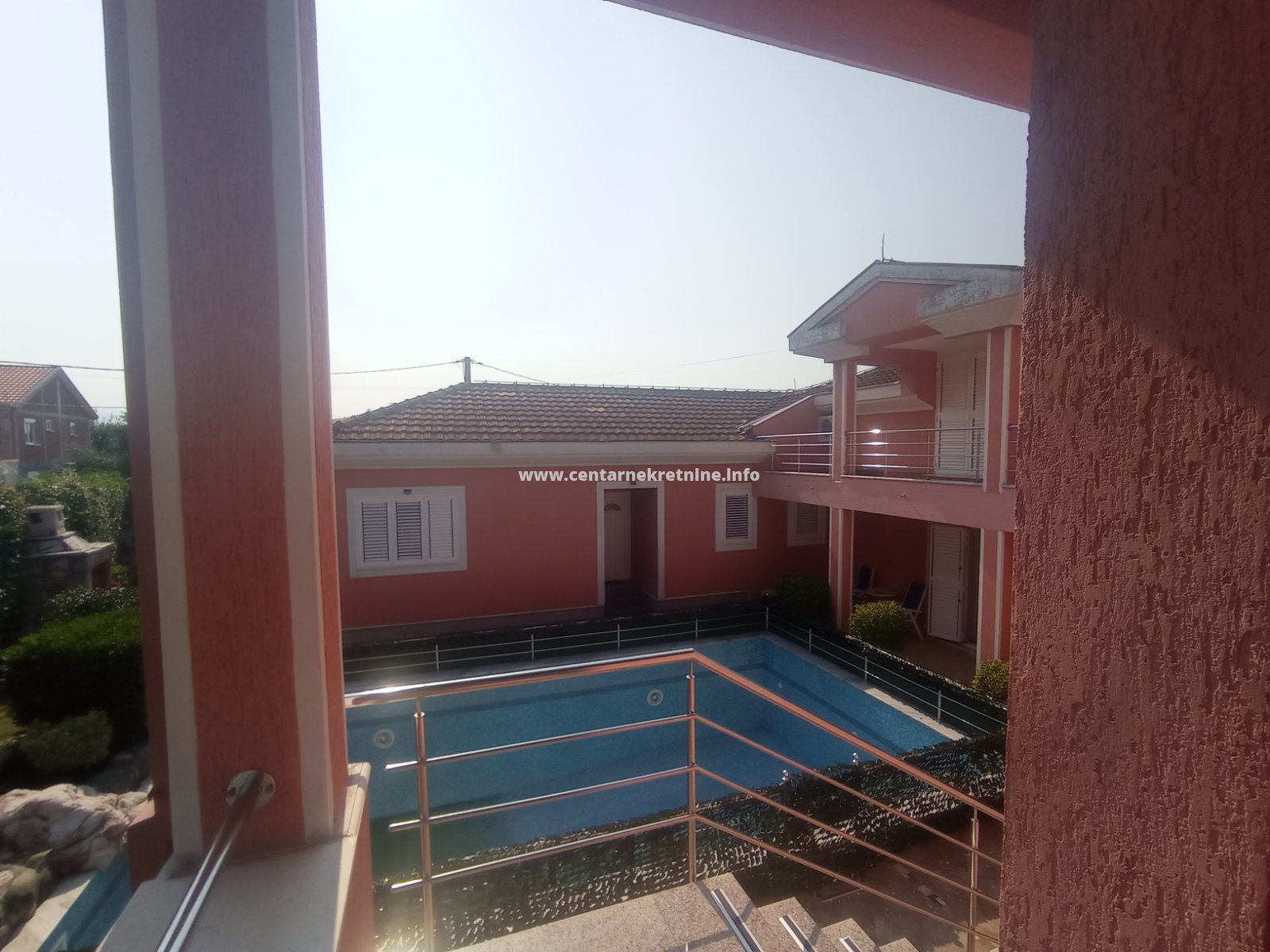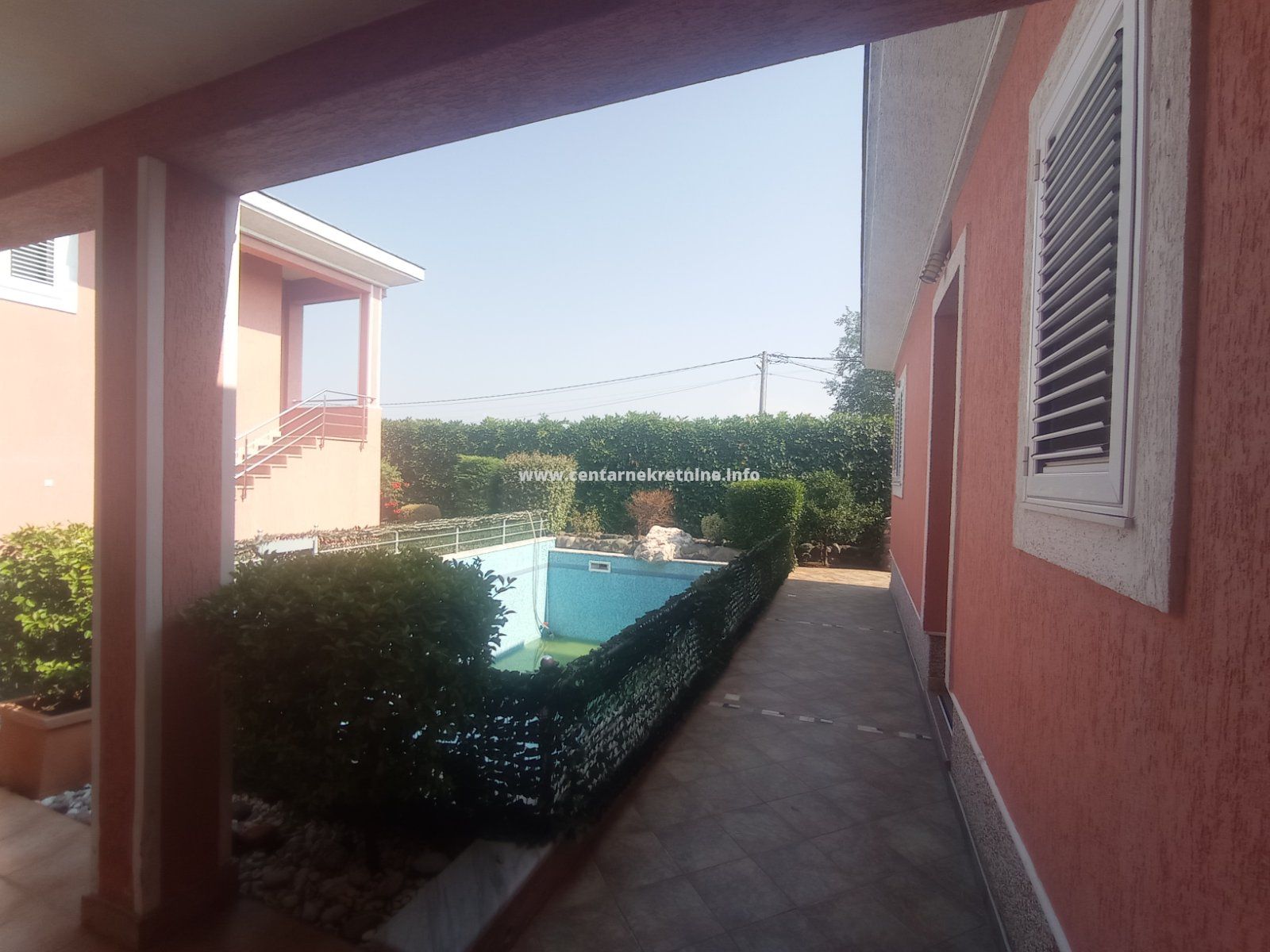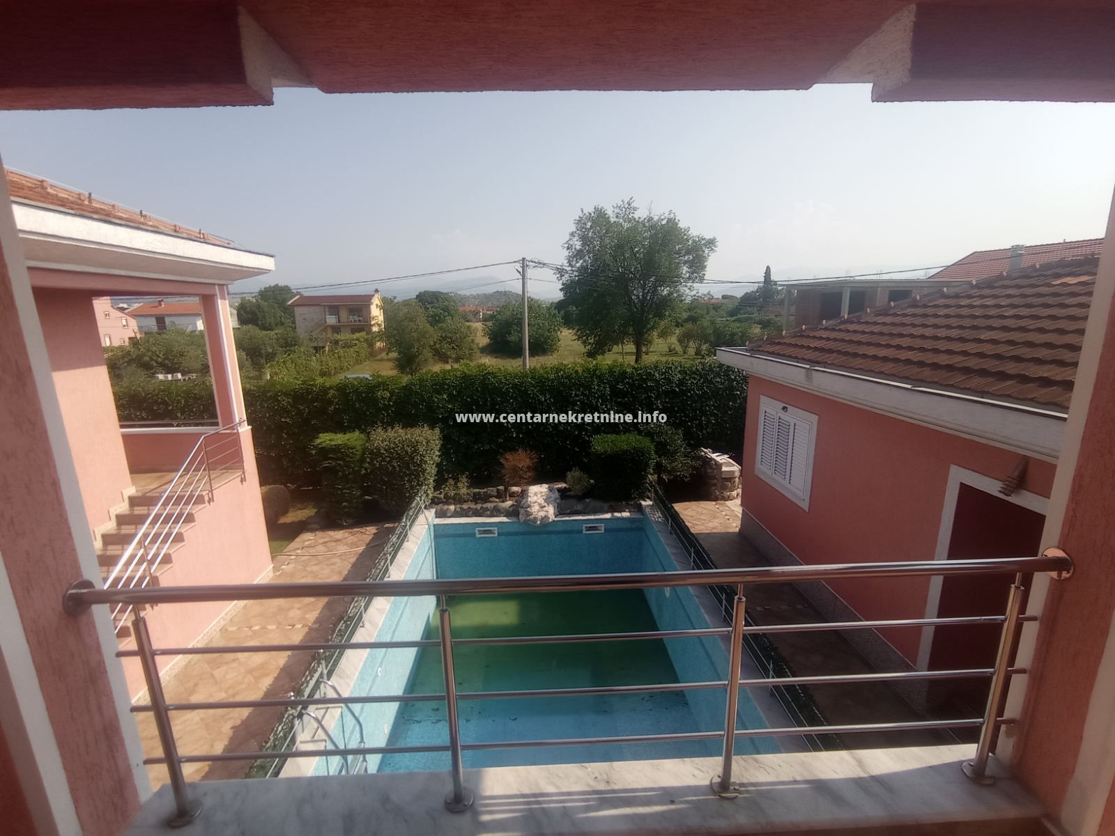 Prodaje se prostrana, lijepa kuca u Donjoj Gorici, nedaleko od salona namjestaja Grand. Kuca je povrsine 400m2, na placu od 2.200m2. U lijepom, uređenom dvoristu kuce nalazi se i bazen. Kuca ima 3 prostrane terase, galeriju od 50m2, garazu od 40m2 i podrum od 60m2. Ima centralno grijanje na drva i na struju.