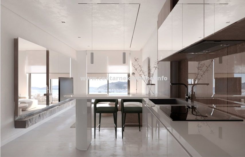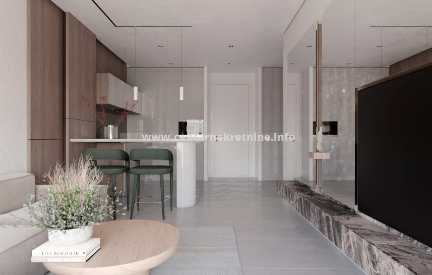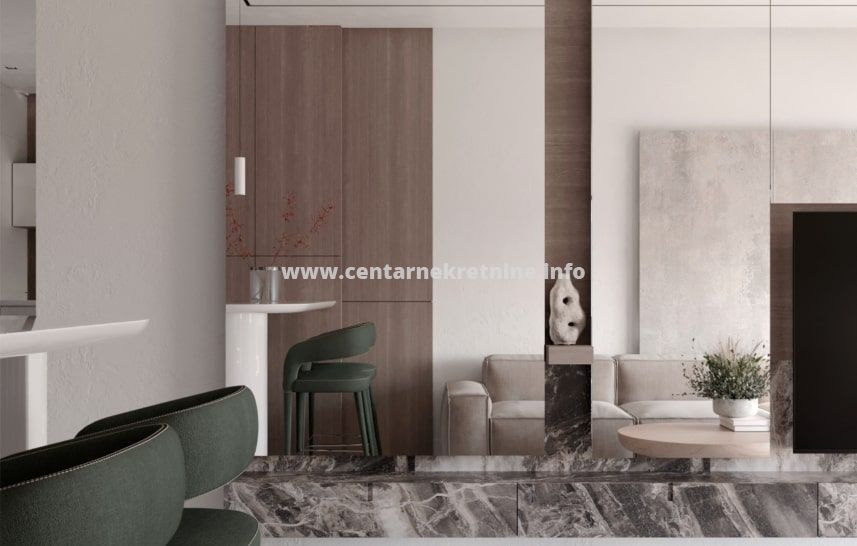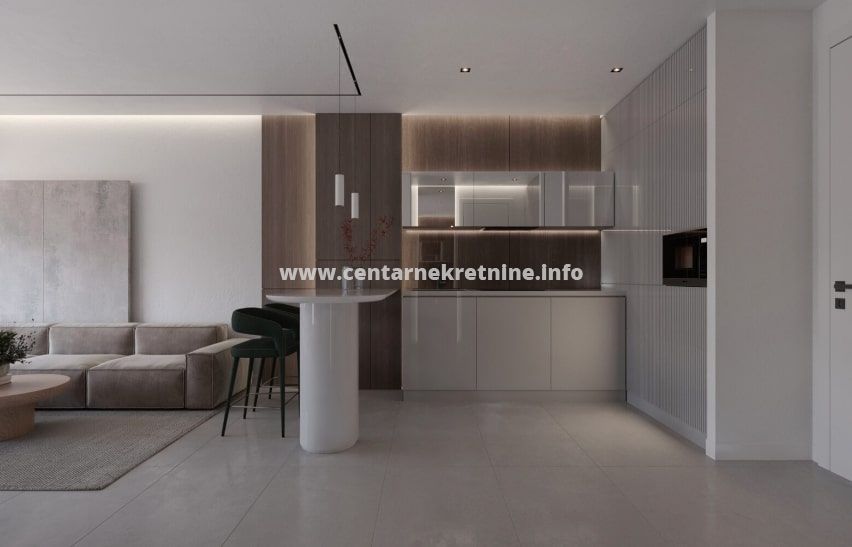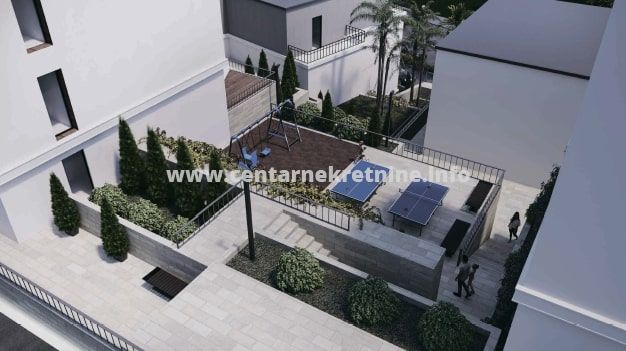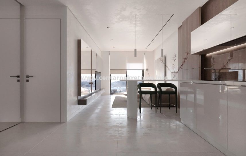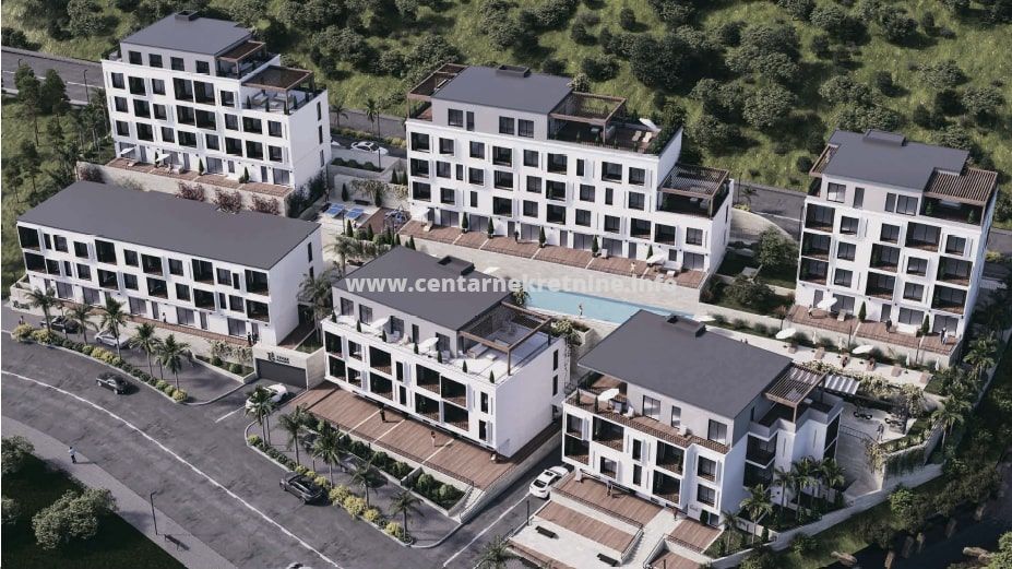 Prodaju se dvosobni stanovi u kompleksu u izgradnji u Tivtu, nedaleko od Porto Montenegra, oko 700m udaljeno od mora. Kompleks ima 5.500m2 infrastrukture koja ukljucuje parking, teretanu, saunu, SPA, grijani bazen od 21m, mini-bioskop, zatim restoran/kafe, prostor za rostilj sa pergolama, 24h uslugu konsijerza, video nadzor i bezbjedonosni sistem. Sve stambene jedinice bice kompletno namjestene, opremljene svim potrebnim kucnim aparatima, najkvalitetnijim sanitarijama, uz ugrađen Smart Home sistem i WindFree Samsung klimatizaciju. Ulazna vrata imace kombinovanu bravu za kartice/kljuceve/otiske prstiju, obezbijeđen je pristup brzom internetu, kao i prostor za skladistenje.