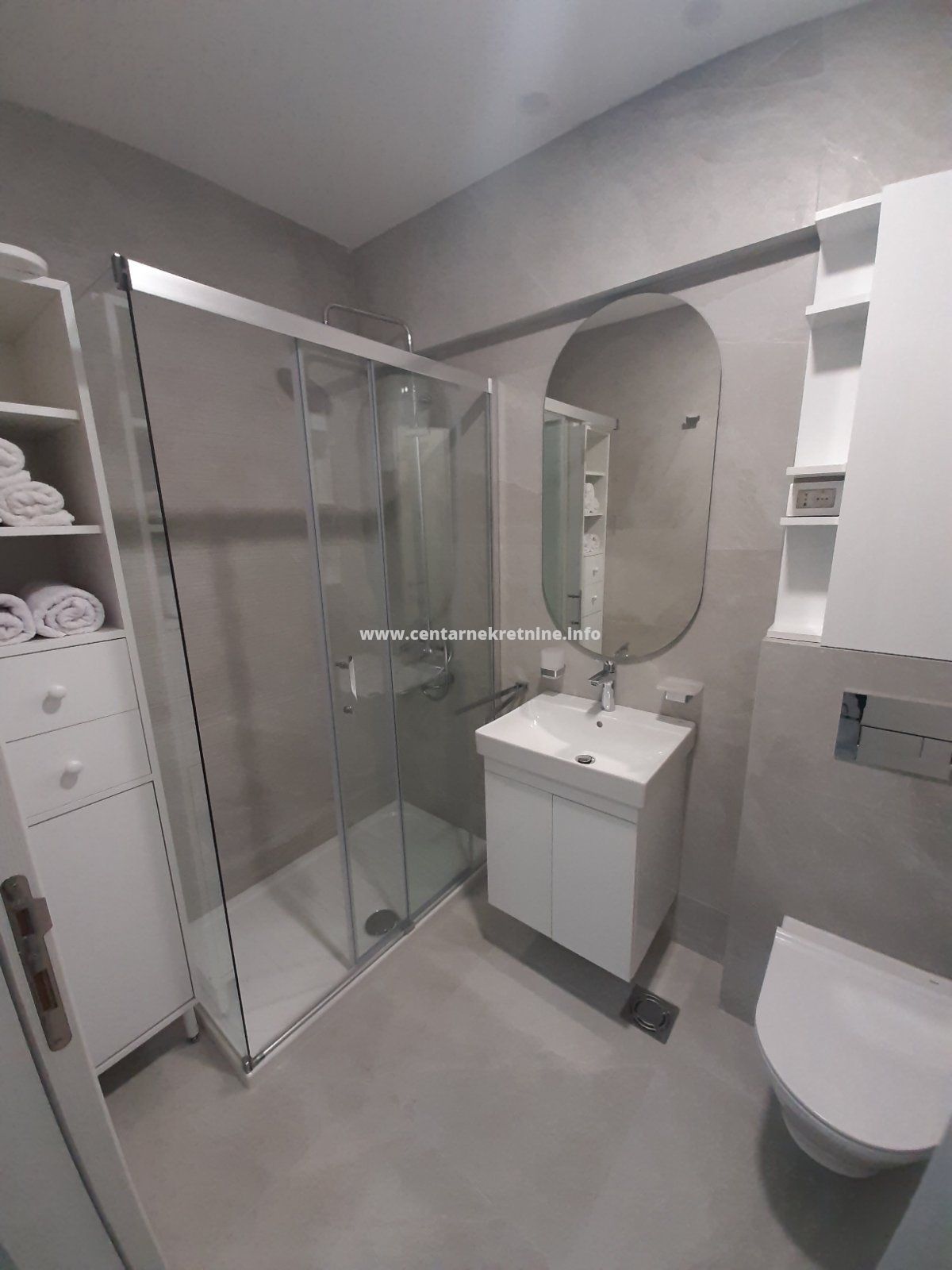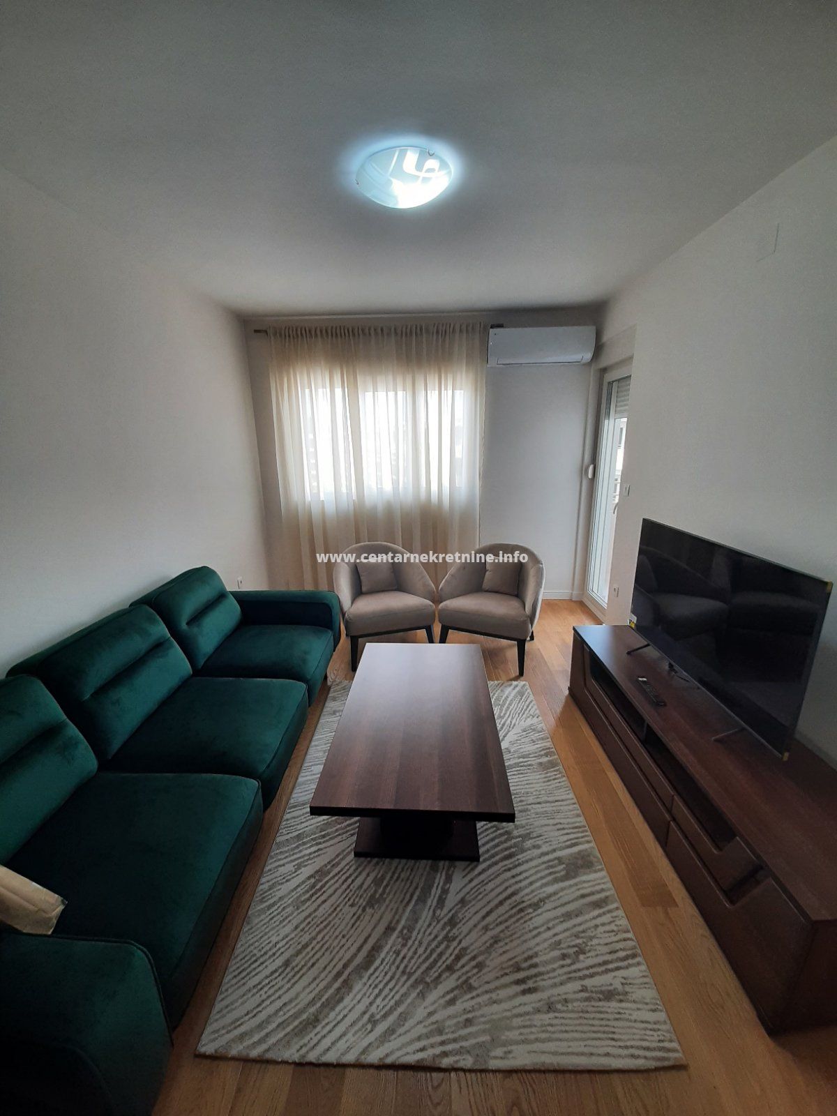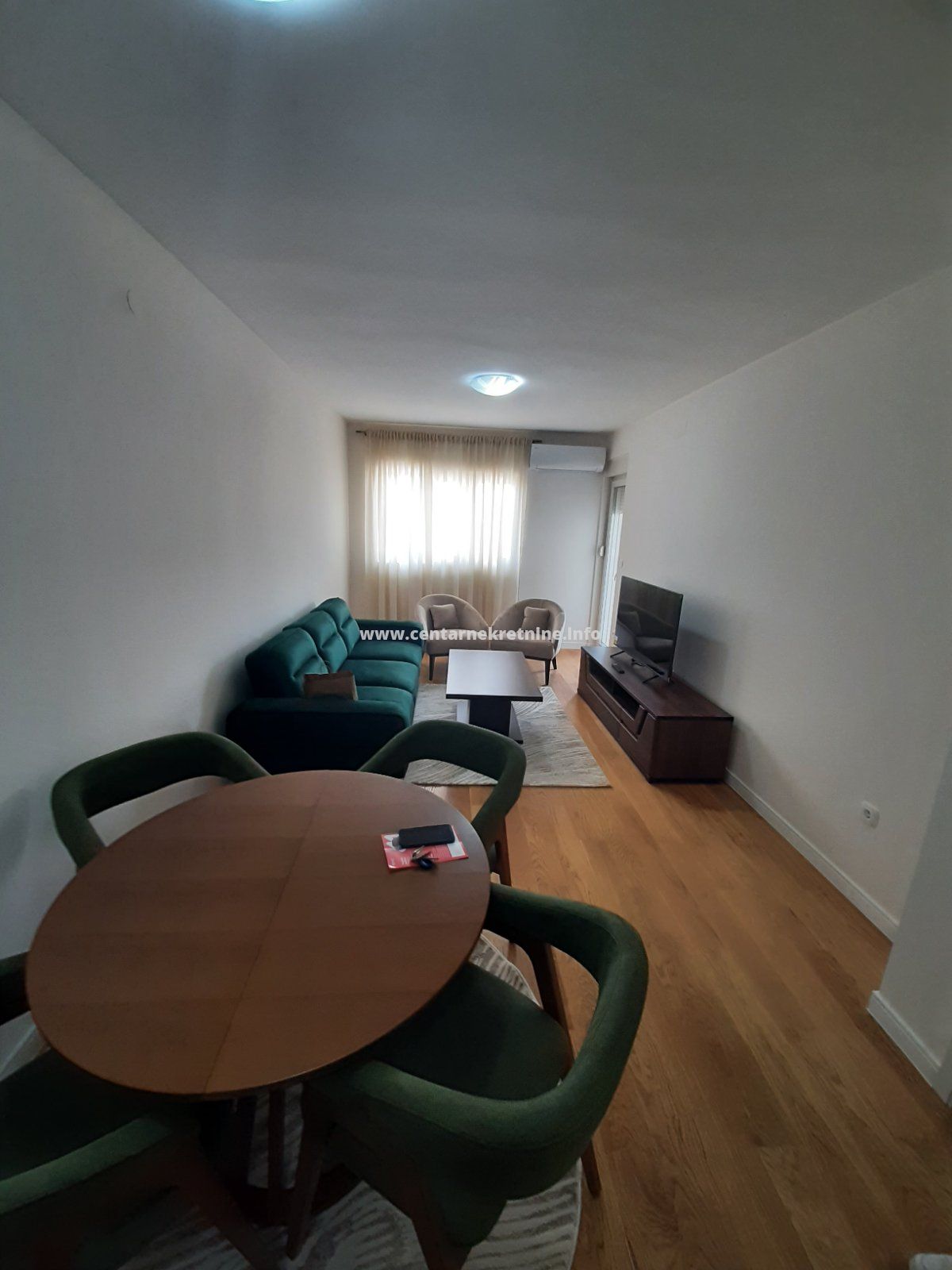 Izdaje se nov, neuseljavan, luksuzan jednosoban stan, povrsine 46m2, na IX spratu u najnovijoj lameli Central Pointa. Stan je kompletno opremljen modernim i kvalitetnim namjestajem. Sastoji se od ulaznog hodnika, dnevne sobe sa kuhinjom i trpezarijom, lijepe terase, spavace sobe i kupatila. Orijentacija zapad.