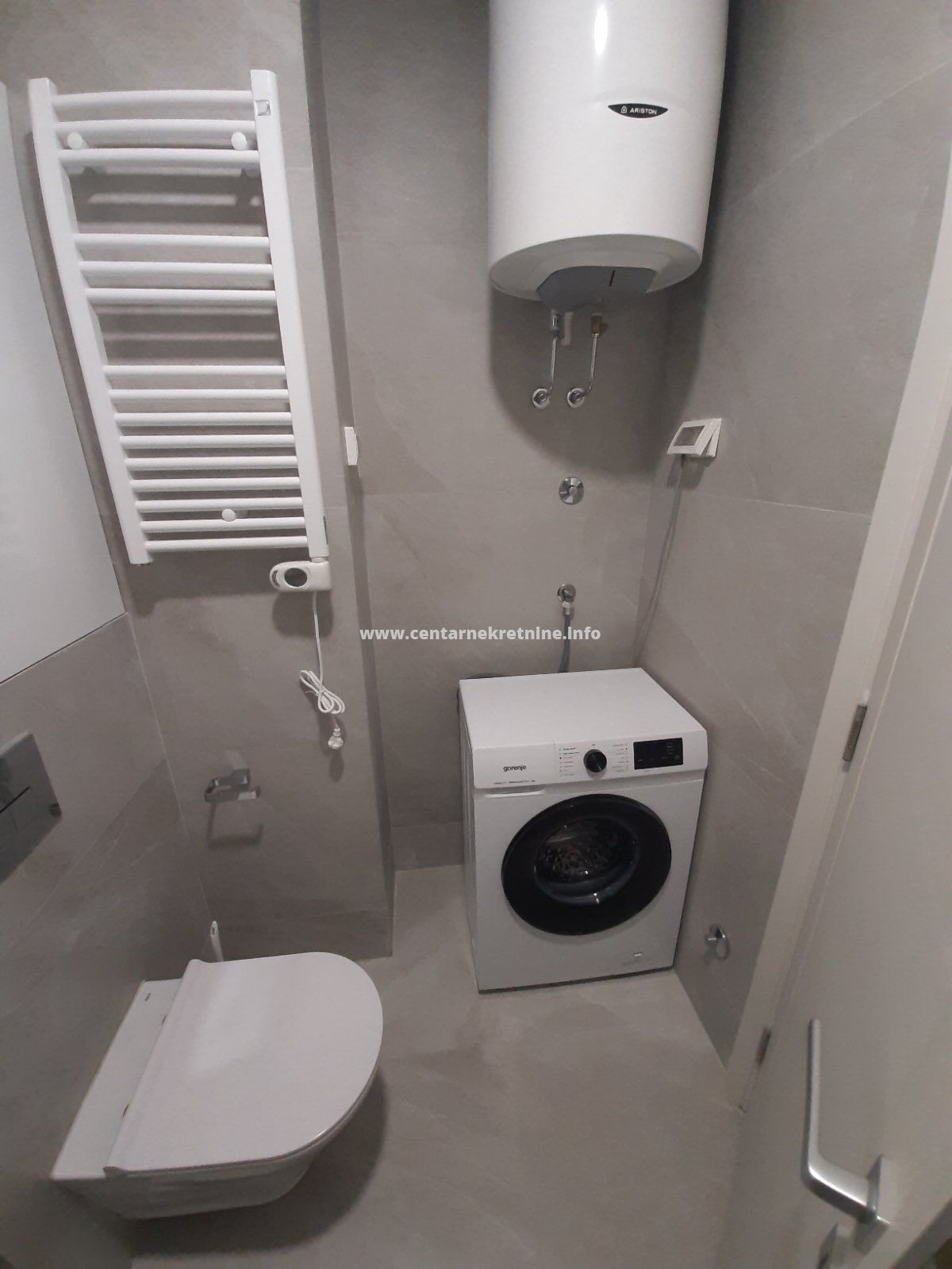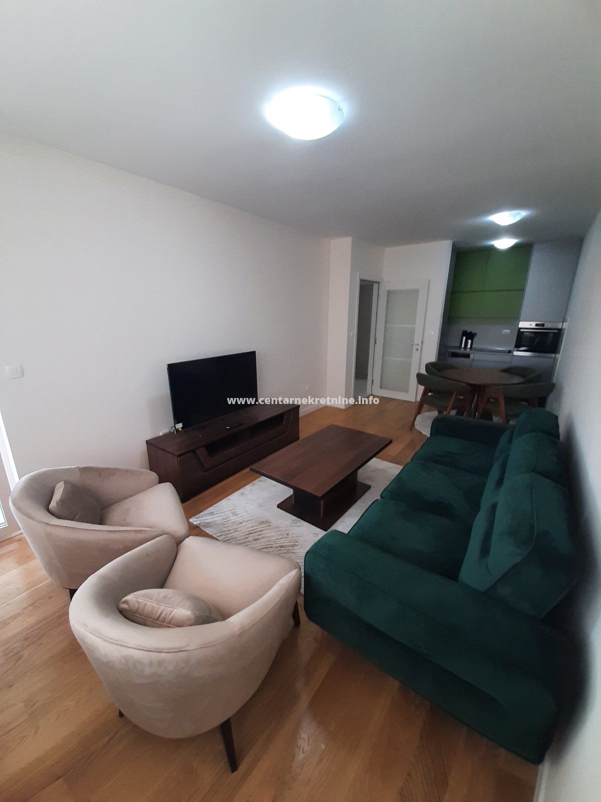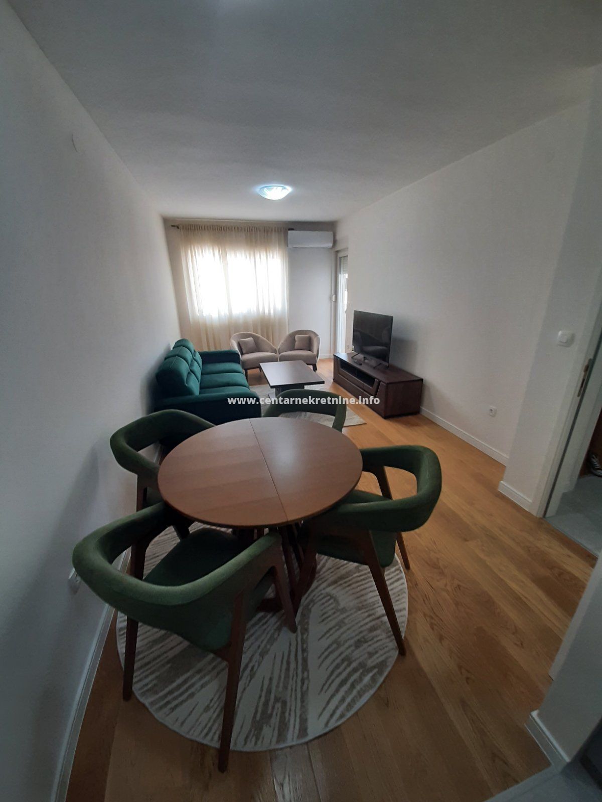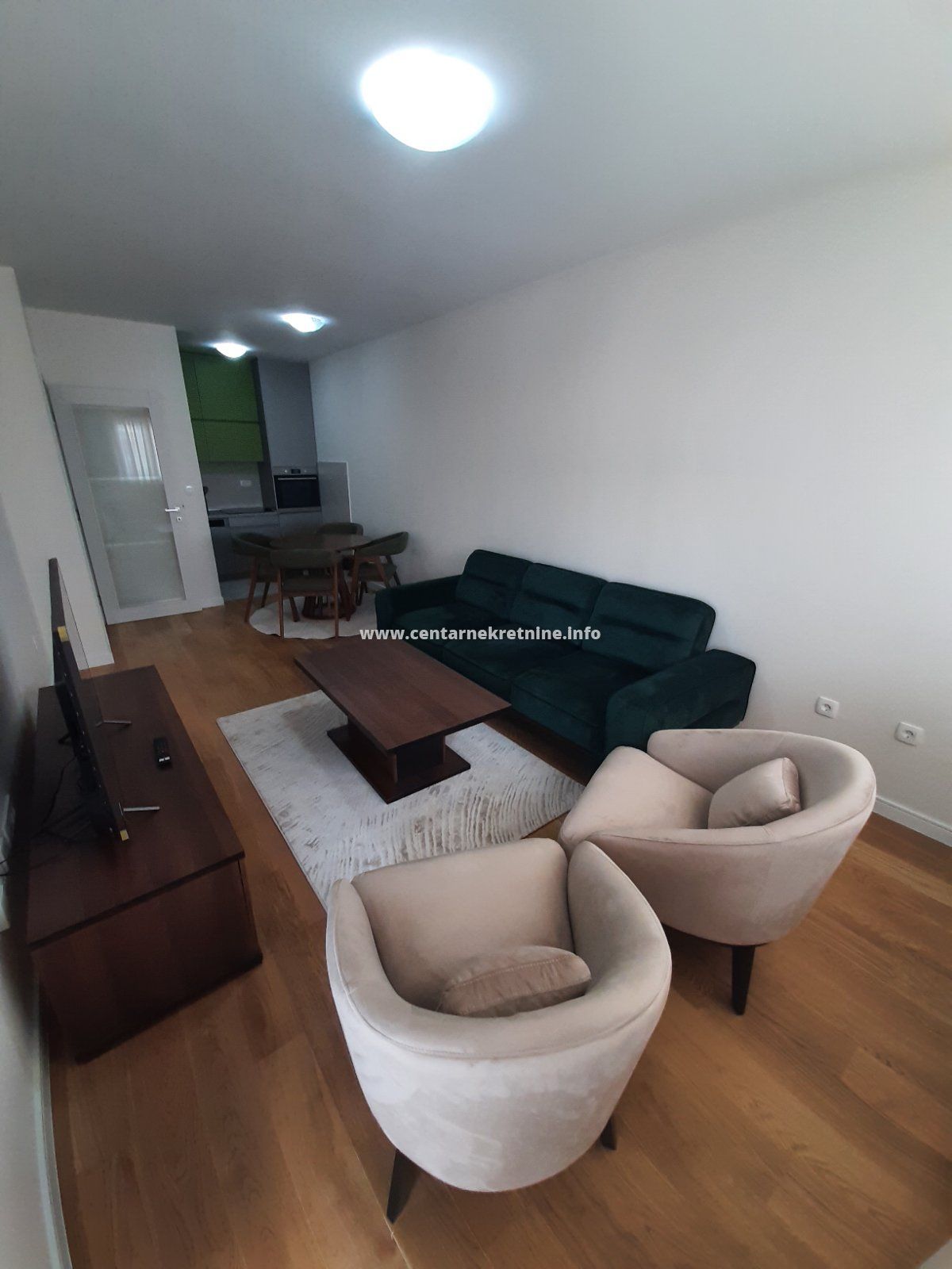 Izdaje se nov, neuseljavan, luksuzan jednosoban stan, povrsine 46m2, na IX spratu u najnovijoj lameli Central Pointa. Stan je kompletno opremljen modernim i kvalitetnim namjestajem. Sastoji se od ulaznog hodnika, dnevne sobe sa kuhinjom i trpezarijom, lijepe terase, spavace sobe i kupatila. Orijentacija zapad.