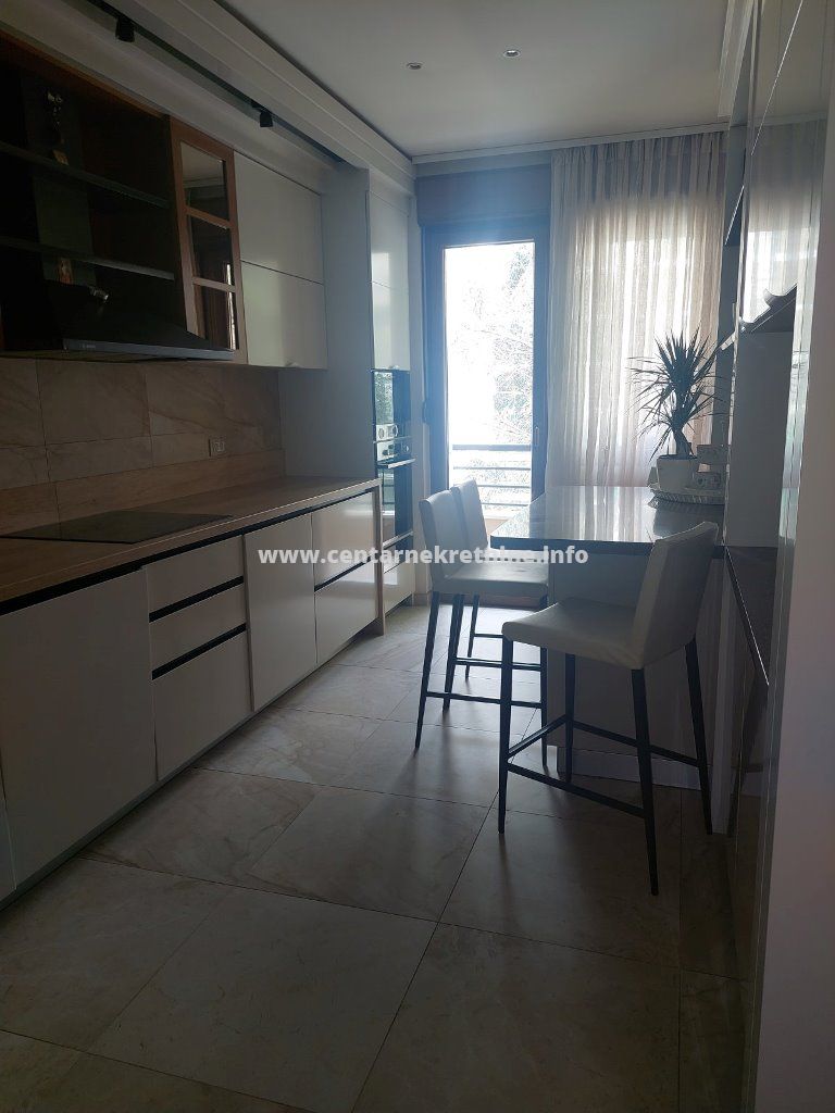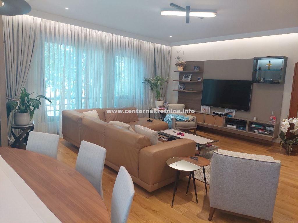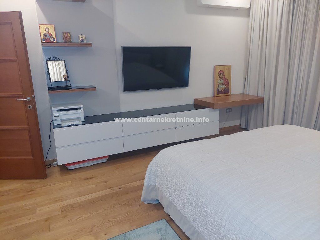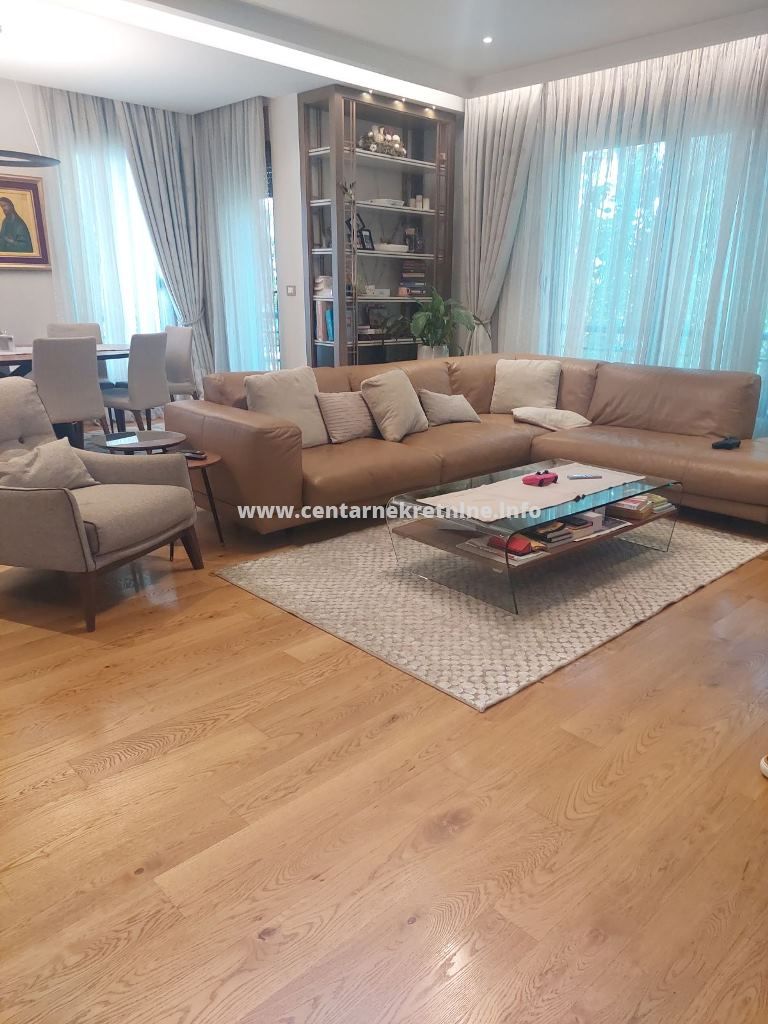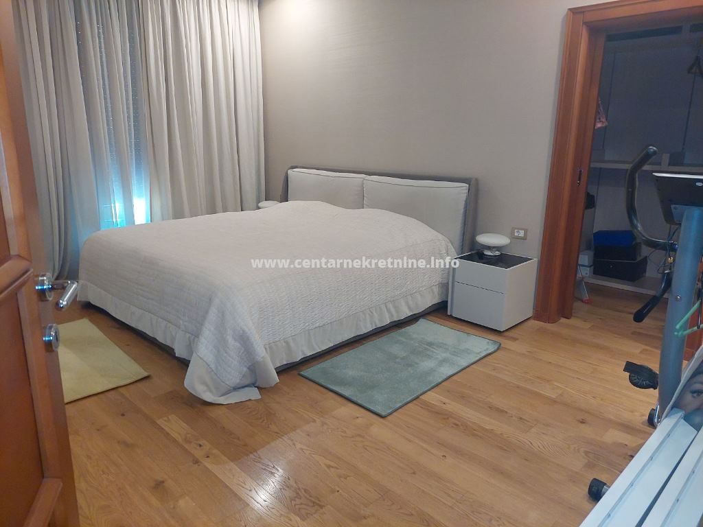 Luksuzan, veoma lijepo namjesten, komforan trosoban stan 140m2, na II spratu, u modernoj stambenoj zgradi na Bulevaru Revolucije, Preko Morace. Stan je izuzetno prostran i kompletno namjesten. Ima veliku dnevnu sobu sa trpezarijom, koja izlazi na terasu, odvojenu kuhinju, veliki hodnik, kupatilo, toalet, veseraj, dvije spavace sobe i master sobu sa sopstvenim kupatilom i garderoberom. Stan je orijentisan na tri strane, u veoma mirnom dijelu grada. Posjeduje dva parking mjesta.