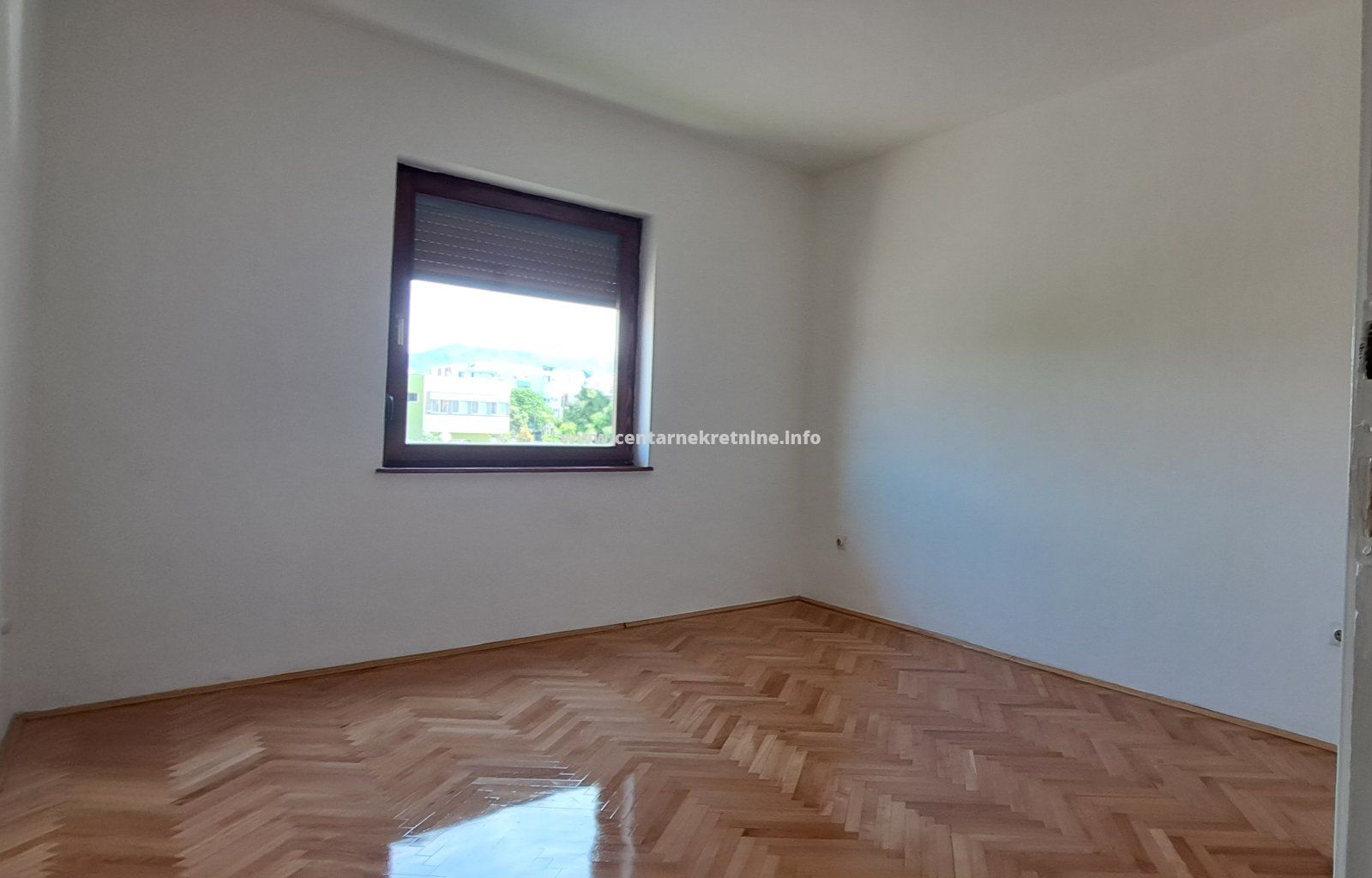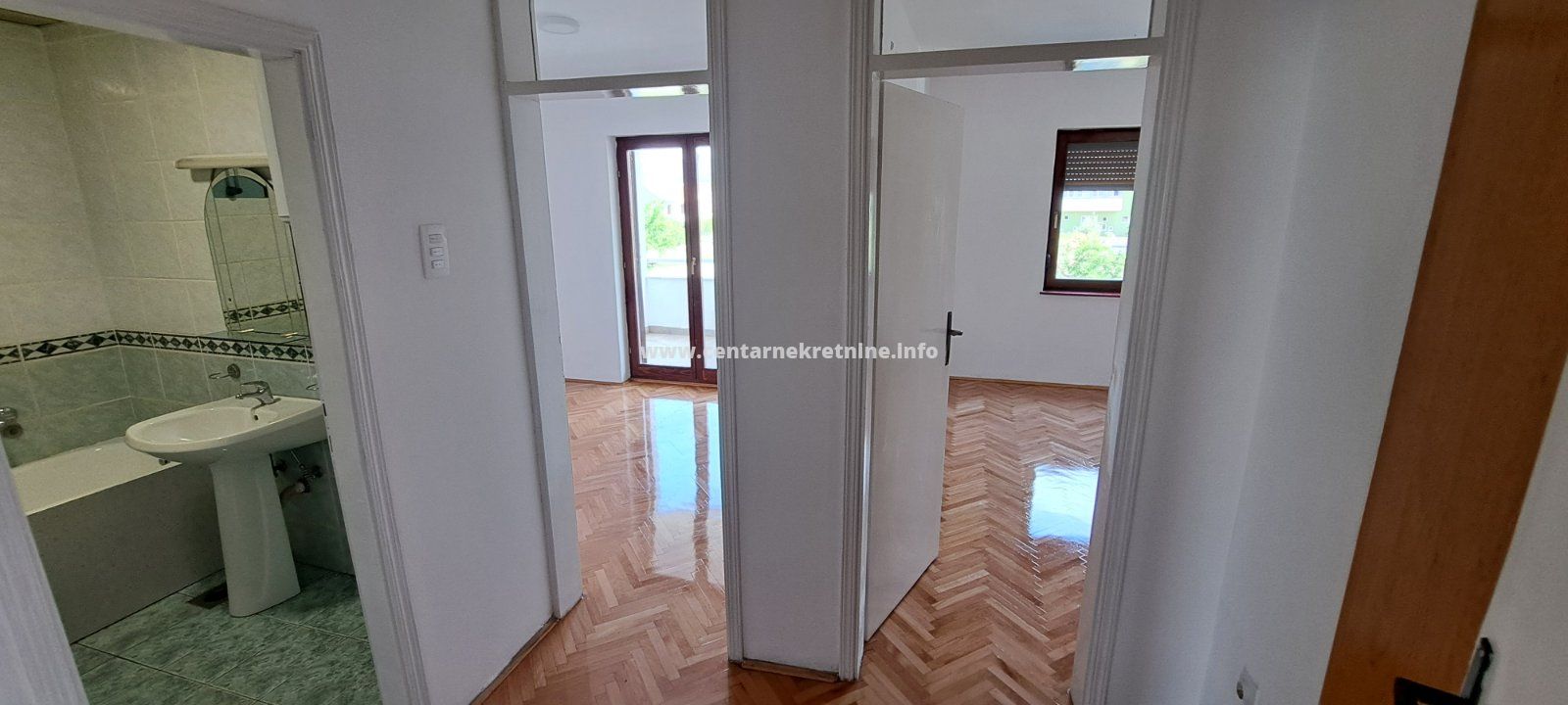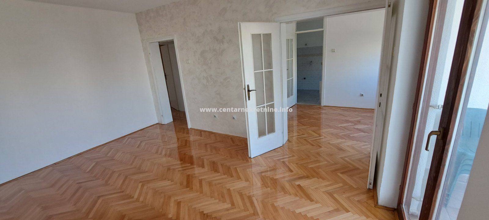 Prodaje se prostran dvosoban stan na odlicnoj lokaciji na Starom aerodromu, u neposrednoj blizini osnovne skole i vrtica. Stan je povrsine 82m2+terasa, nalazi se na visokom prizemlju i ima ostavu u podrumu. Stan se sastoji od hodnika, dnevne sobe, trpezarije, kuhinje, 2 spavace sobe, kupatila, toaleta i lijepe terase. Dnevna soba je okrenuta prema jugu, dok spavace sobe gledaju na sjever.