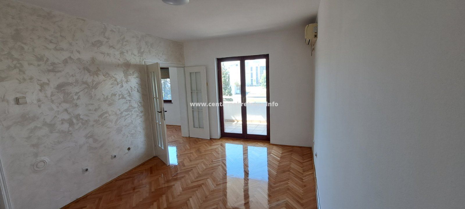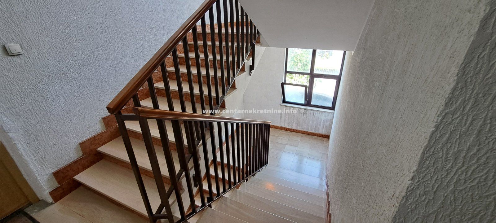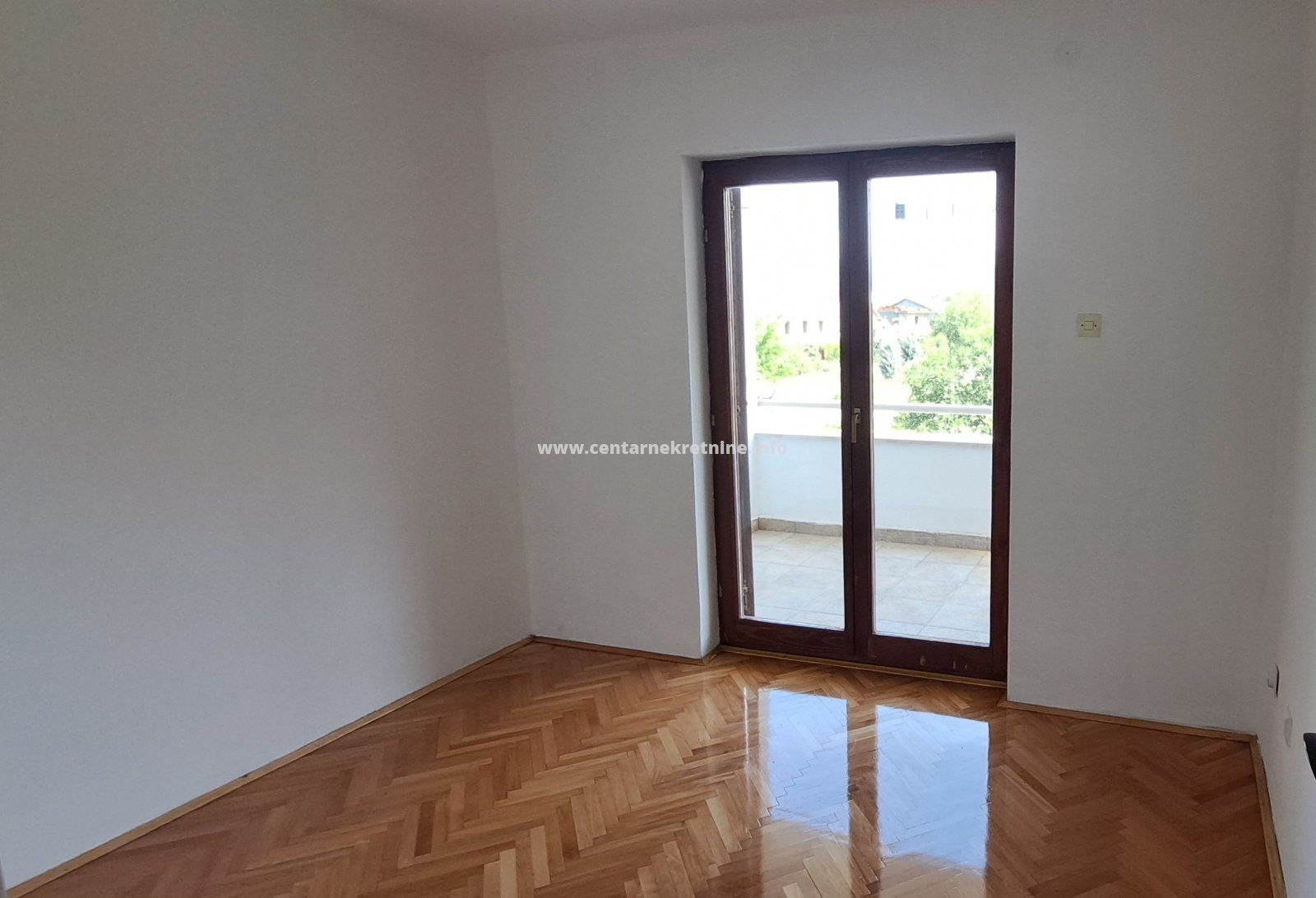 Prodaje se prostran dvosoban stan na odlicnoj lokaciji na Starom aerodromu, u neposrednoj blizini osnovne skole i vrtica. Stan je povrsine 82m2+terasa, nalazi se na visokom prizemlju i ima ostavu u podrumu. Stan se sastoji od hodnika, dnevne sobe, trpezarije, kuhinje, 2 spavace sobe, kupatila, toaleta i lijepe terase. Dnevna soba je okrenuta prema jugu, dok spavace sobe gledaju na sjever.